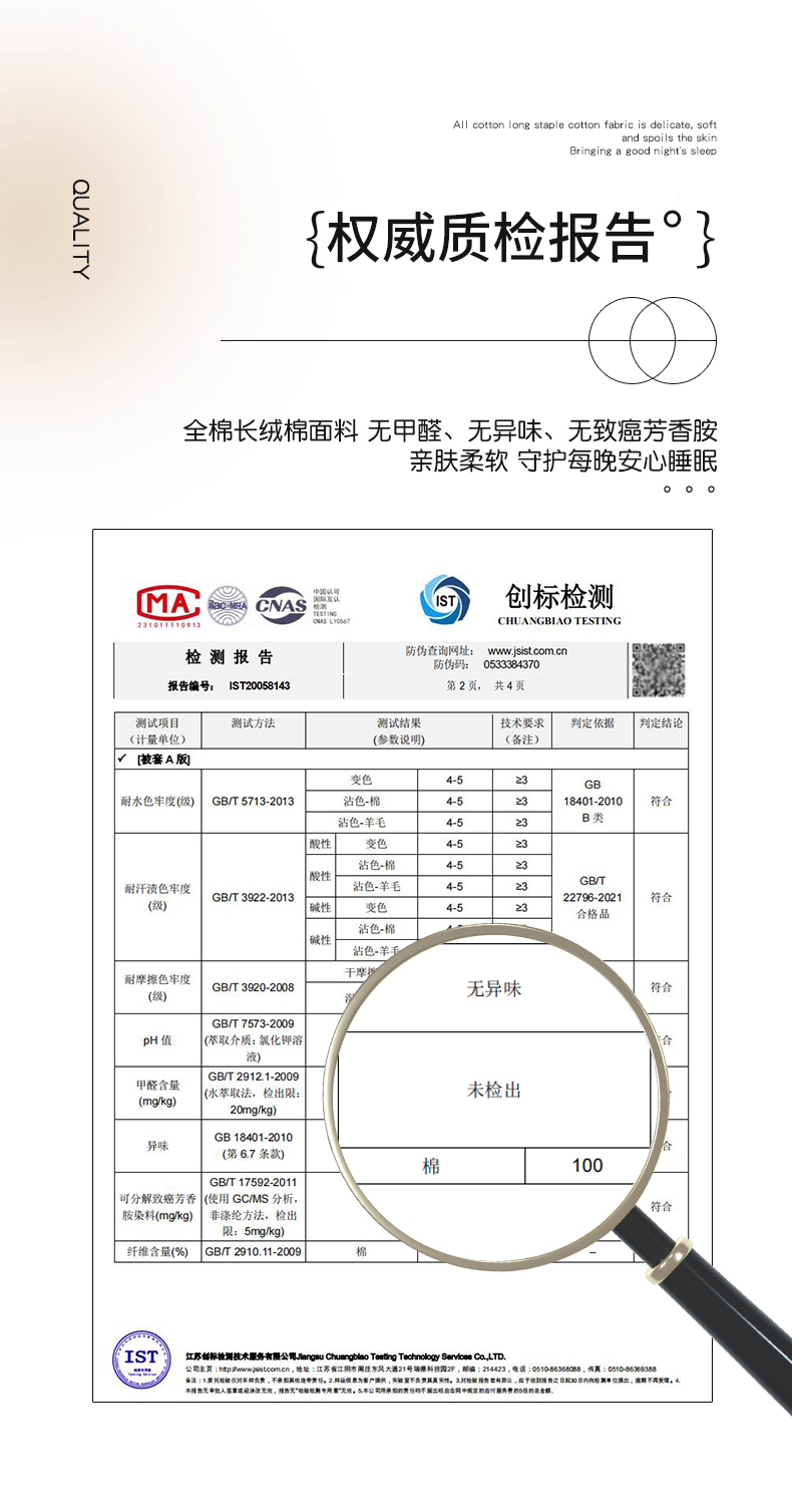 4、通州区市场监管局川姜分局友情提醒:近期针对抗静电,无静电,抗菌防螨,及有关舒适度,百分比的举报高发。为不影响商品正常销售,请各商家高度重视,自检自查及时整改,谢谢配合!
