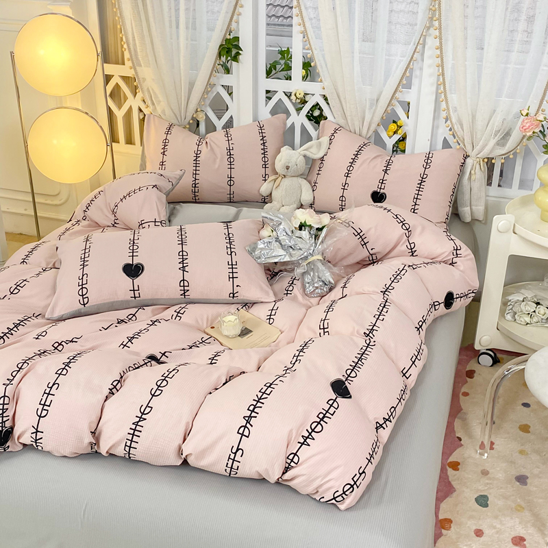 当前位置: 91家纺网 > 商品网购 > 床品套件 > 四件套 > 其它四件套 > 牛牛家纺 牛牛 2024新款泡泡棉小清新四件套(1) 粉桃心