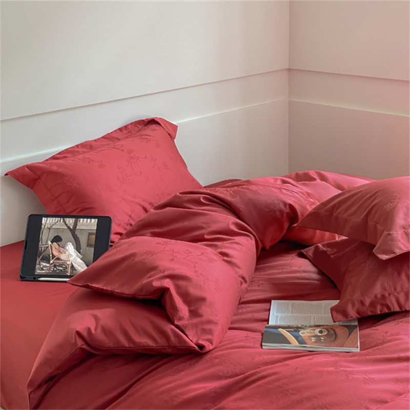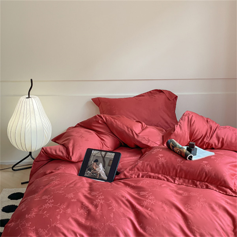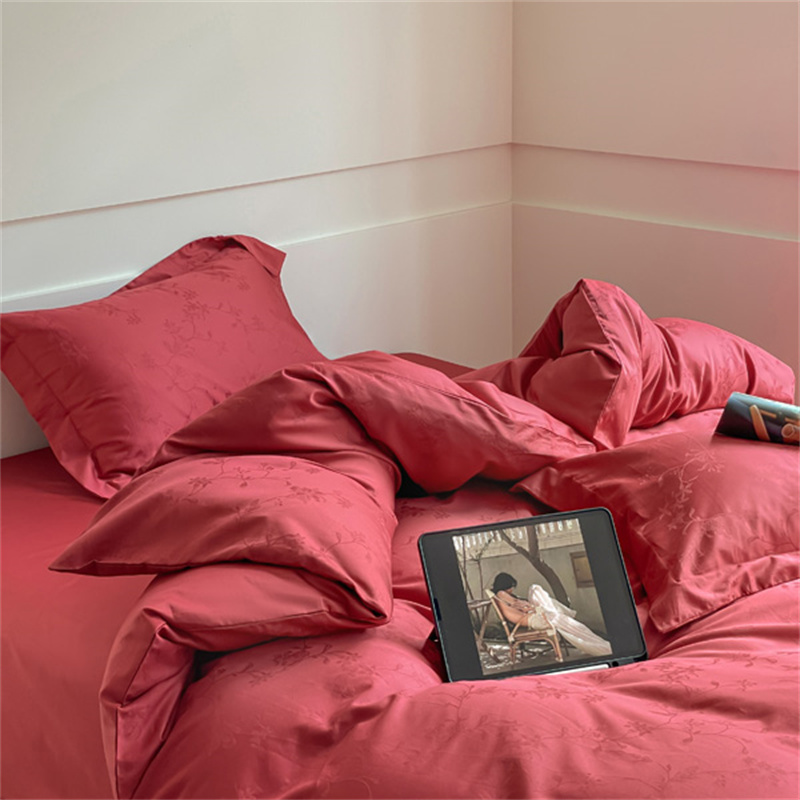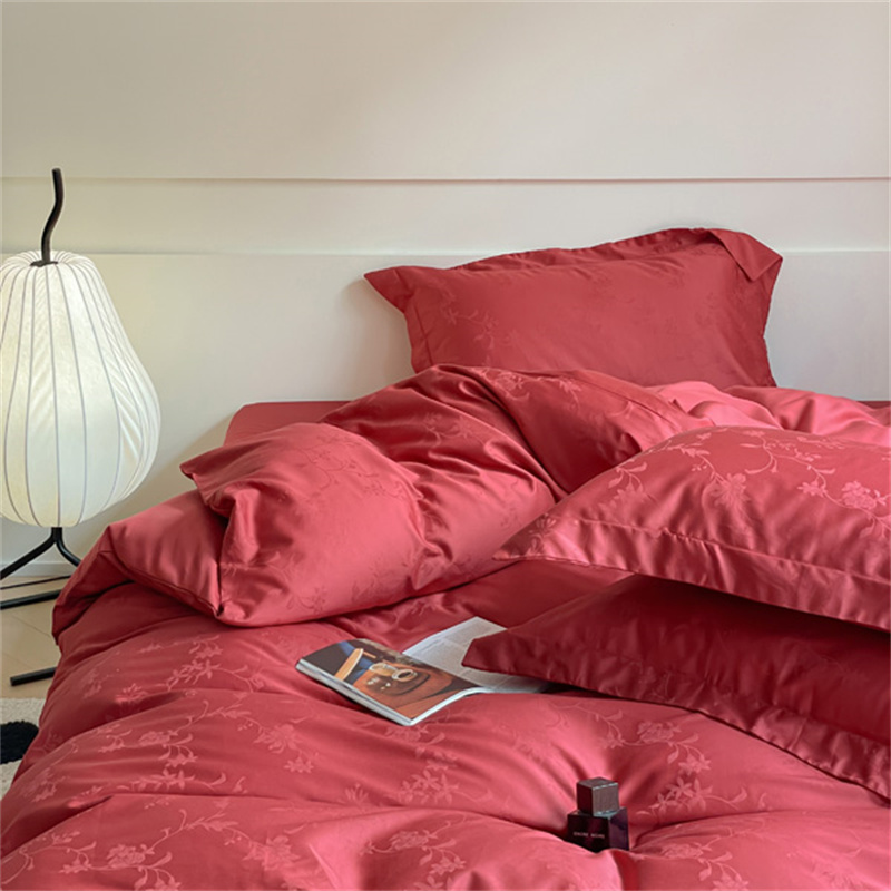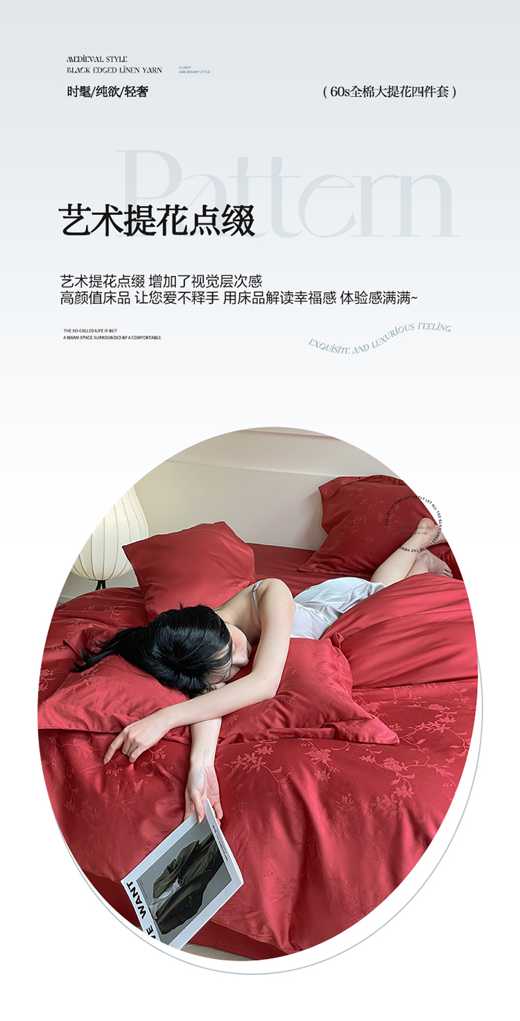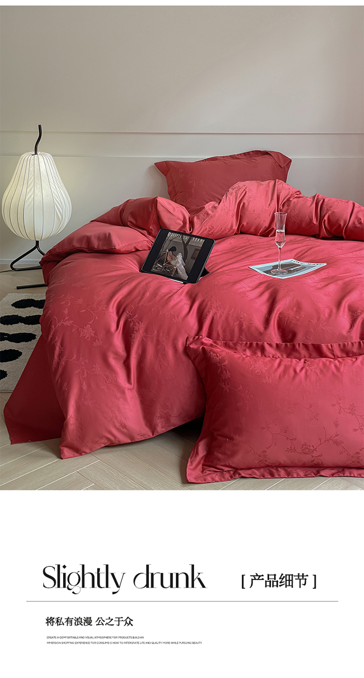 涵宸 2024新款全棉大提花系列四件套 生如夏花-红