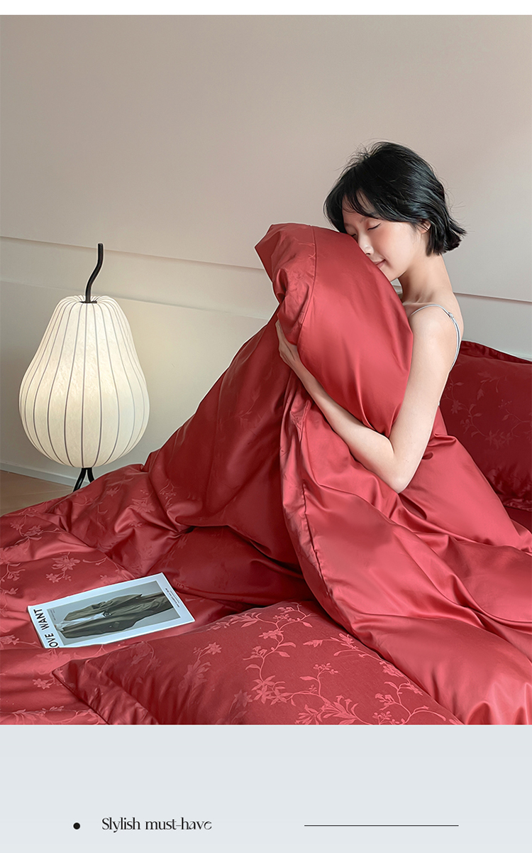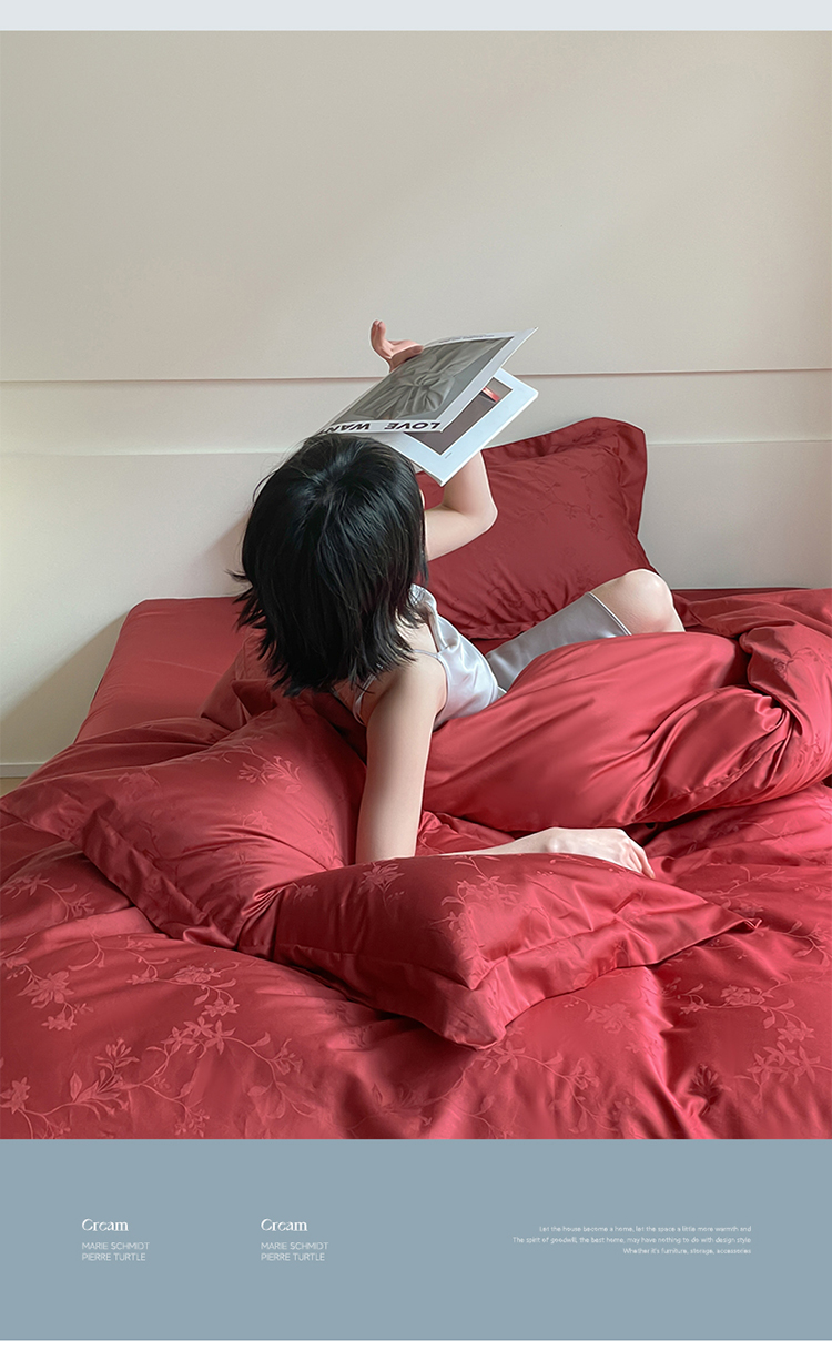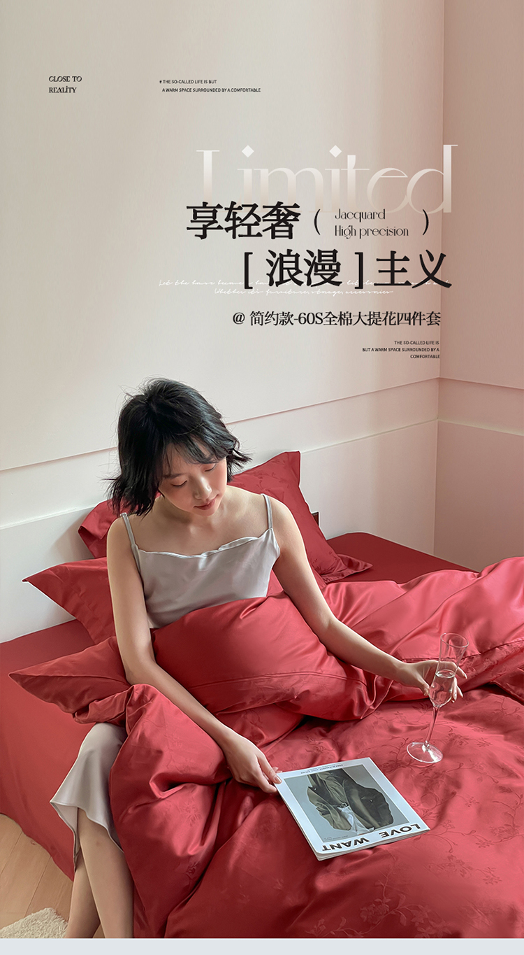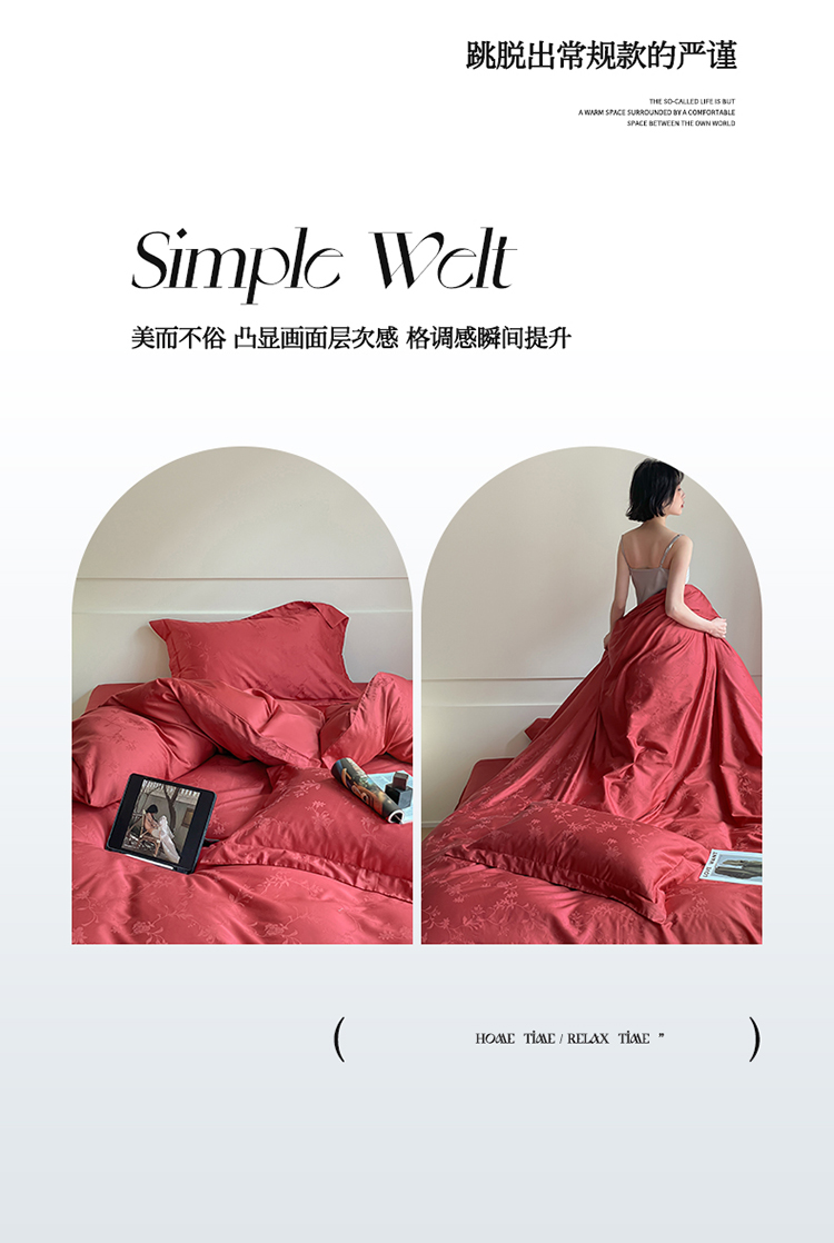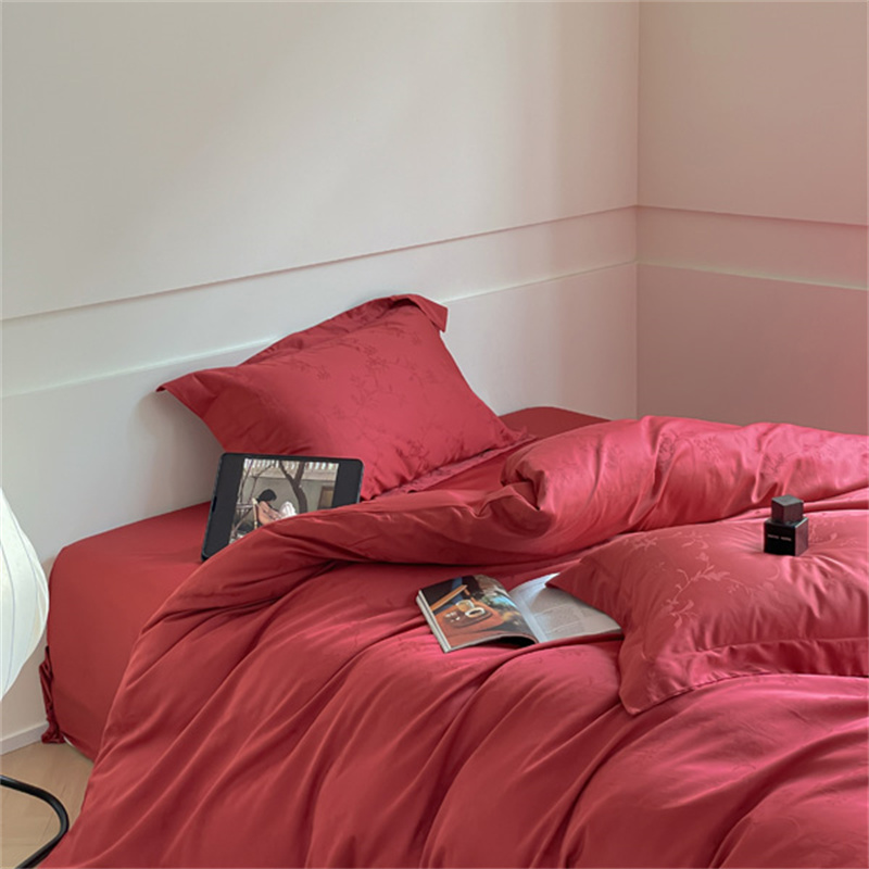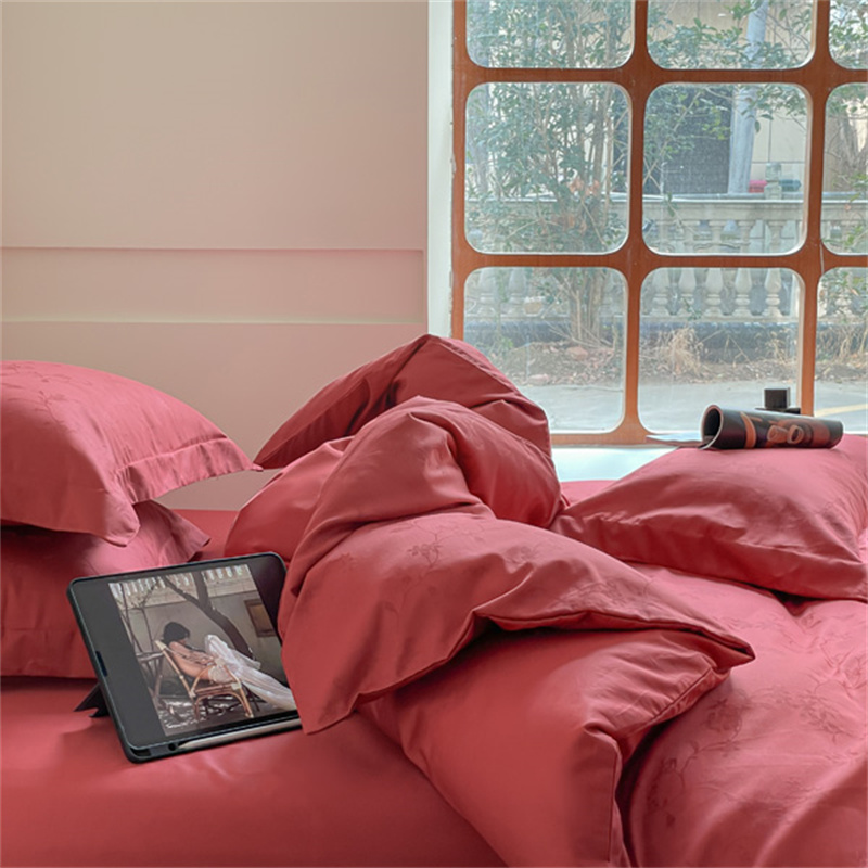 涵宸 2024新款全棉大提花系列四件套 生如夏花-红