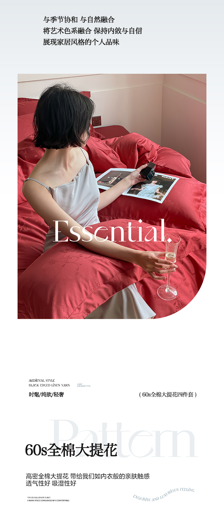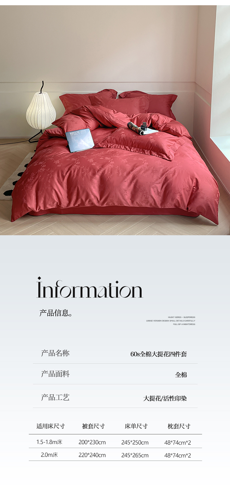 商品名称:涵宸 2024新款全棉大提花系列四件套 生如夏花-红