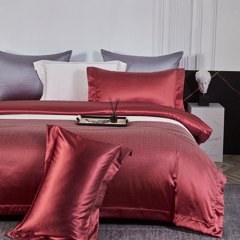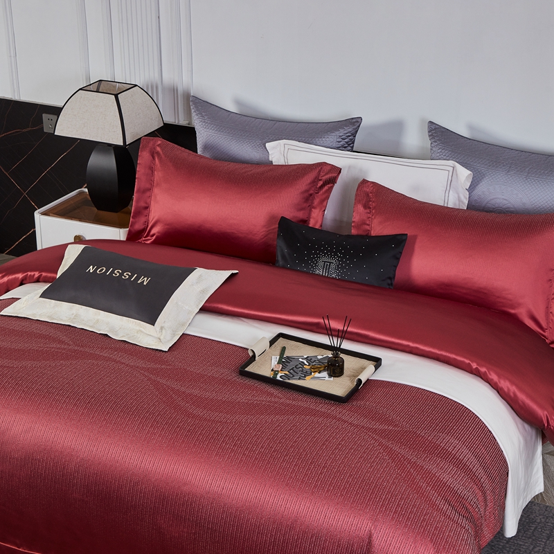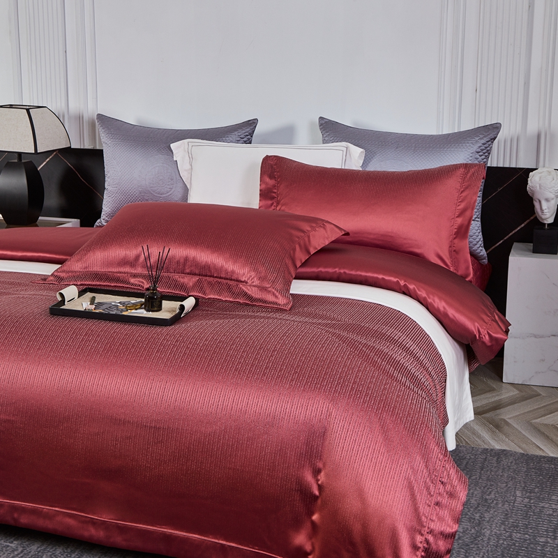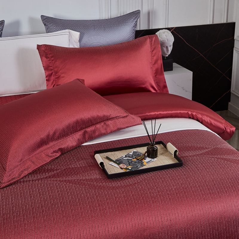 时亿 2024新款100支高精密色织提花四件套-多伦多 波尔多红
