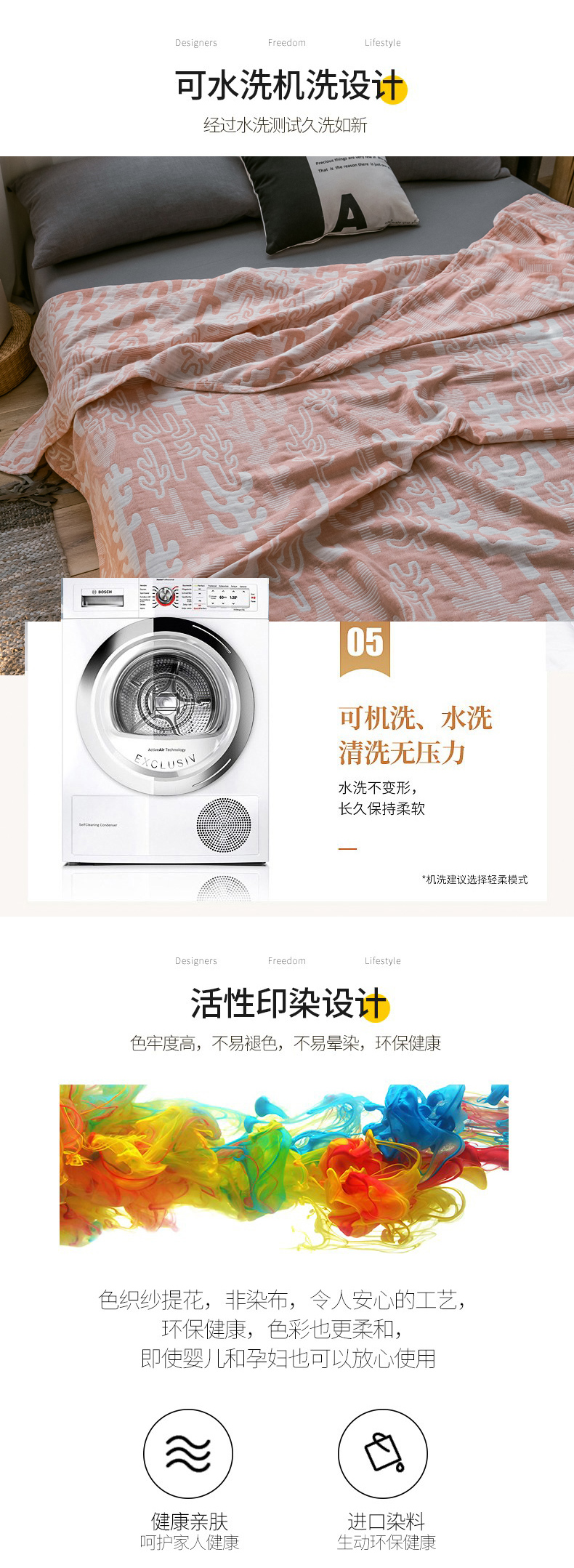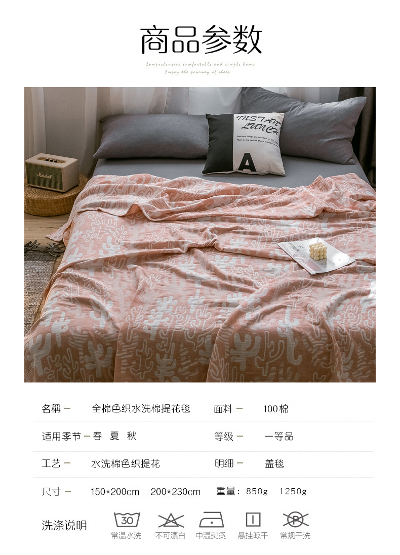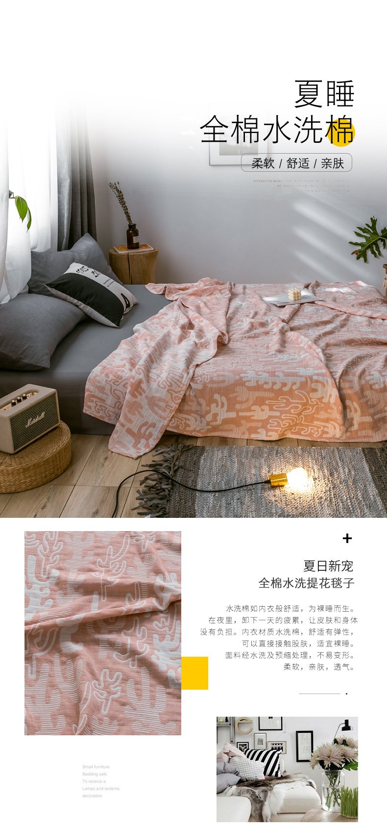 商品名称:朴尔家纺-毛巾被 2024新款三层水洗棉全棉纱布毛巾被 仙人掌-粉