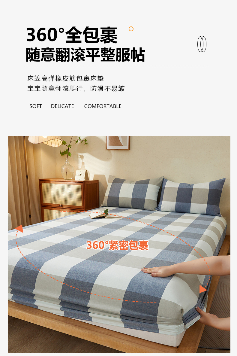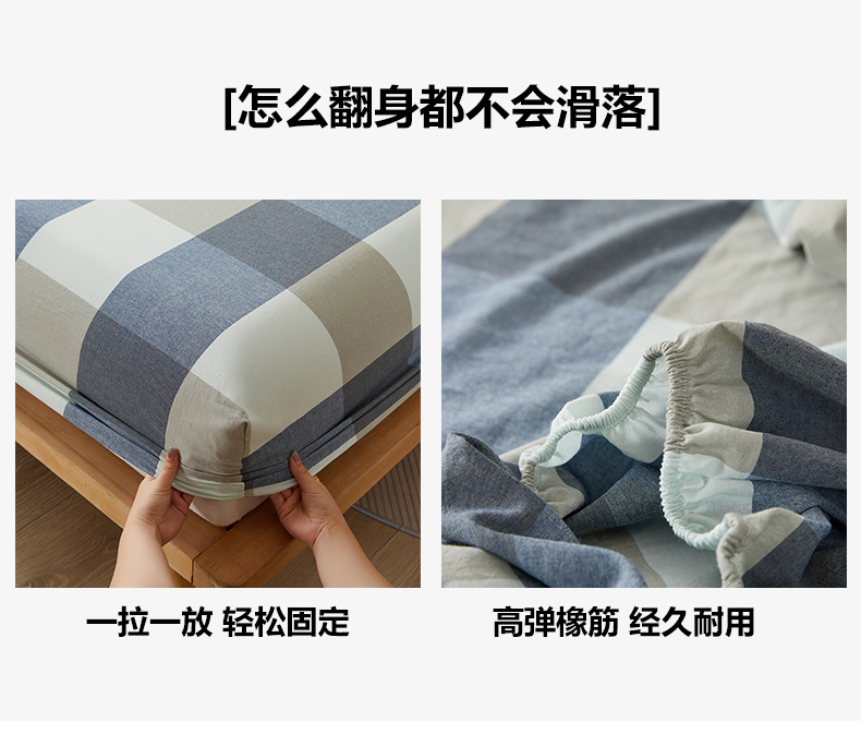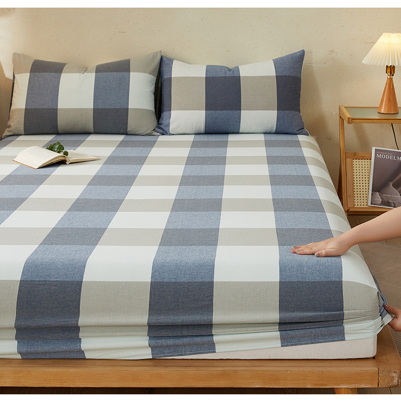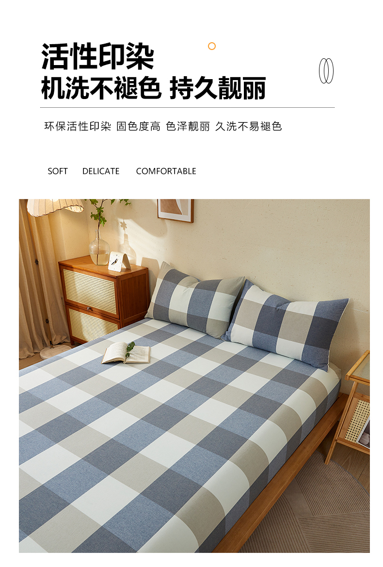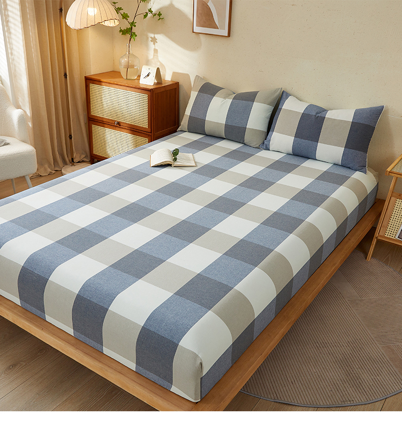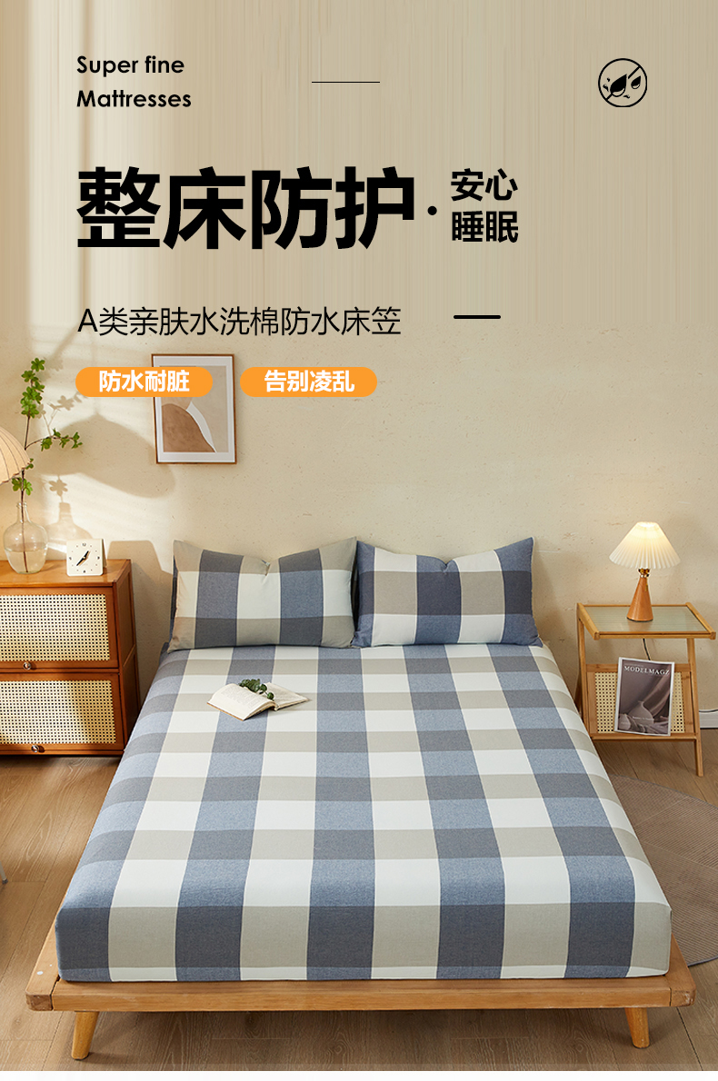 商品名称:暖阳 2025新款A类无印风防水床笠 单床笠 蓝大格