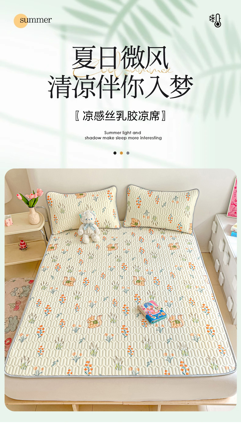 商品名称:沐慕 2024新款小清新印花乳胶凉席 田园松鼠