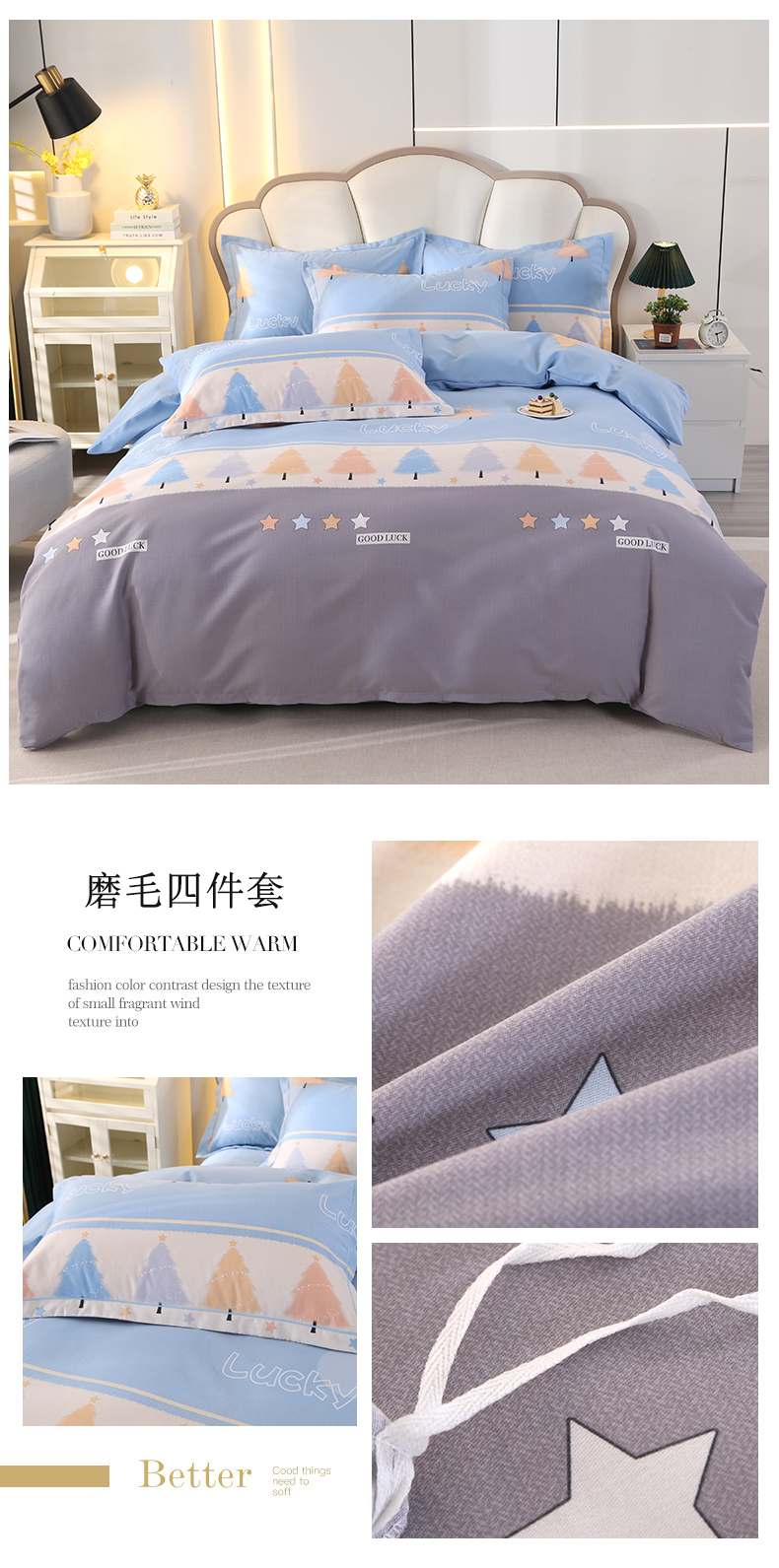 商品名称:橘姿 2024升级喷气磨毛四件套纯棉四件套加厚直播 幸运树-蓝
