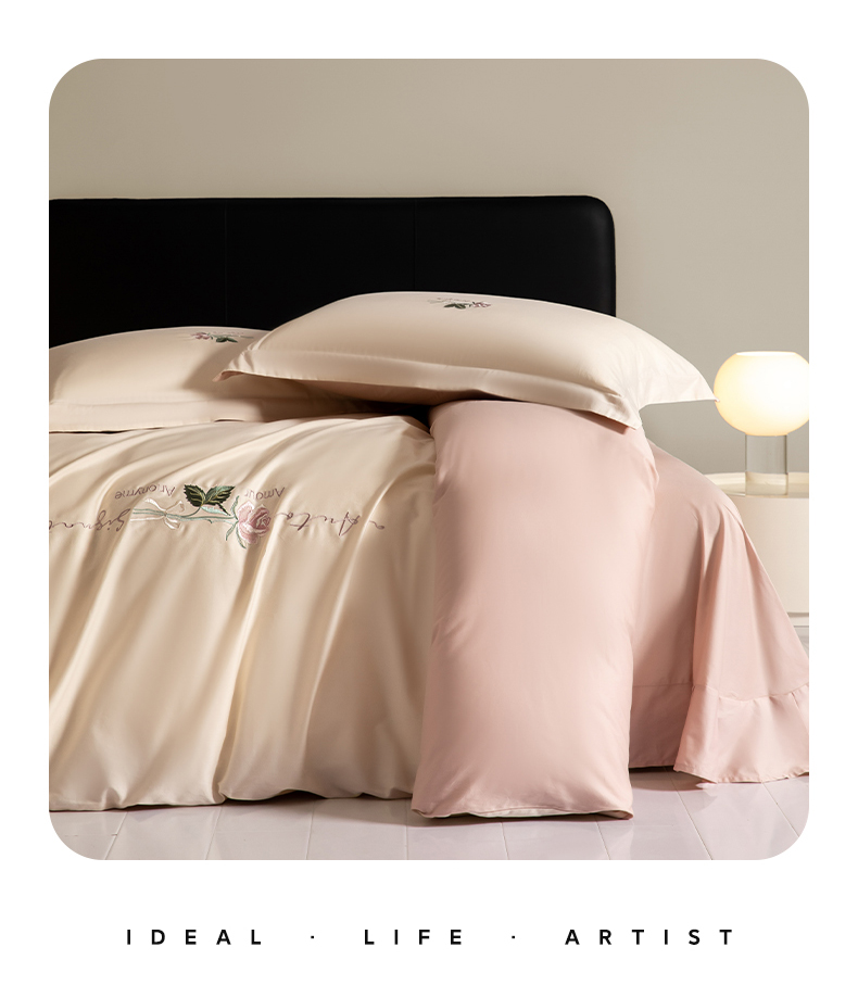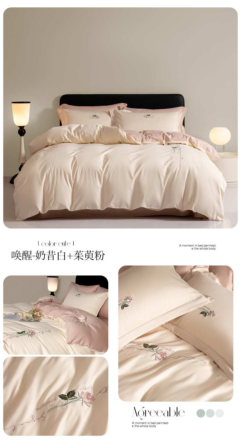 (总)秀色家纺 2025新款轻奢60支贡缎长绒纯棉四件套全棉简约清新刺绣花被套床单高级感,唤醒-奶昔白+茱萸粉,唤醒-天空蓝+茱萸粉,唤醒-奶昔白+天空蓝,唤醒-奶昔白+香槟金,唤醒-茱萸粉+烟墨灰,奶昔白+丁香,奶昔白+莺茶绿,茱萸粉+丁香,莺茶绿+香槟金,香槟金+烟墨灰