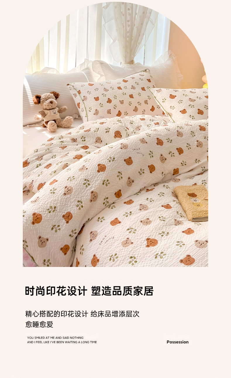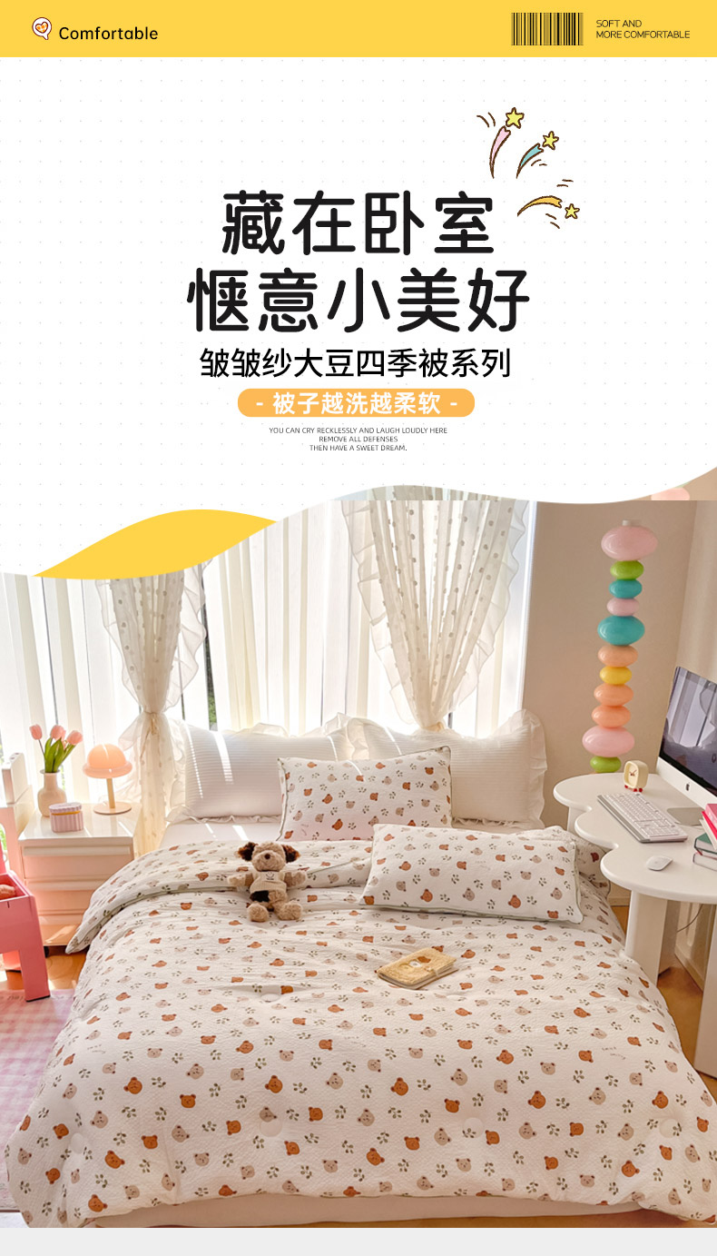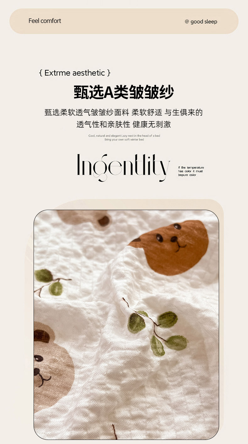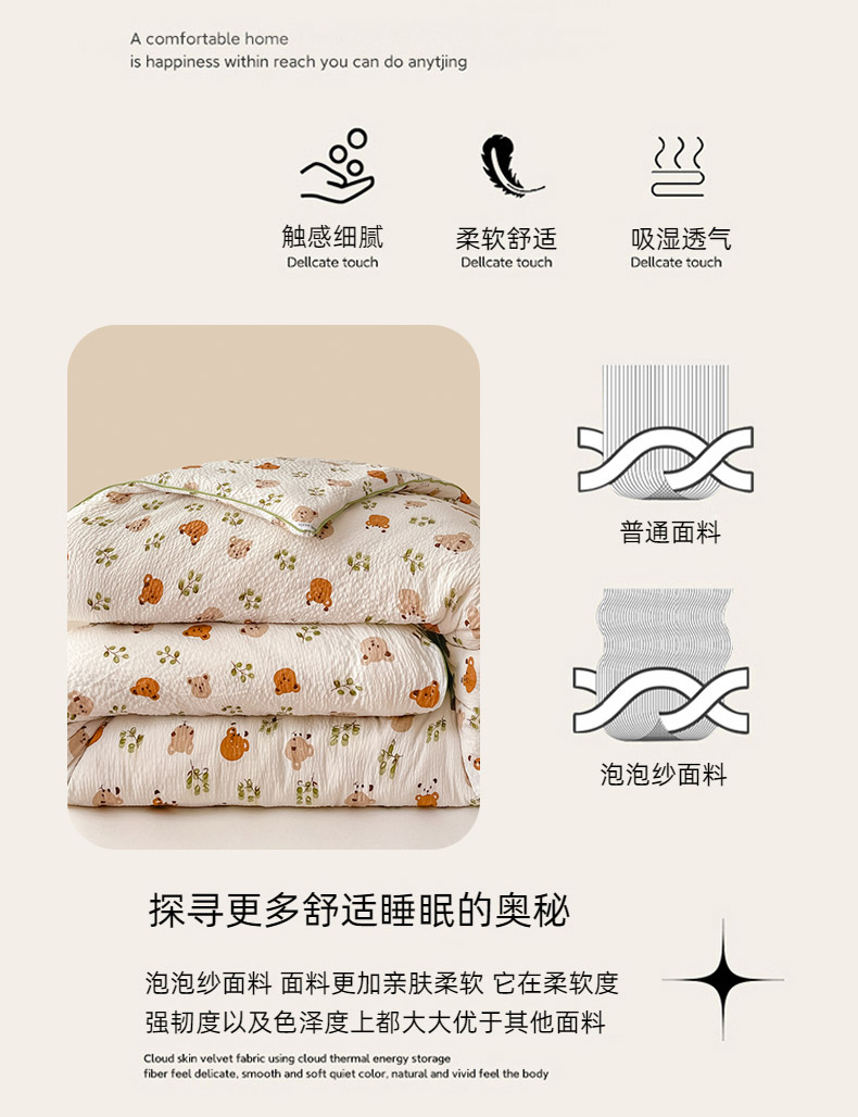 • 91家纺网 家纺一手货源 找家纺 心卓 2025新款直播皱皱纱夏被被子被芯 熊熊乐园