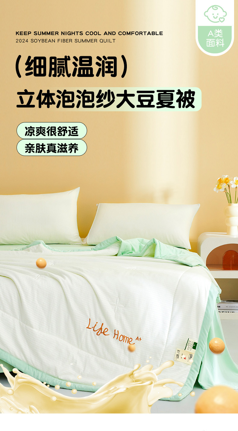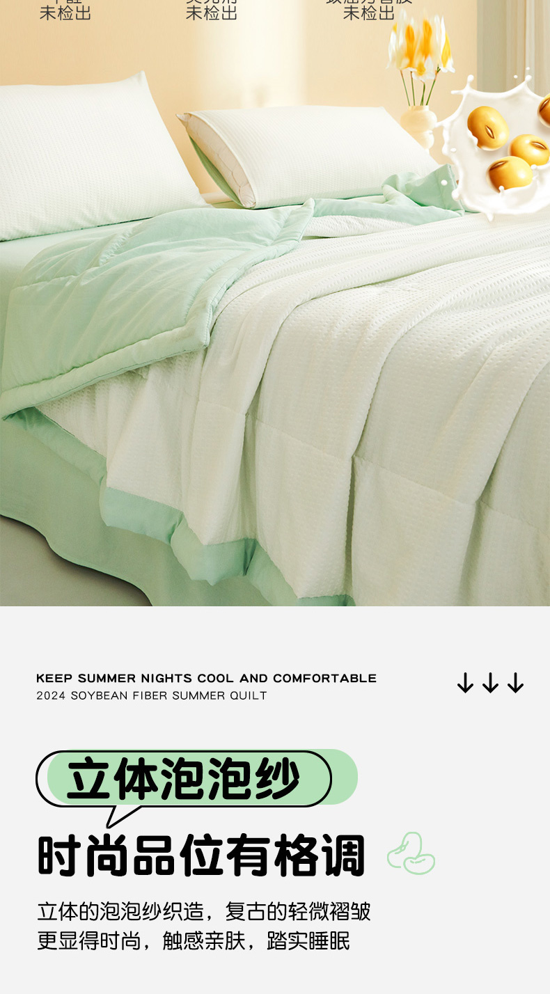 商品名称:恒畅 2024新款A类泡泡纱大豆夏被 牛油果绿