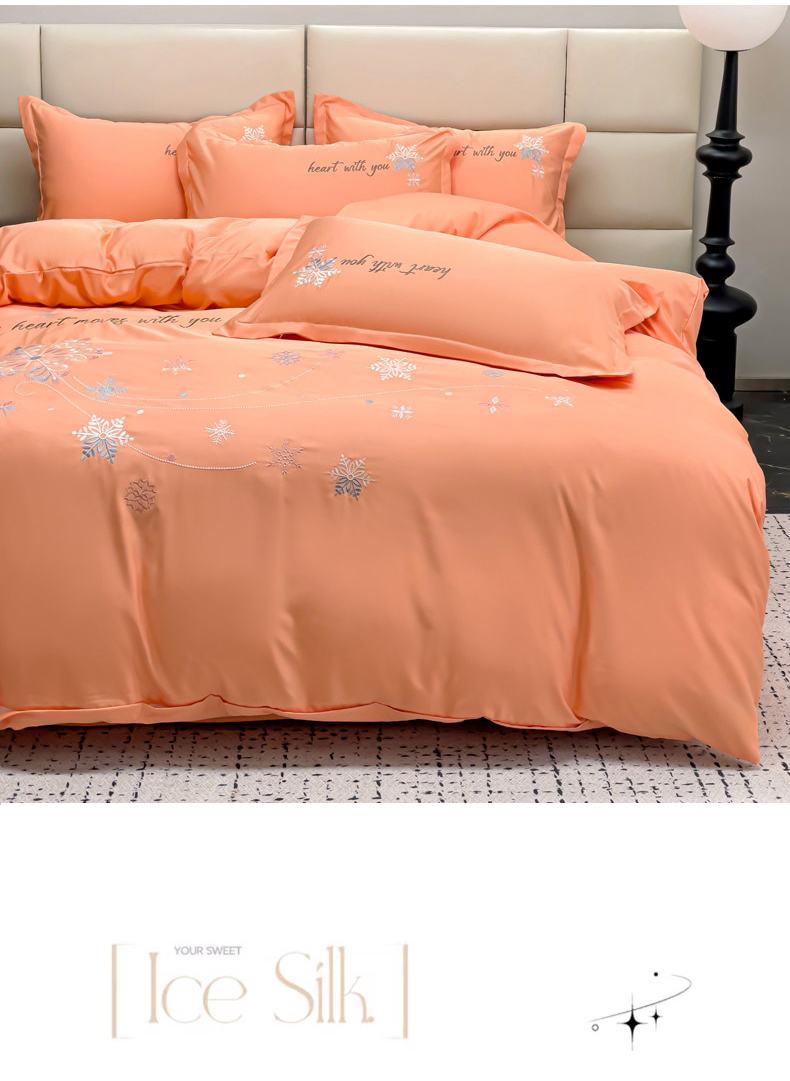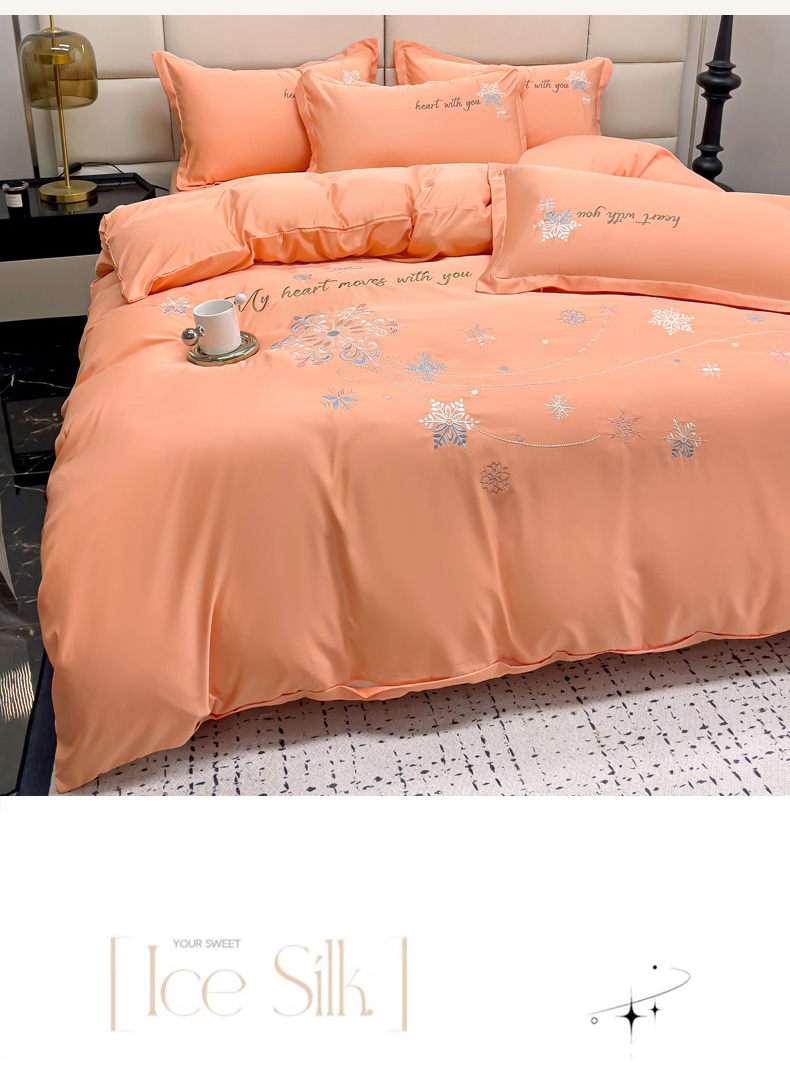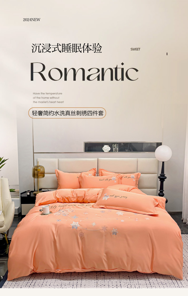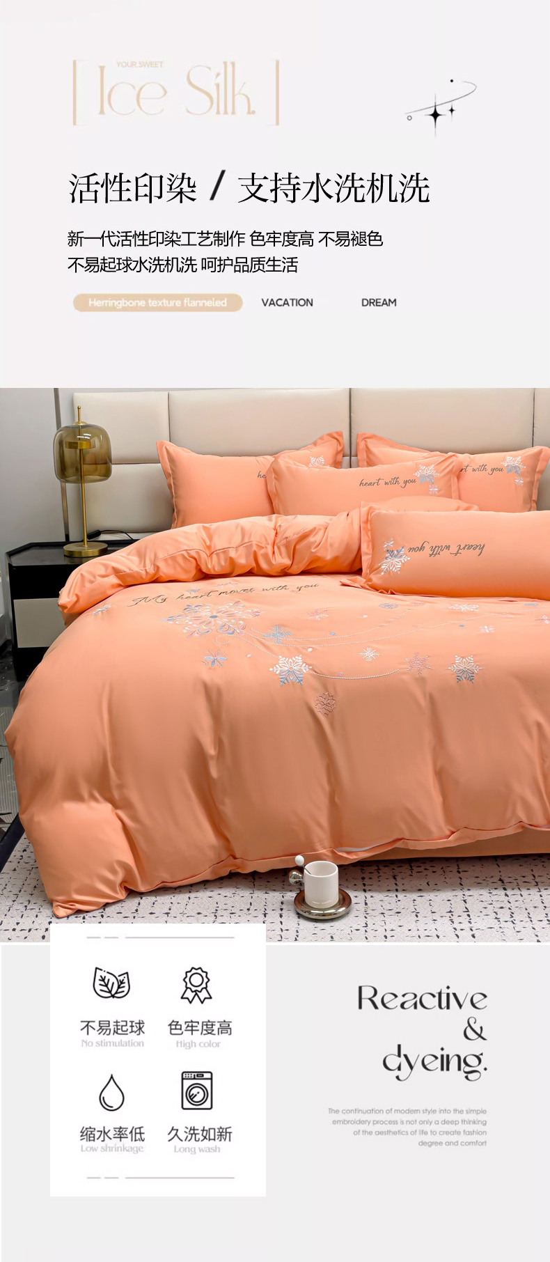恋佳居 2025新款水洗真丝刺绣四件套 冰凌 橘色