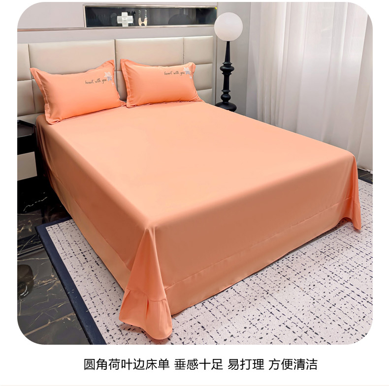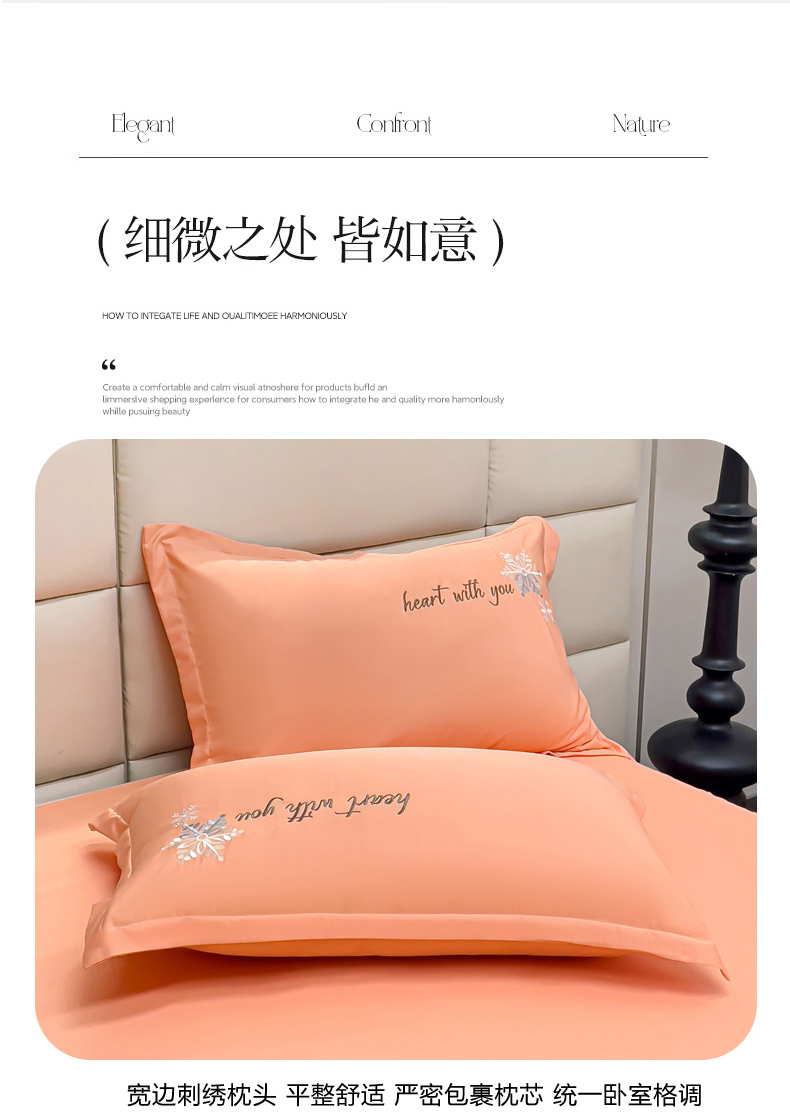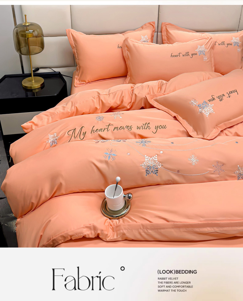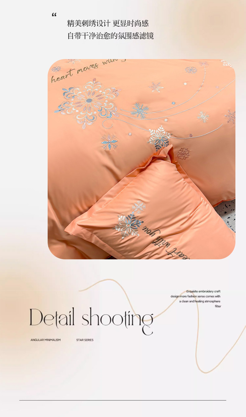 恋佳居 2025新款水洗真丝刺绣四件套 冰凌 橘色