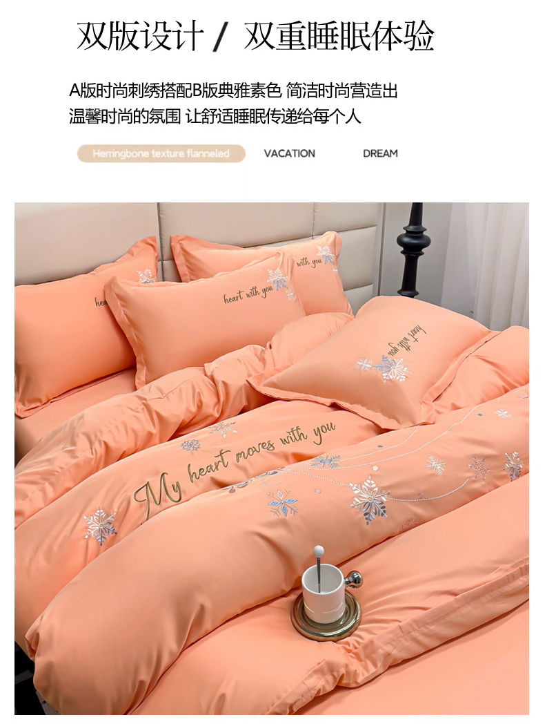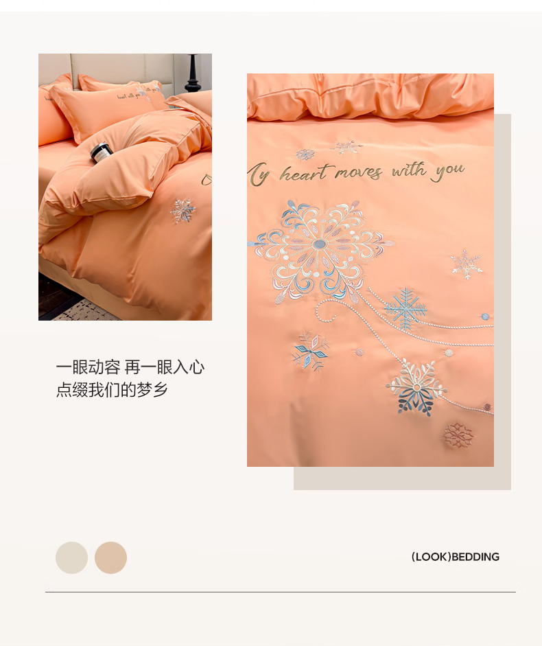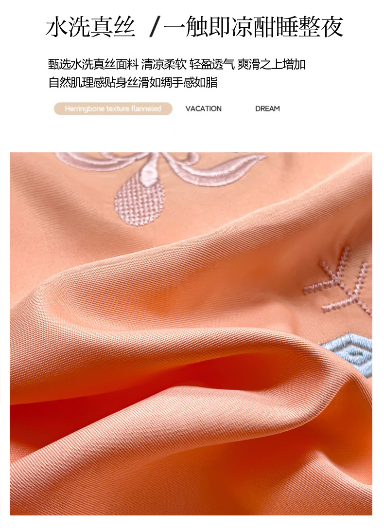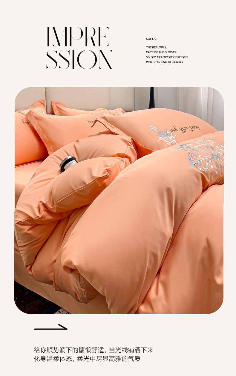 商品名称:恋佳居 2025新款水洗真丝刺绣四件套 冰凌 橘色