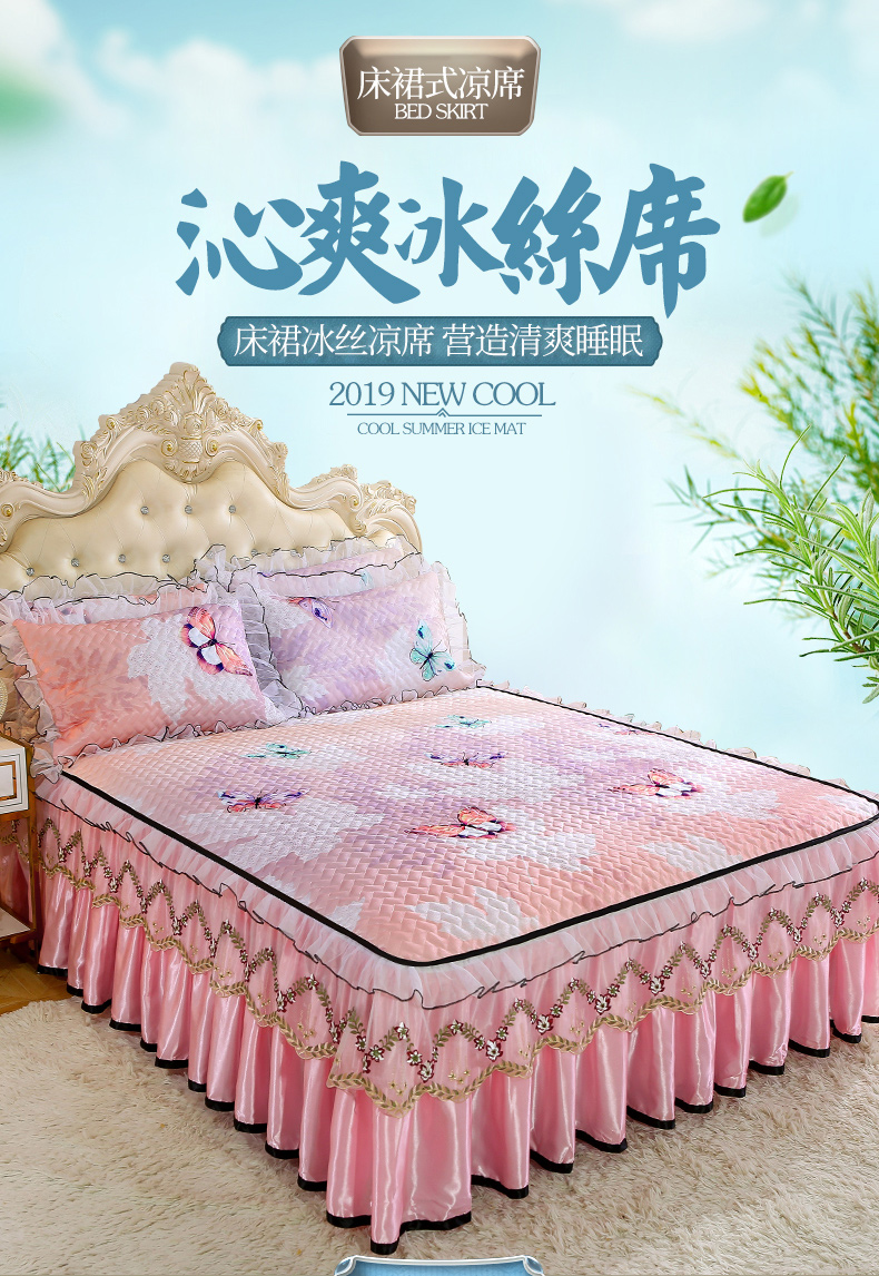 网红馆 2025新款冰丝凉席床裙三件套 蝴蝶