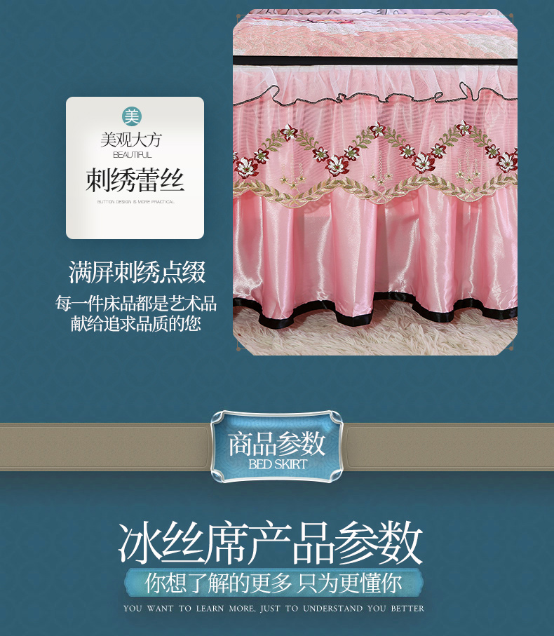 (总)网红馆(ck家纺) 2026新款色织蕾丝边床裙款床笠,宝石蓝,黛绿色,浪漫紫,奶茶色,石青,香妃粉,烟熏灰