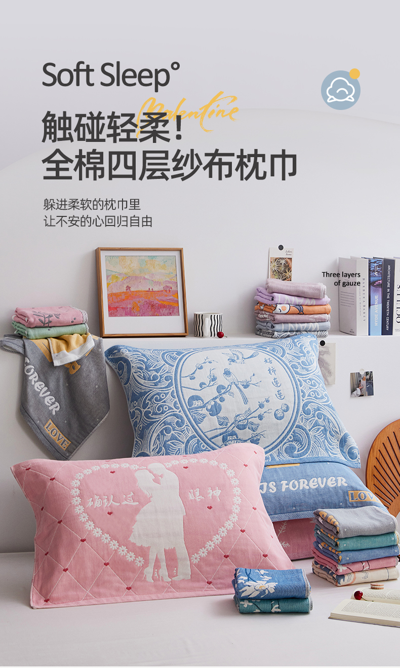 (总)美宜家 2025新款全棉四层纱布中国风枕巾