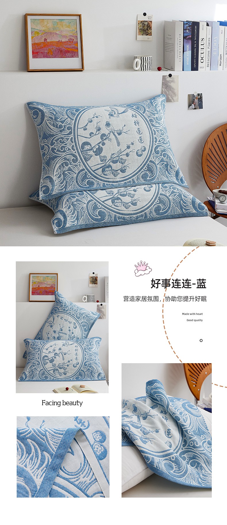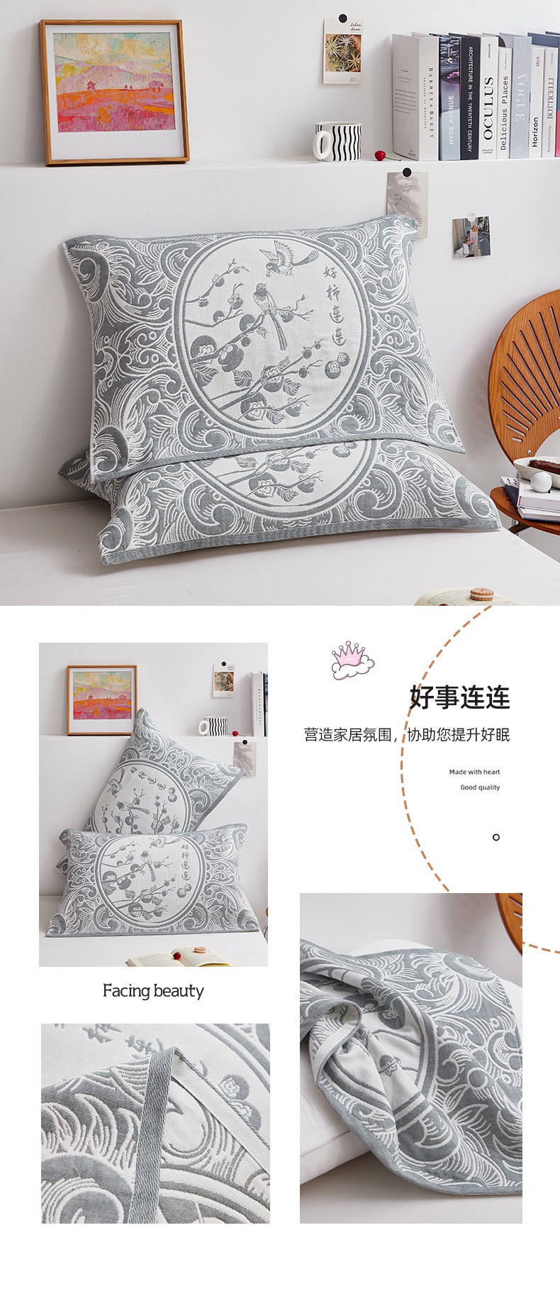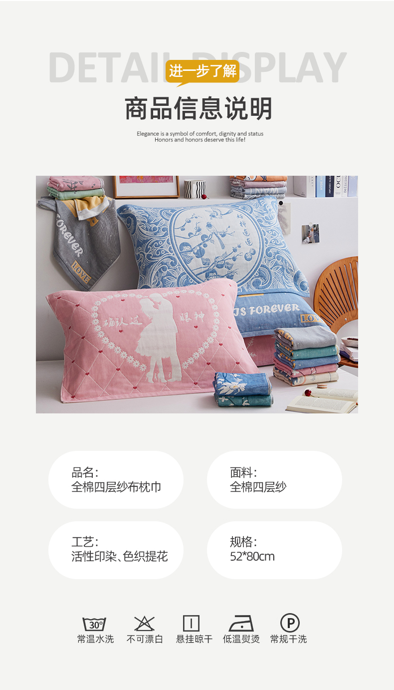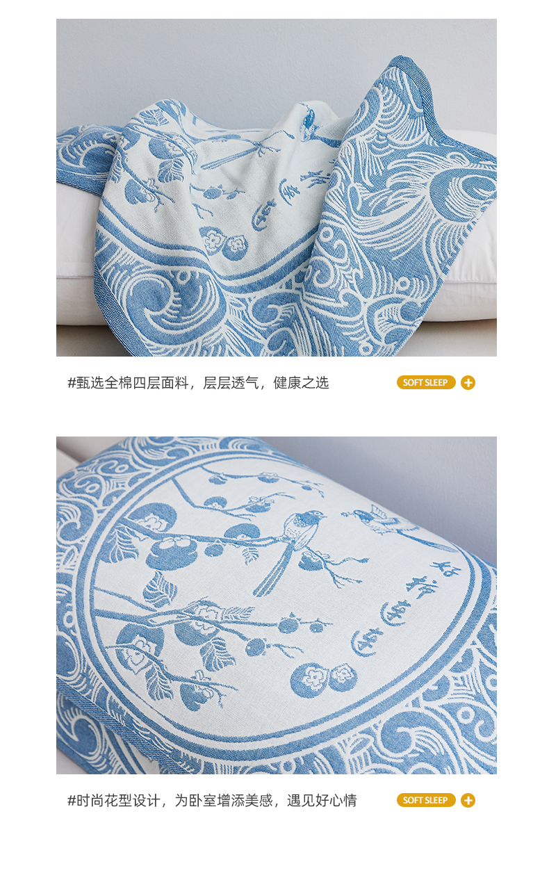 商品名称:(总)美宜家 2025新款全棉四层纱布中国风枕巾