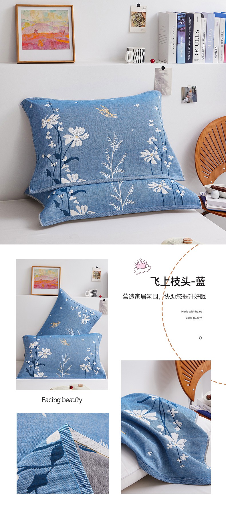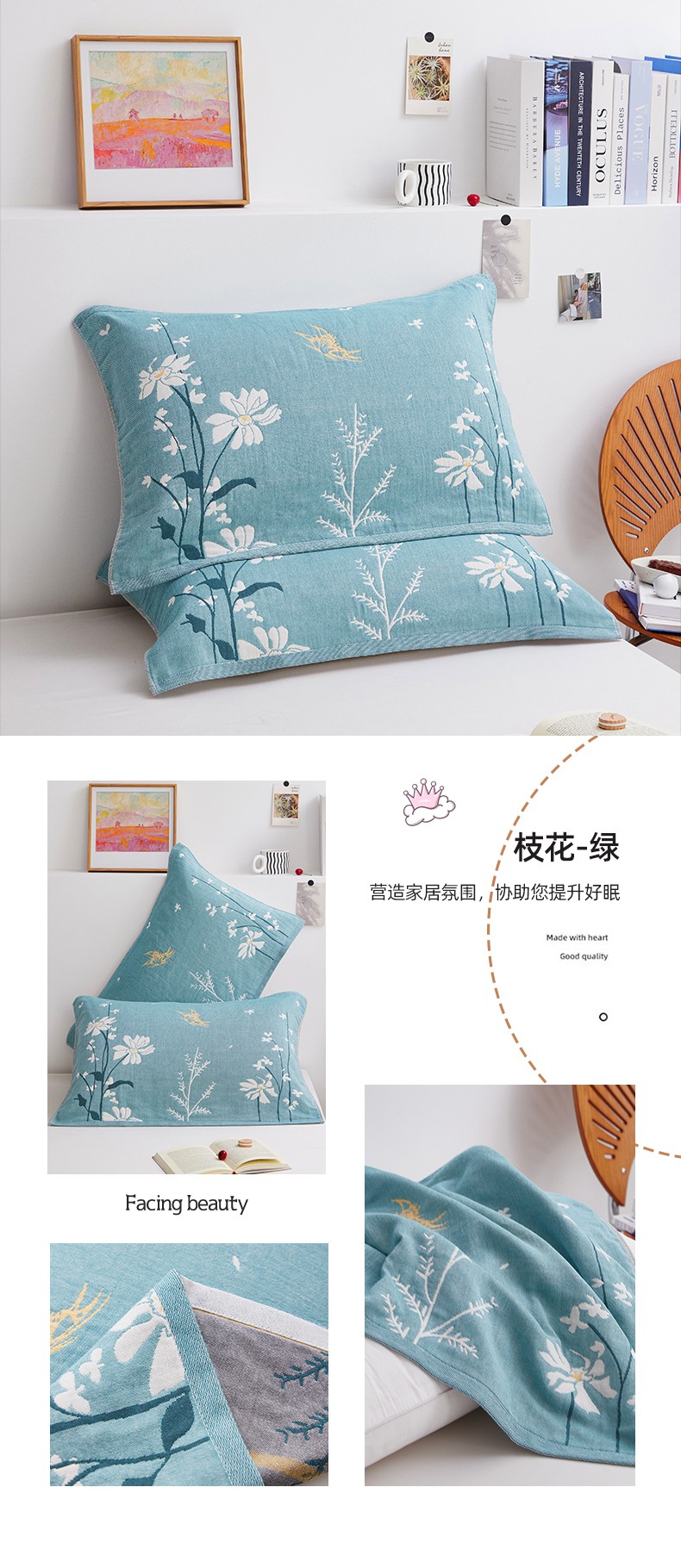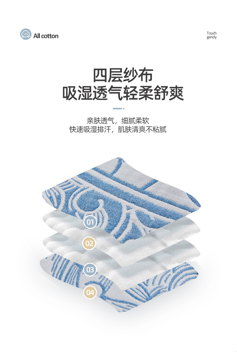 商品名称:(总)美宜家 2025新款全棉四层纱布中国风枕巾