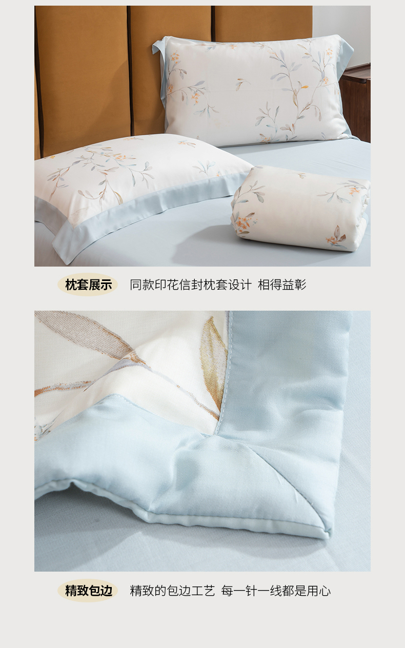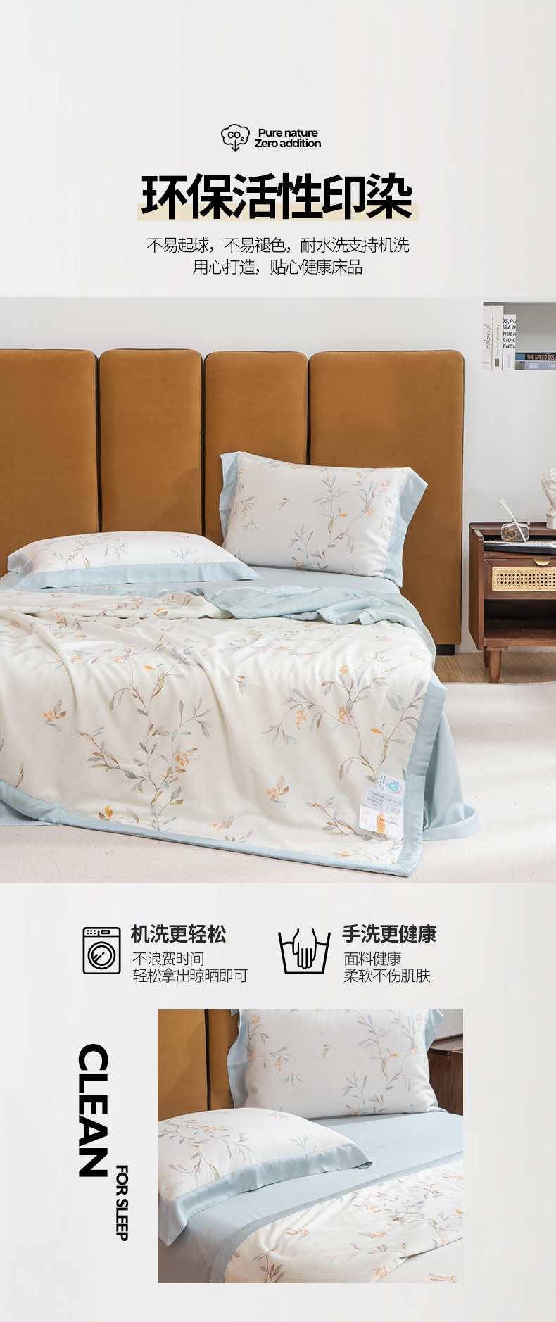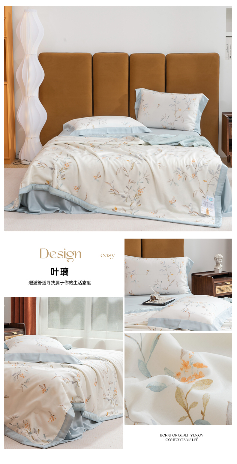 商品名称:黛舒家居 2024新款莱赛尔天丝大豆夏被四件套 叶璃