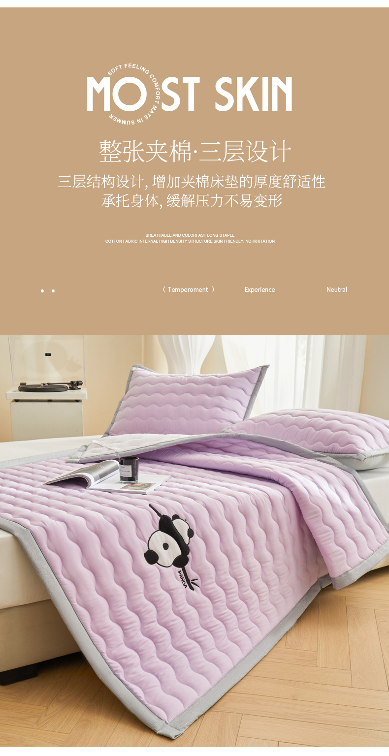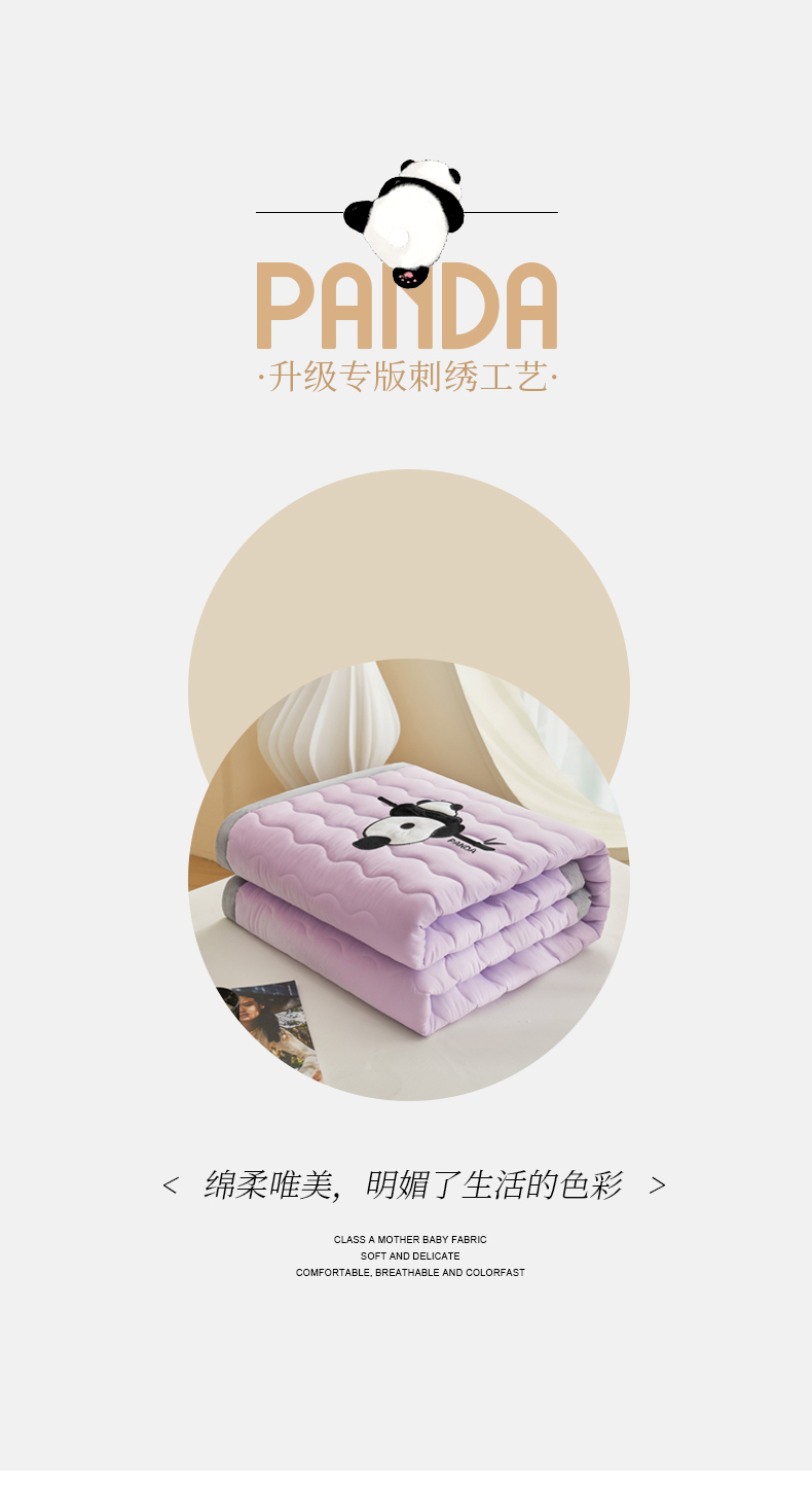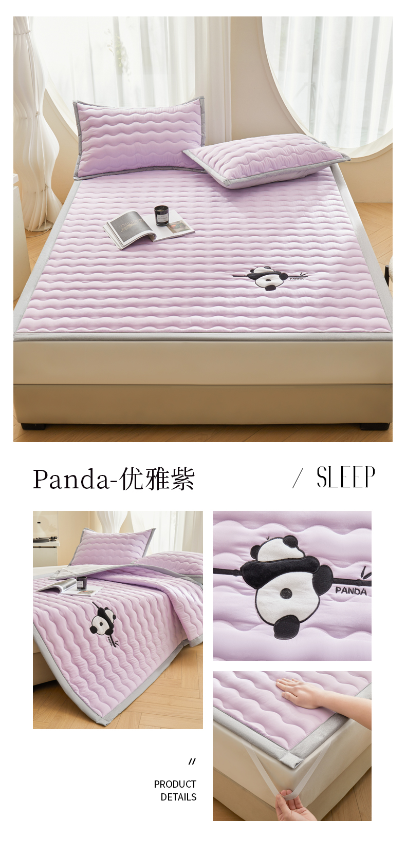 商品名称:LIFE.丽芙 2024新款素色刺绣宽包边大豆夹棉软床垫-四季款-panda系列 panda-优雅紫