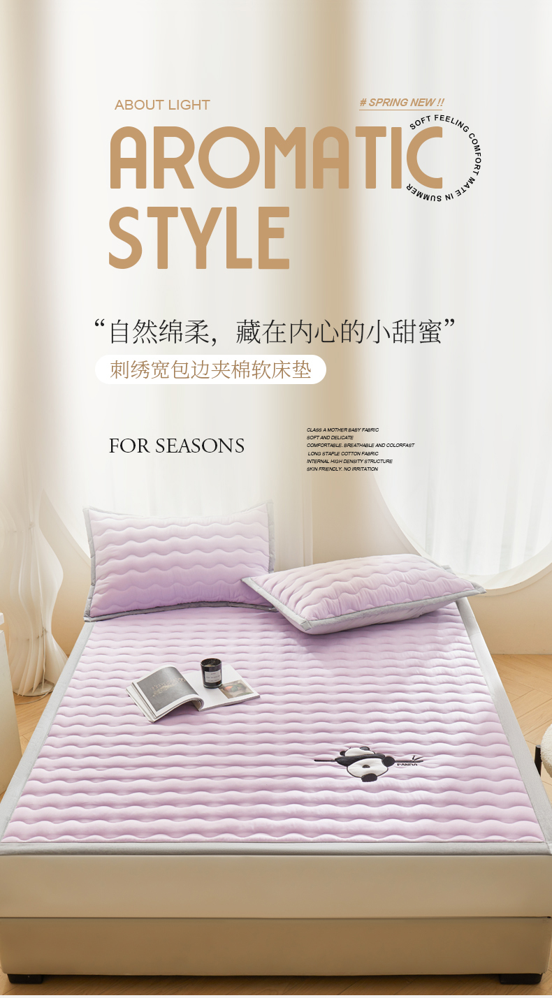 床垫/床褥 > LIFE.丽芙 2024新款素色刺绣宽包边大豆夹棉软床垫-四季款-panda系列 panda-优雅紫