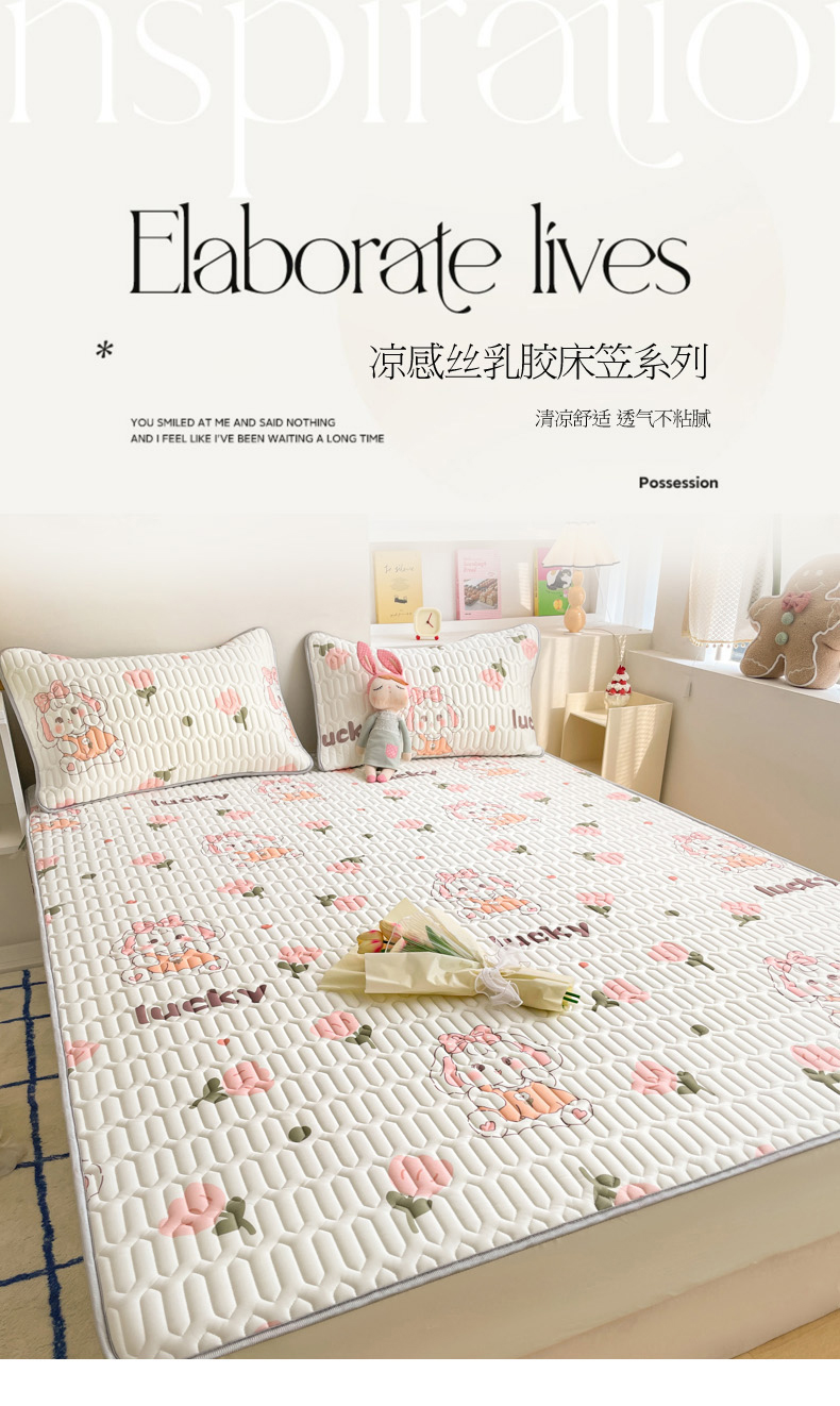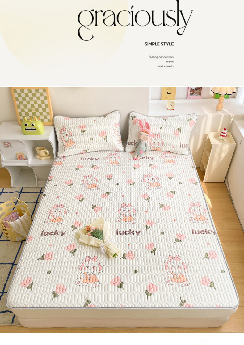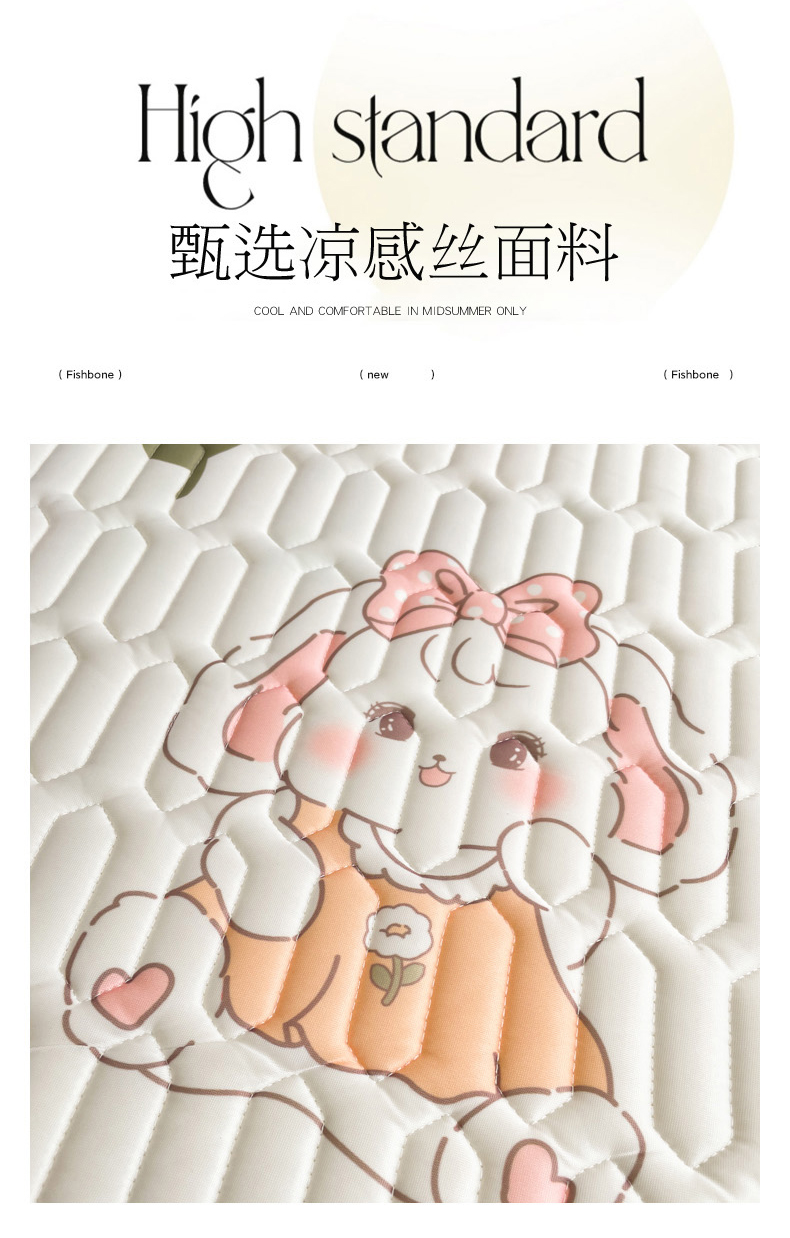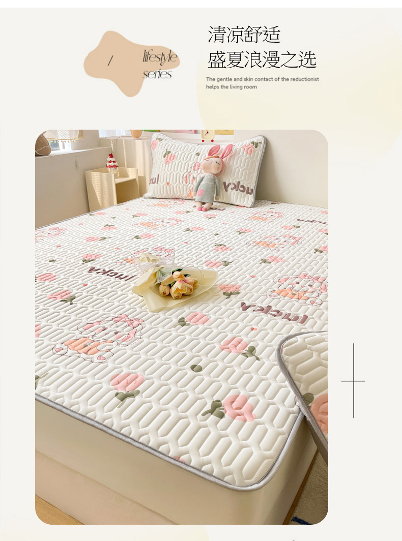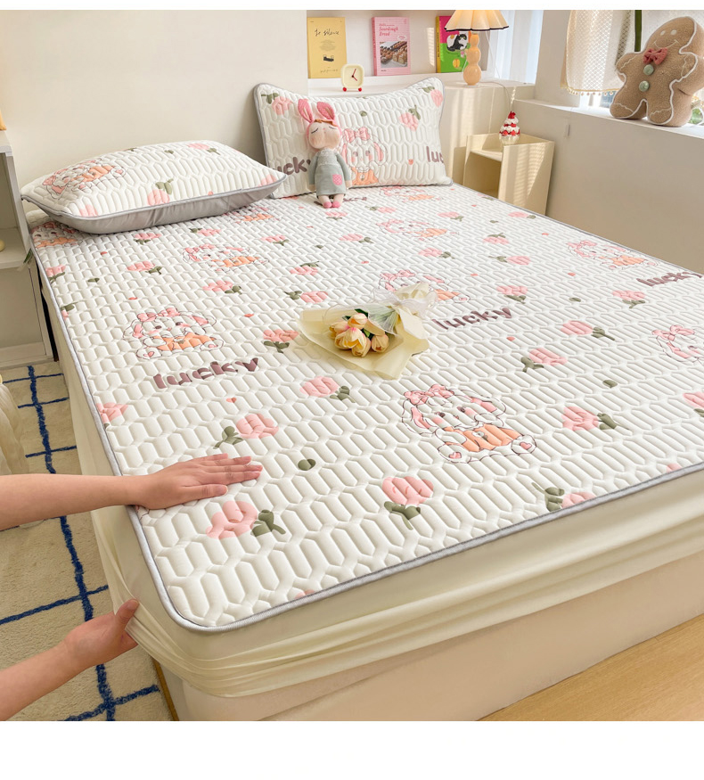 商品名称:2024新款印花小清新床笠款乳胶凉席系列 花花萌兔