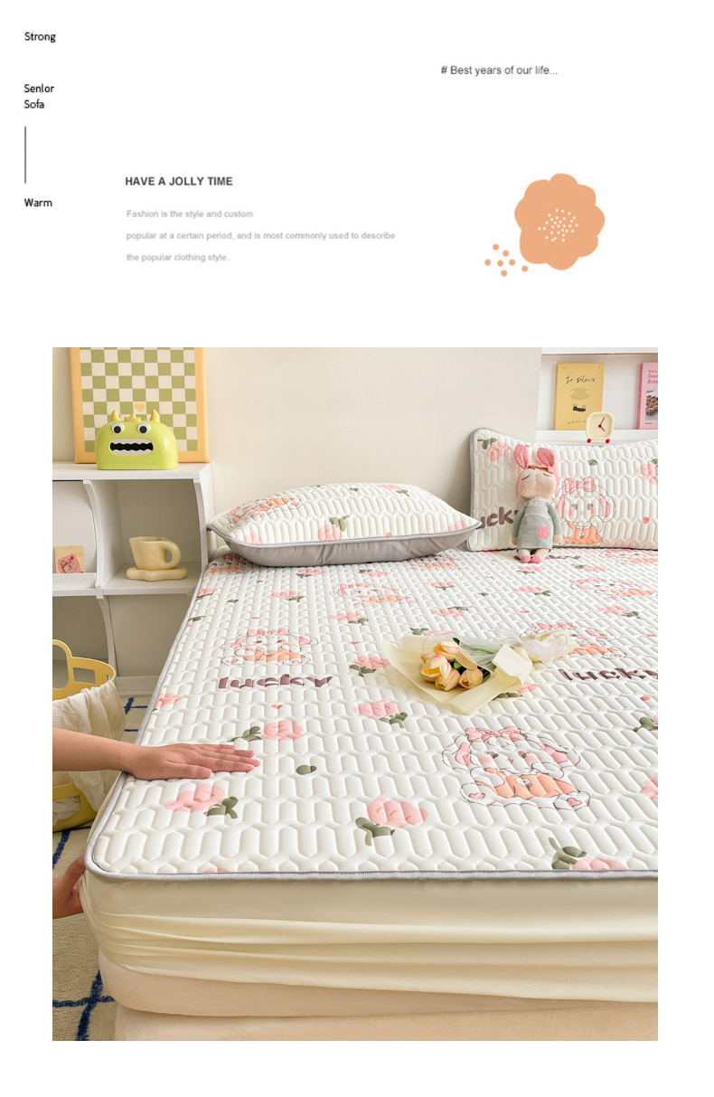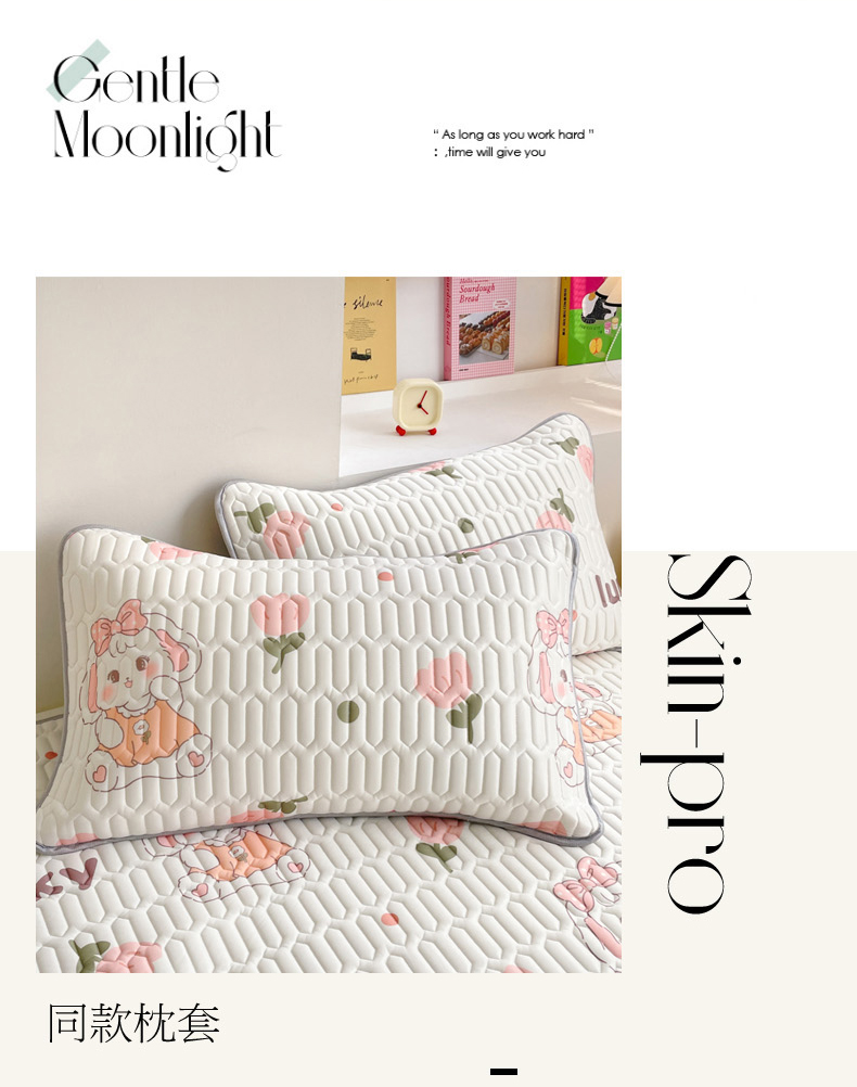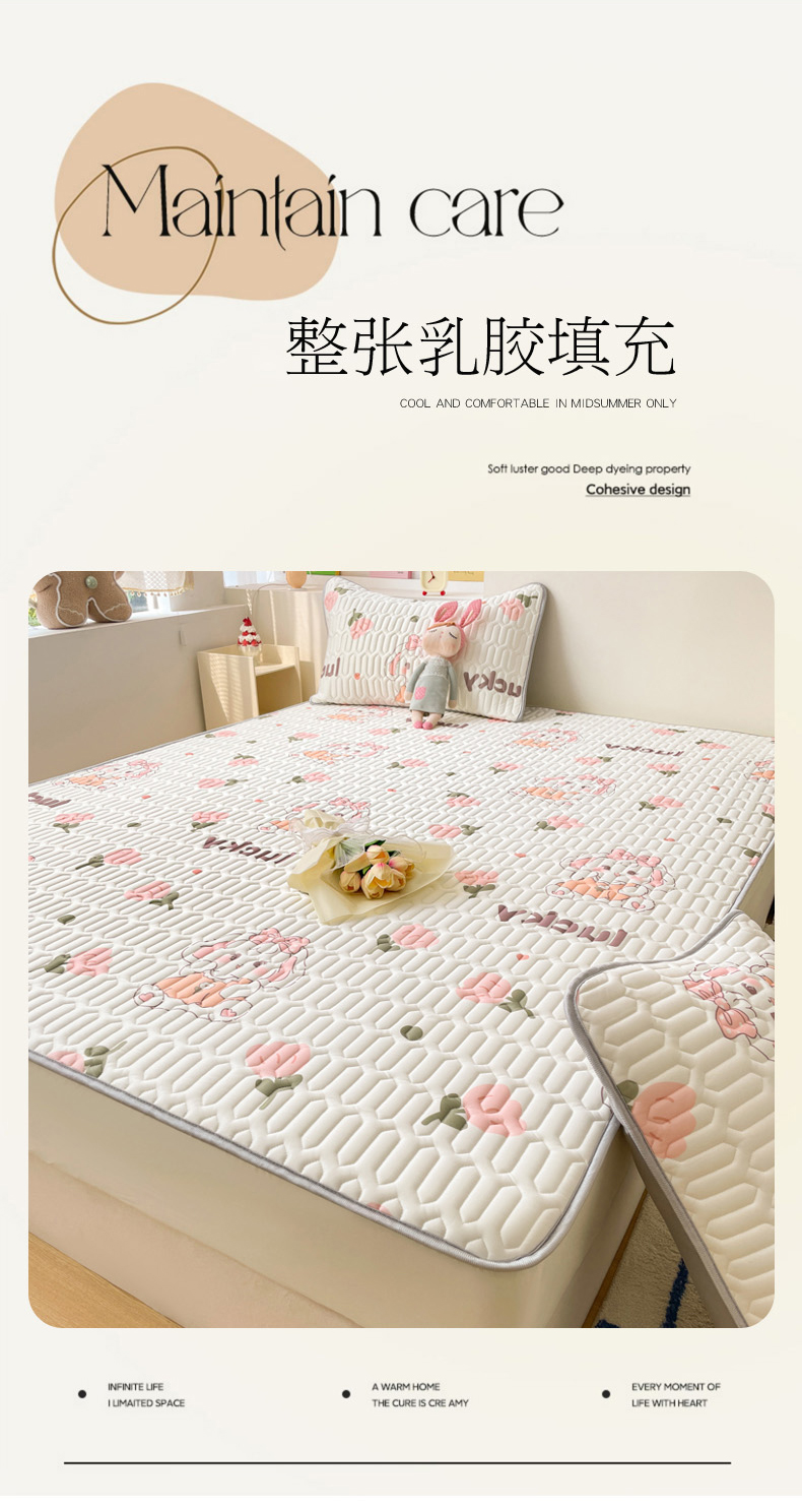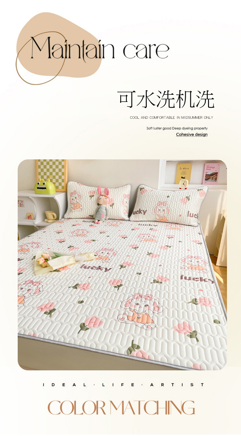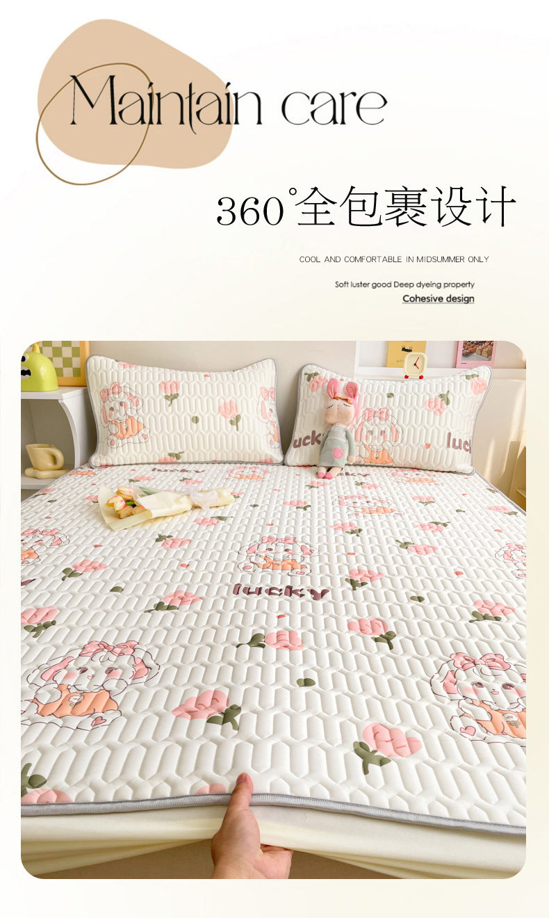 商品名称:2024新款印花小清新床笠款乳胶凉席系列 花花萌兔