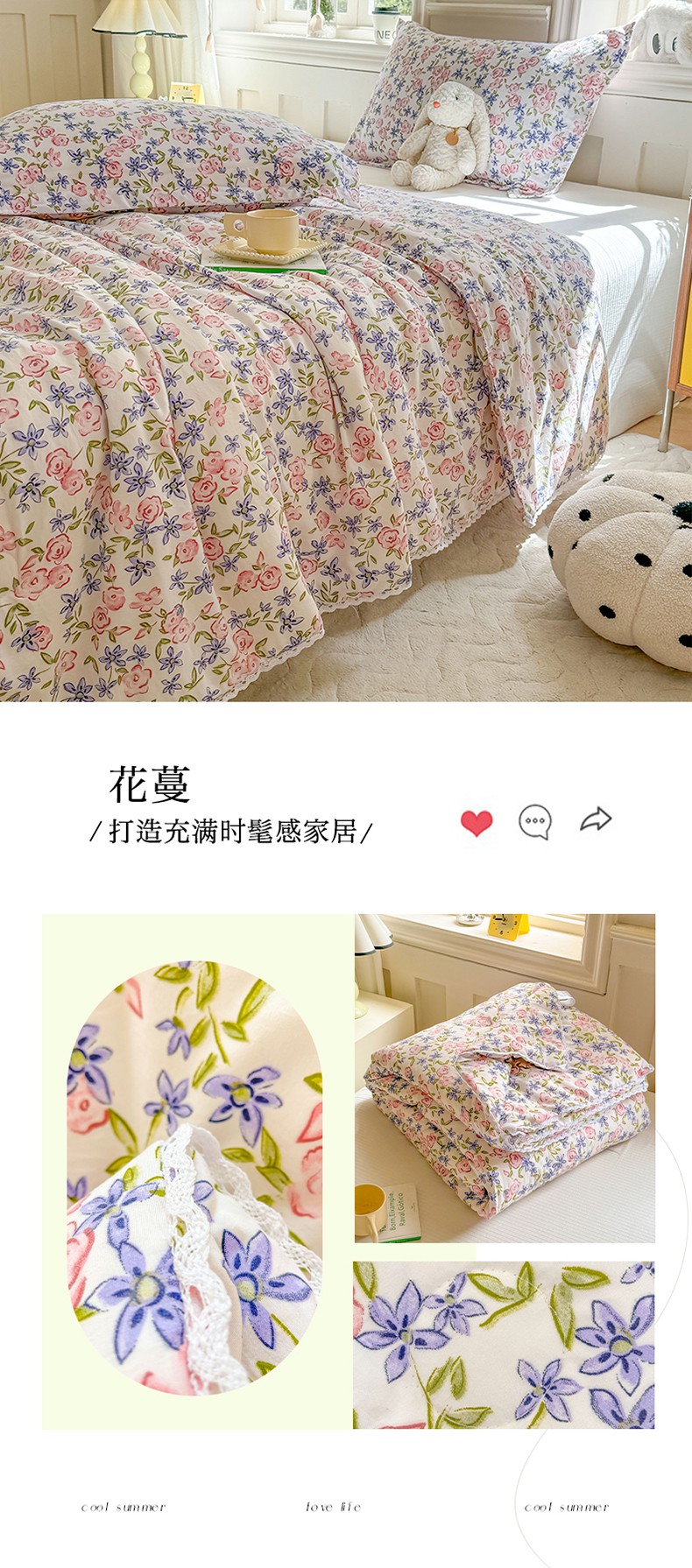 • 91家纺网 家纺一手货源 找家纺 创优家纺  2025新款A类皱皱纱小花边夏被 花蔓