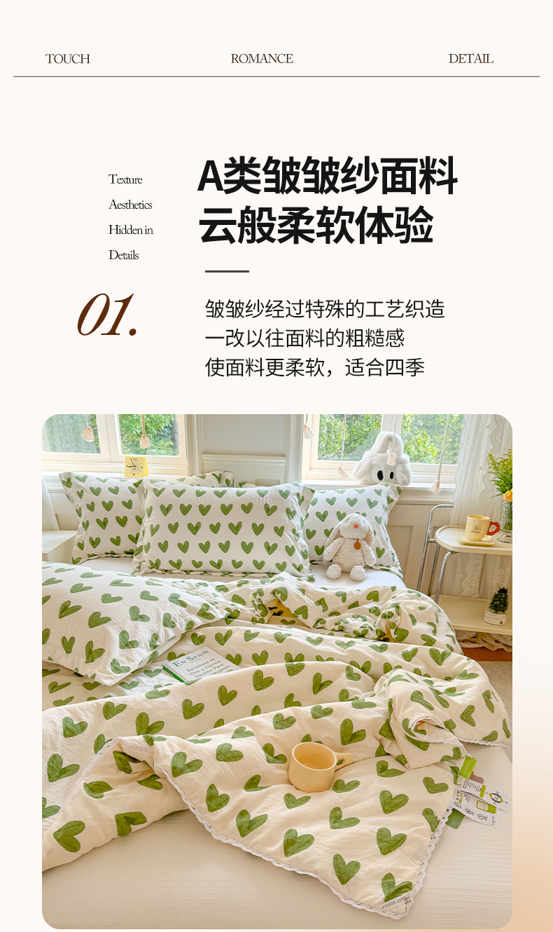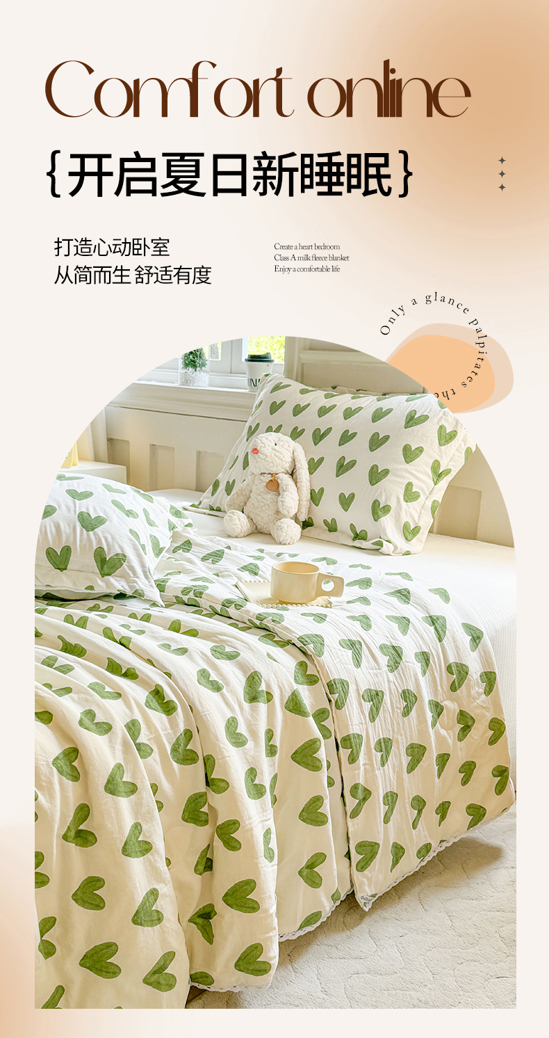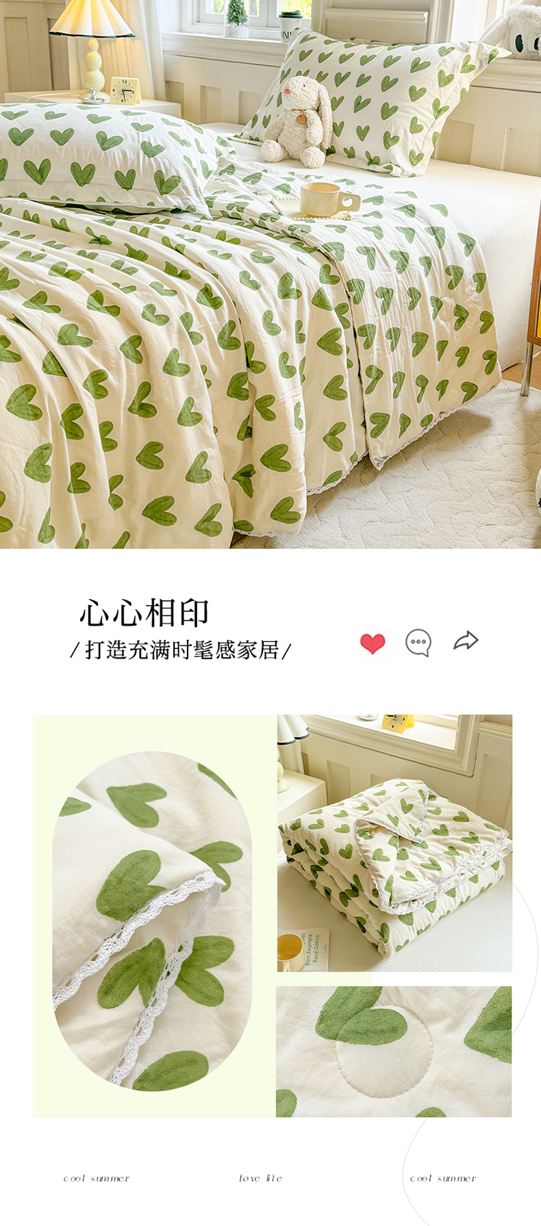 创优家纺 2025新款A类皱皱纱小花边夏被 心心相印