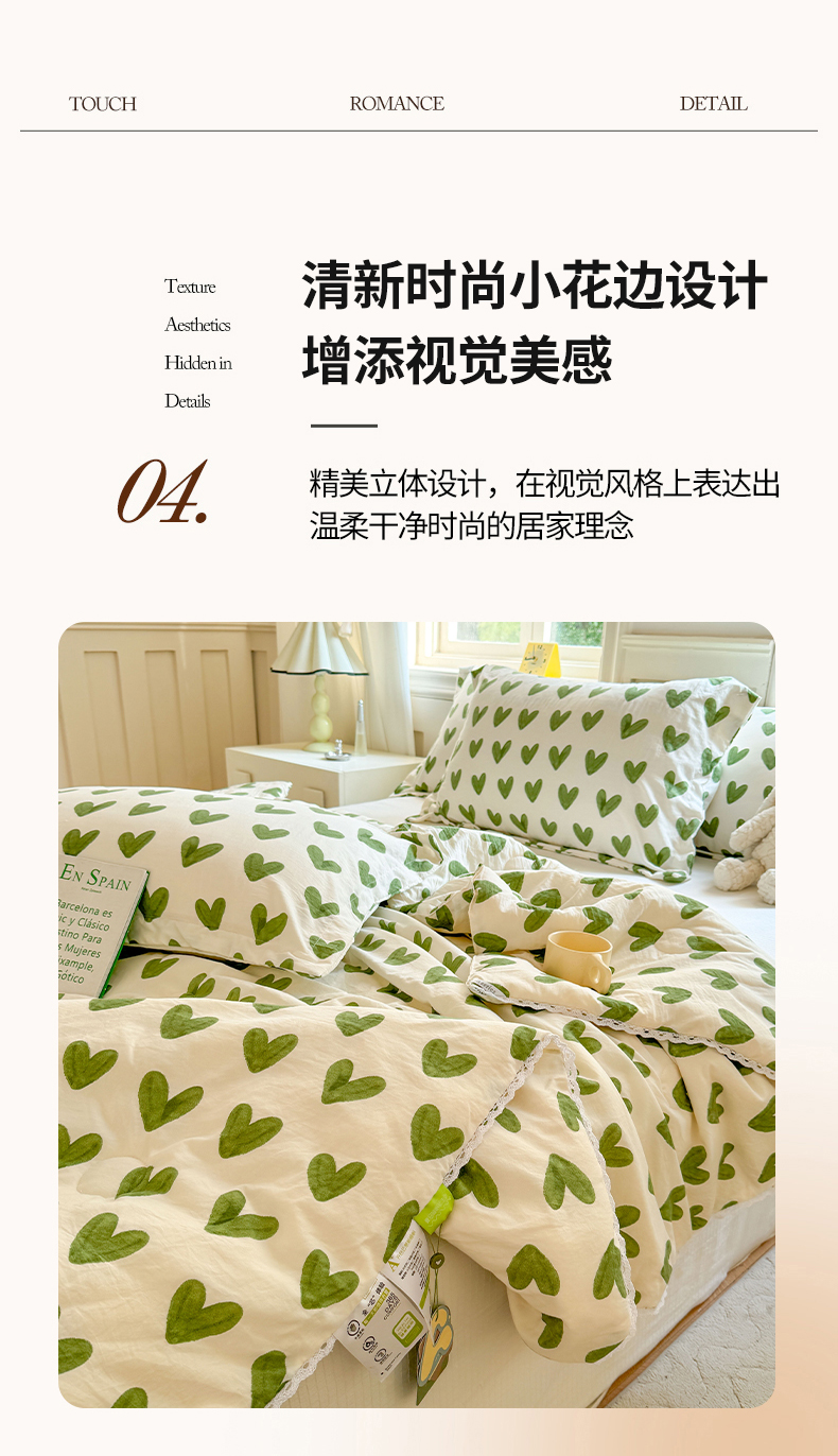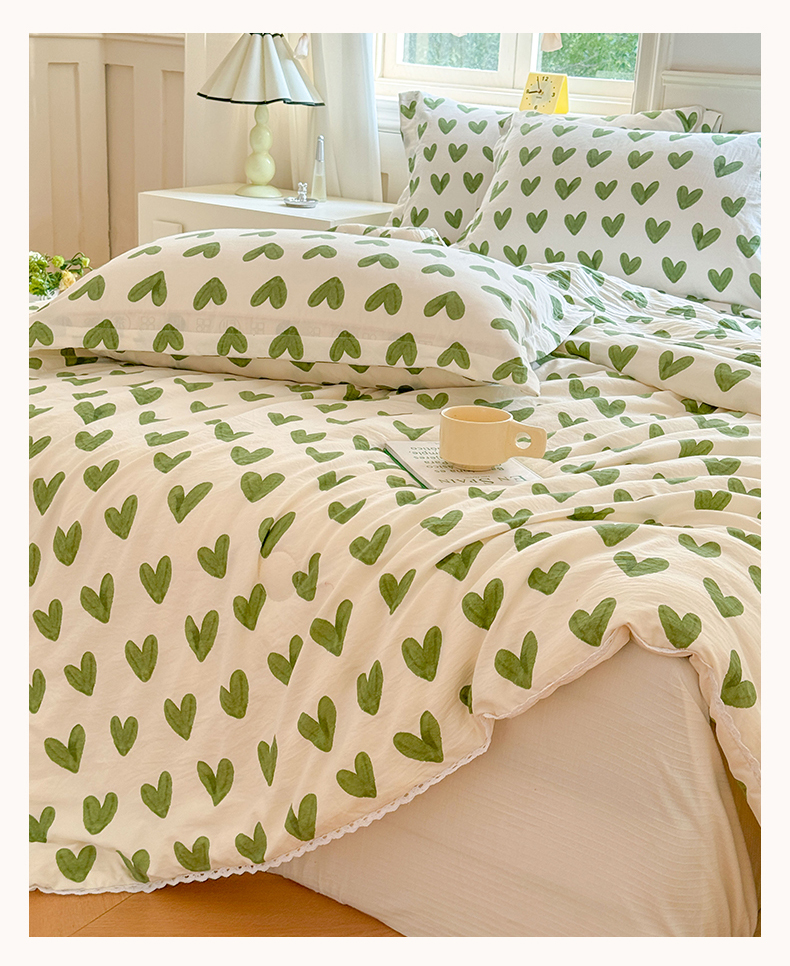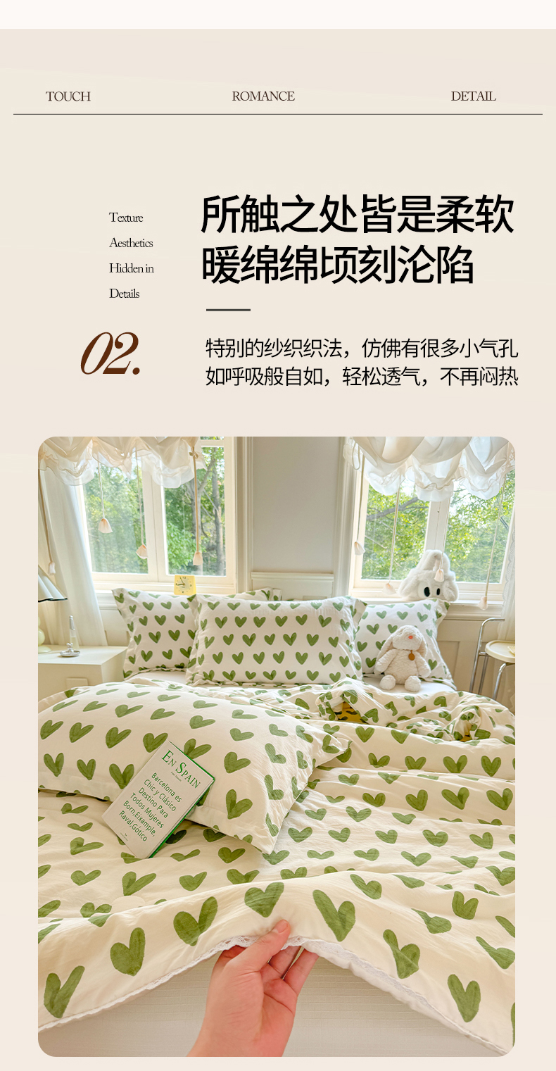 创优家纺 2025新款A类皱皱纱小花边夏被 心心相印