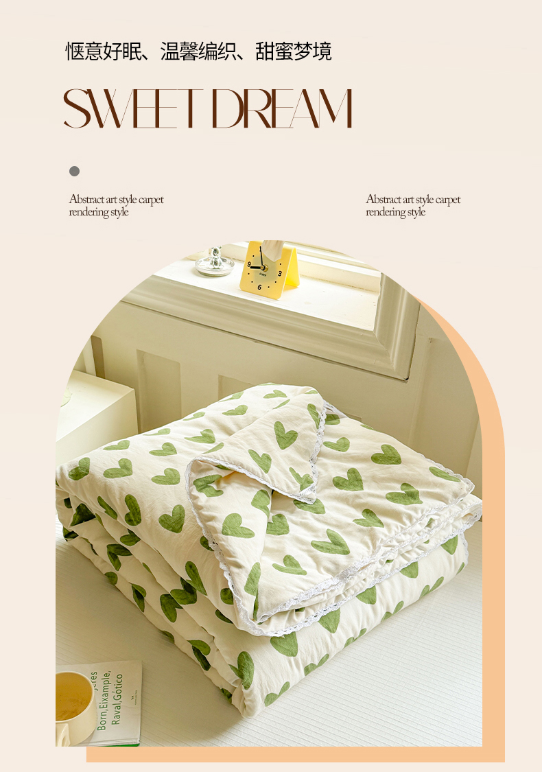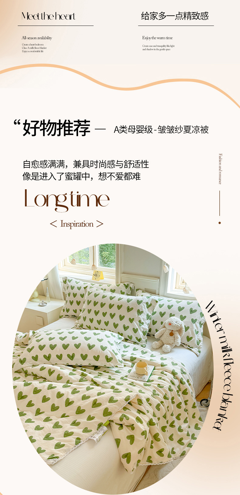 • 91家纺网 家纺一手货源 找家纺 创优家纺  2025新款A类皱皱纱小花边夏被 心心相印