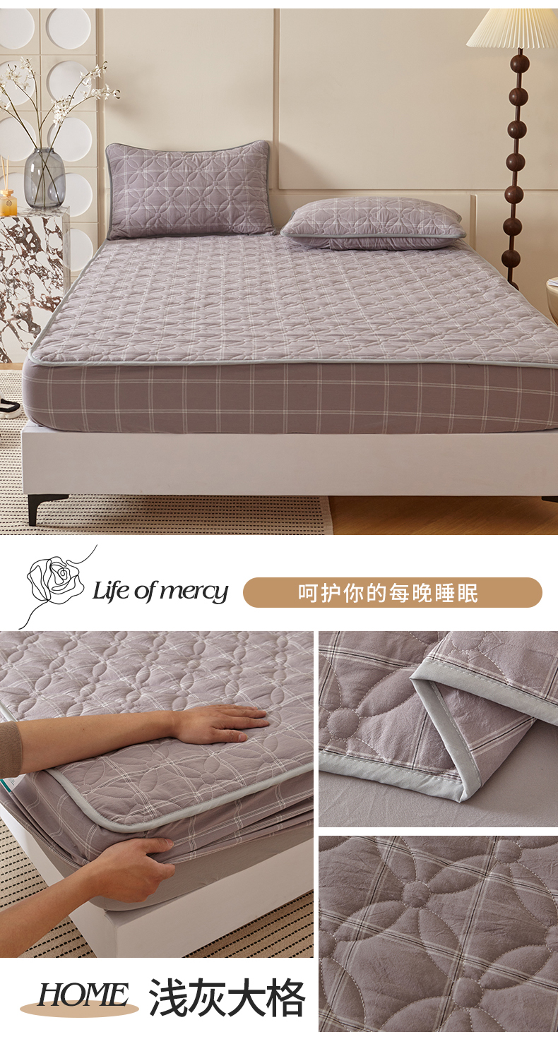 商品名称:杜先生 2024新款无印风水洗棉夹棉床笠 浅灰大格