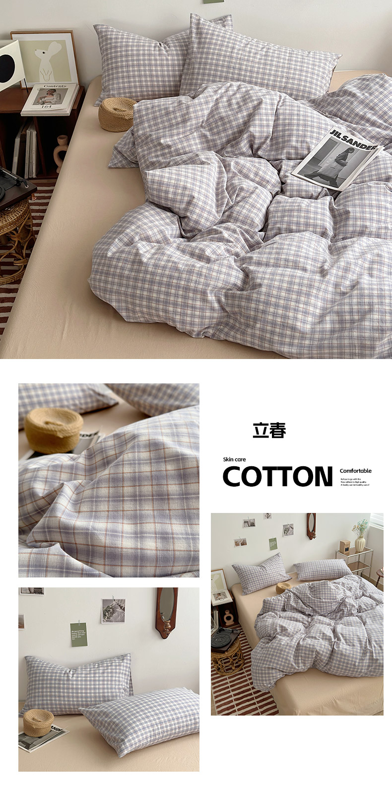 (总)水洗的故事 2025新款全棉色织水洗棉四件套,简序-粉,简序-灰,简序-蓝,简序-米黄,绿韵,樱织,云汐,紫韵粉格