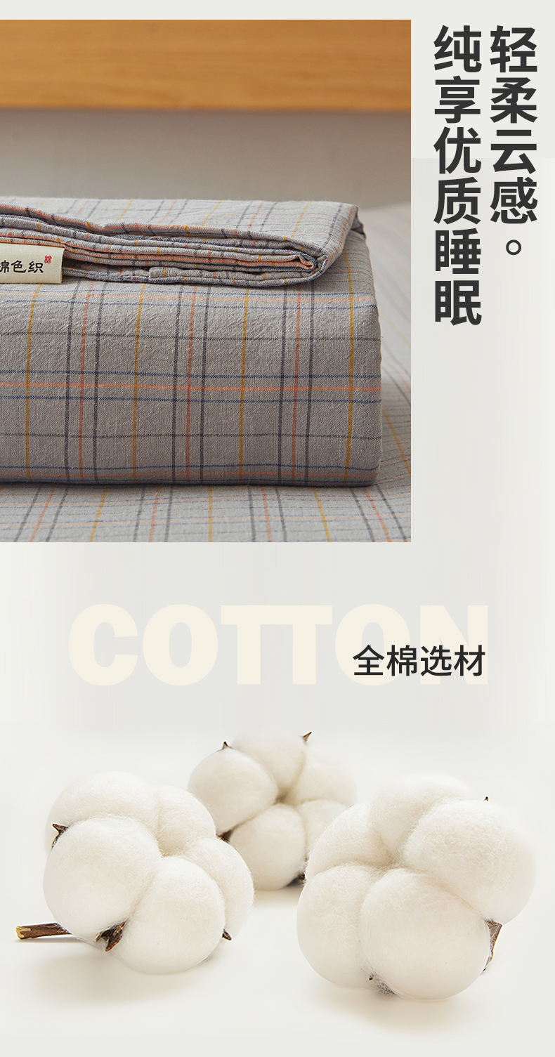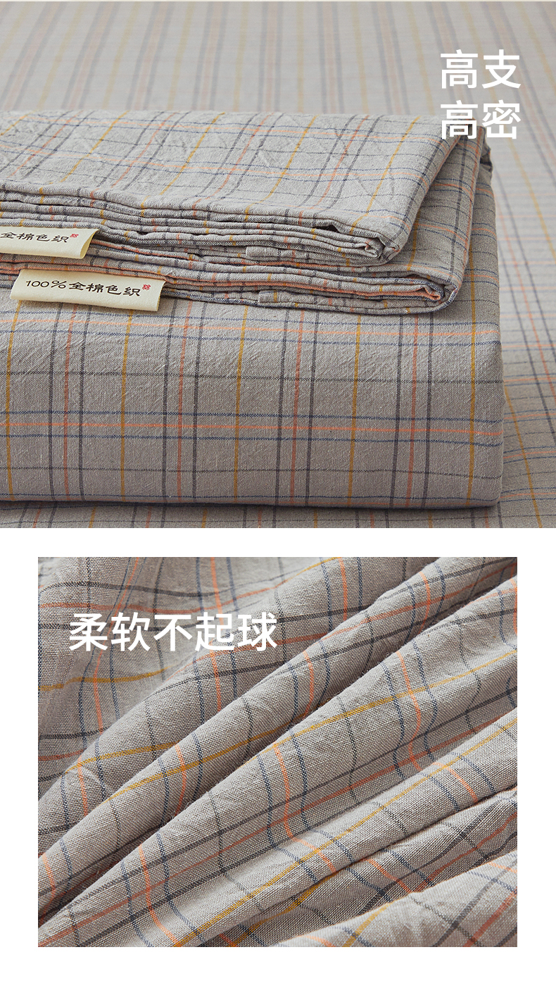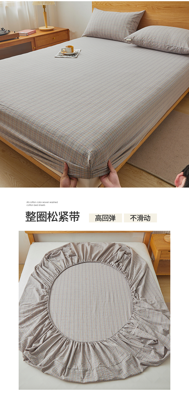 居眠 2024新款全棉色织单纯水洗棉无印 床笠 缤彩格 灰