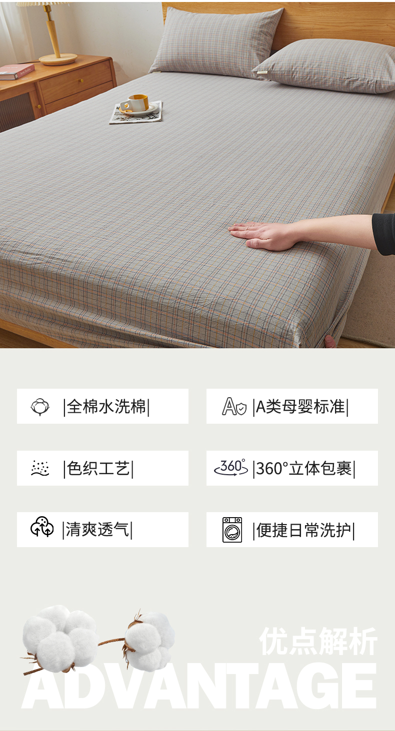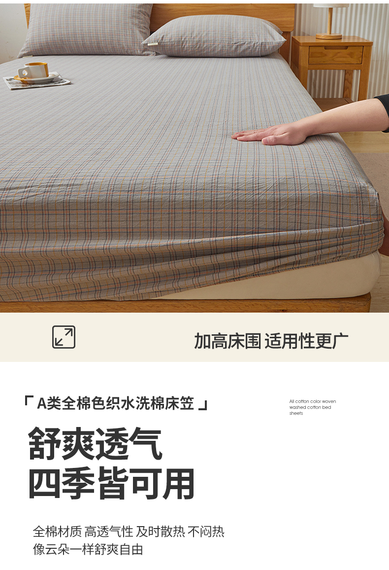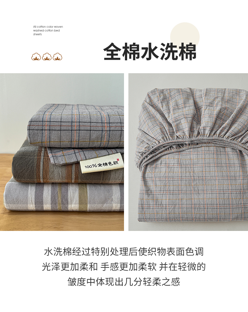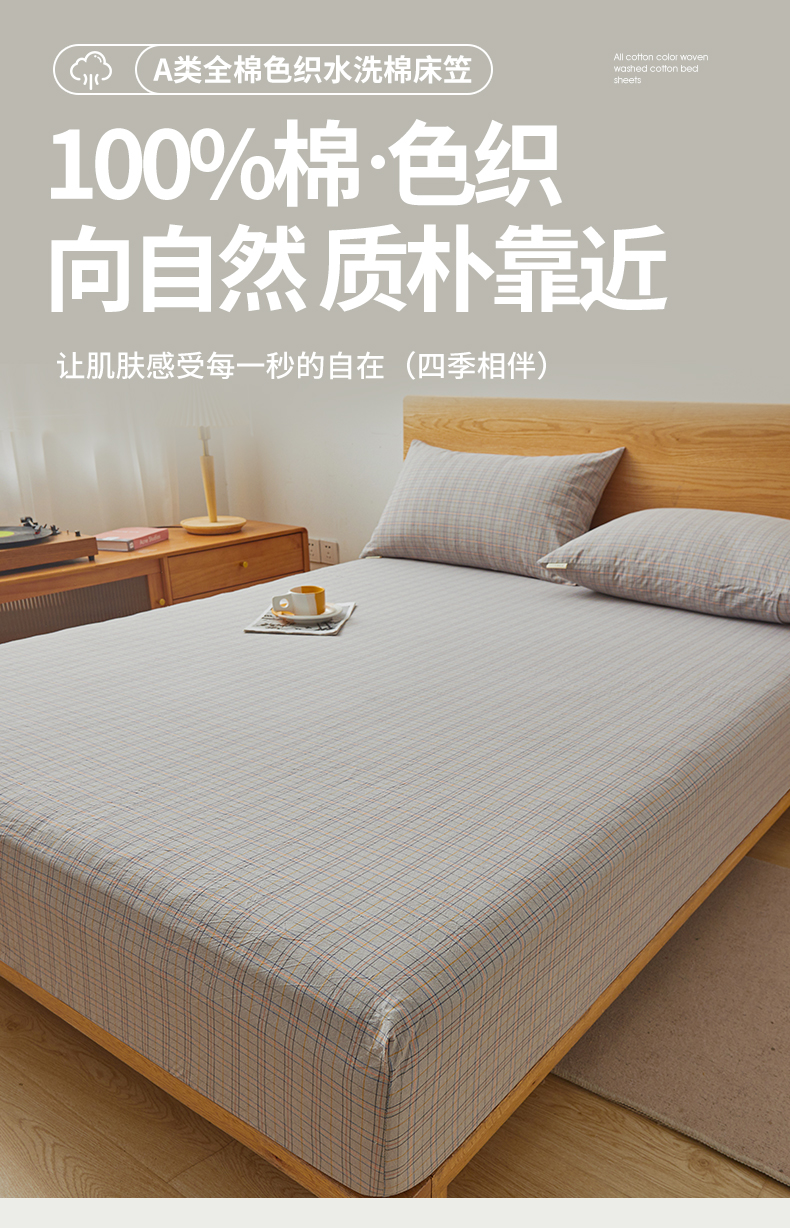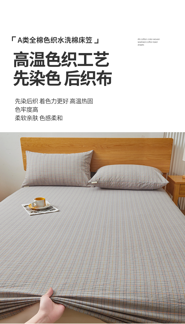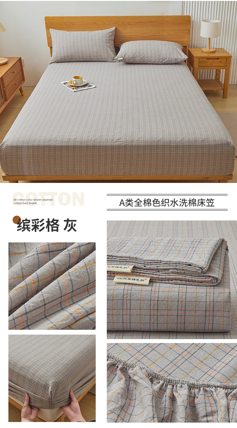 • 91家纺网 家纺一手货源 找家纺 居眠 2024新款全棉色织单纯水洗棉无印 床笠 缤彩格 灰