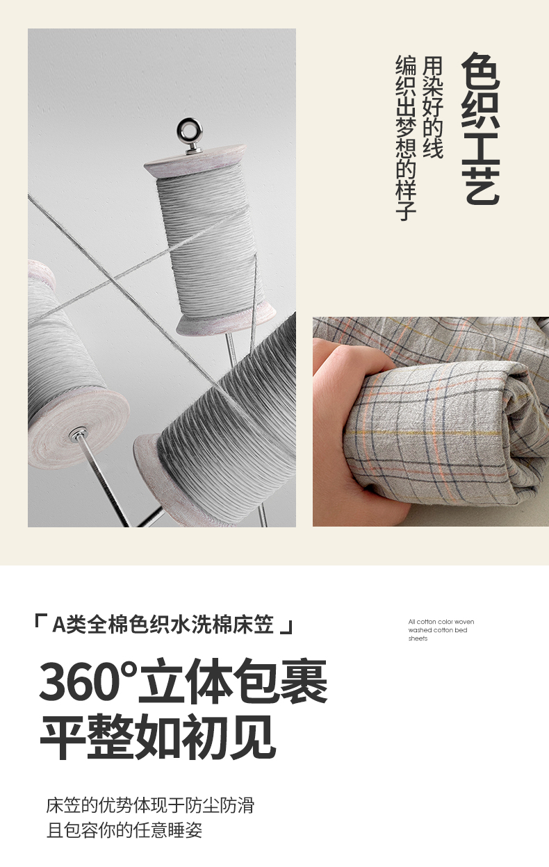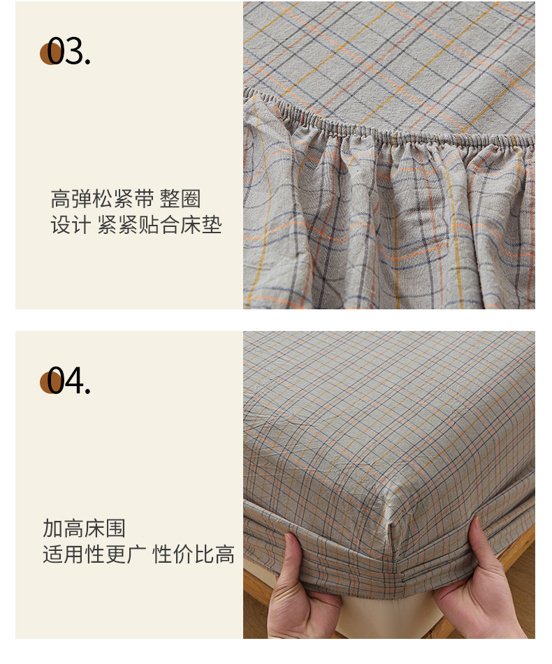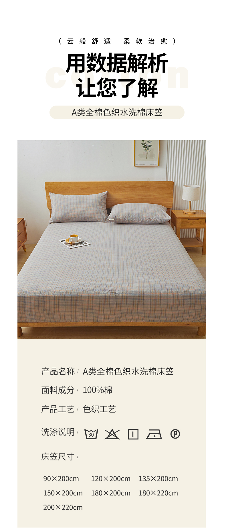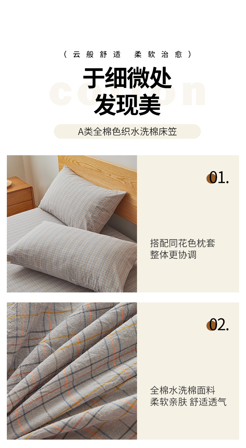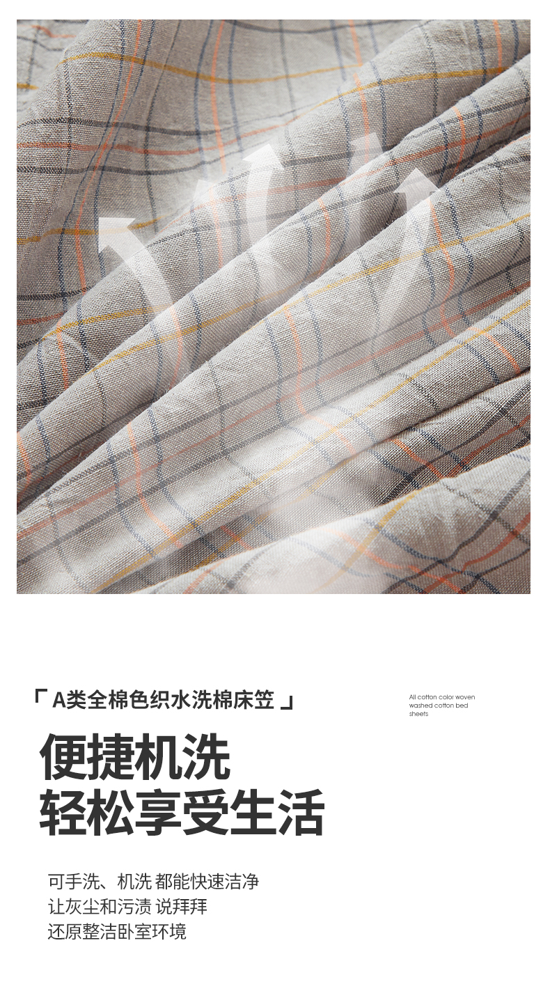 • 91家纺网 家纺一手货源 找家纺 居眠 2024新款全棉色织单纯水洗棉无印 床笠 缤彩格 灰