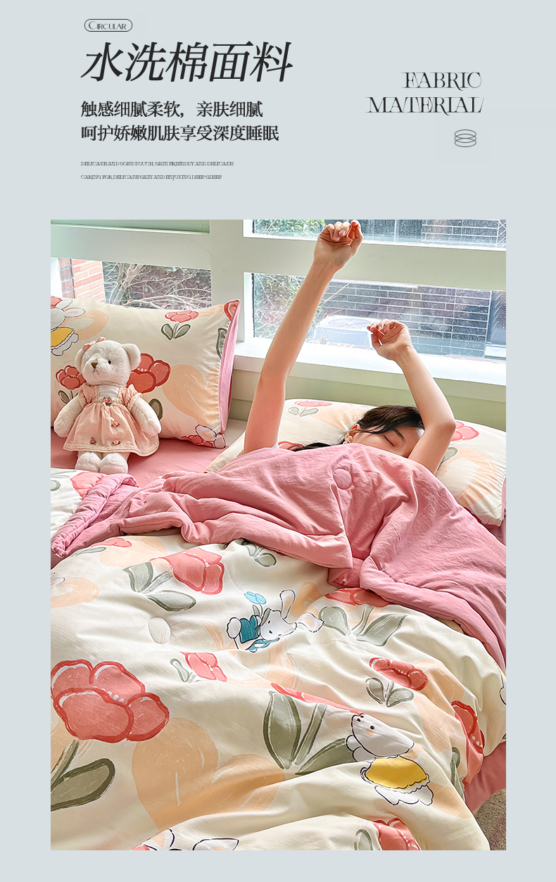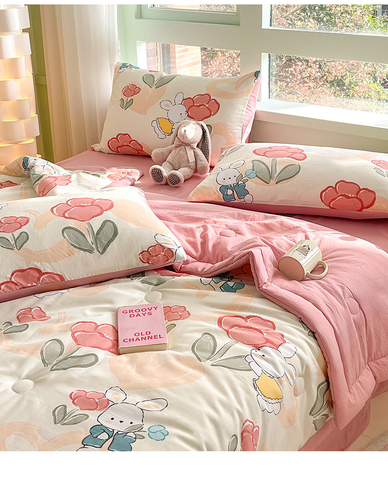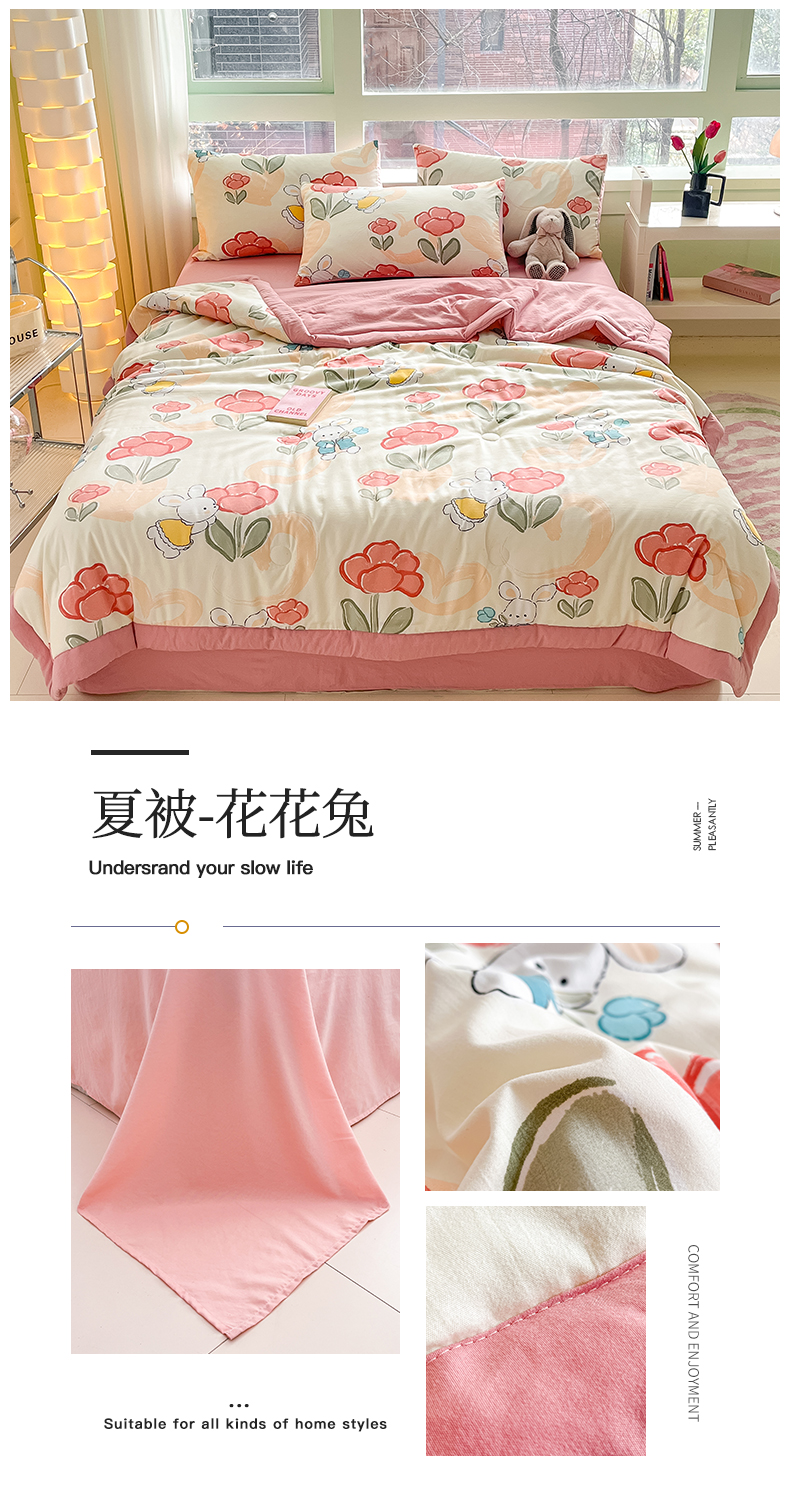 商品名称:古吉梦2024新款水洗棉小清新印花夏被被子被芯 夏被-花花兔