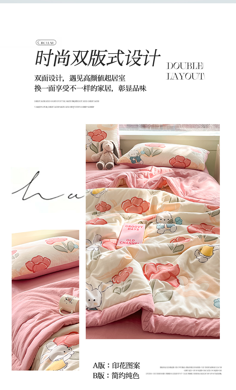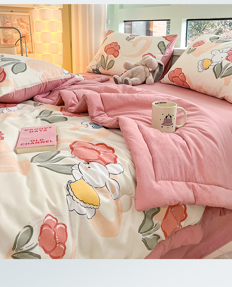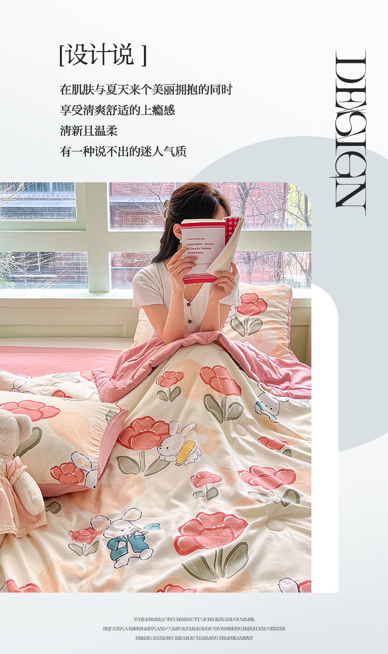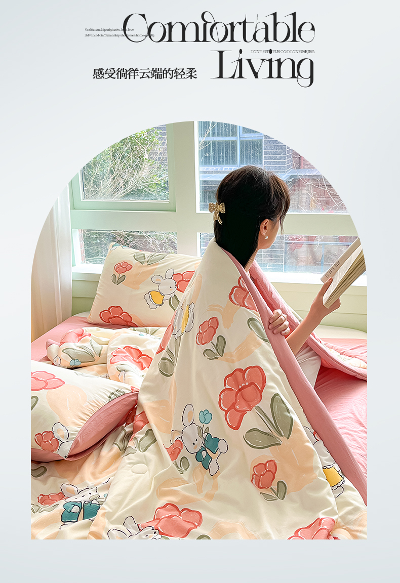 商品名称:古吉梦2024新款水洗棉小清新印花夏被被子被芯 夏被-花花兔