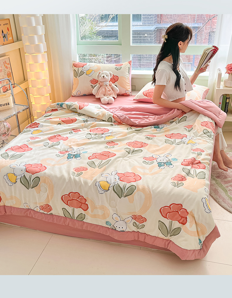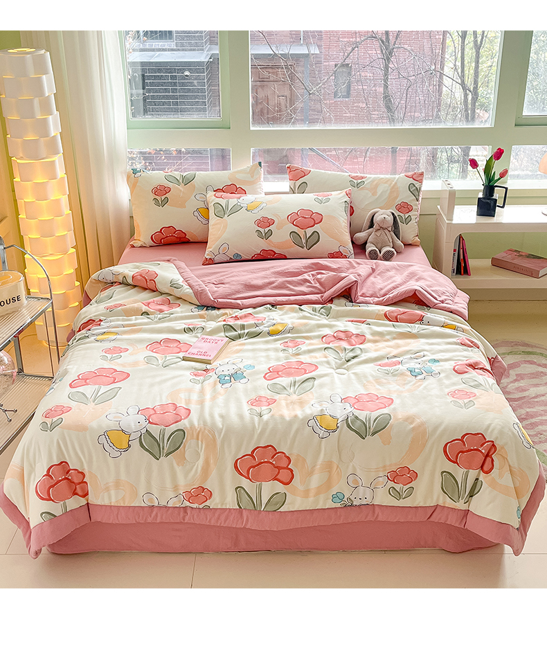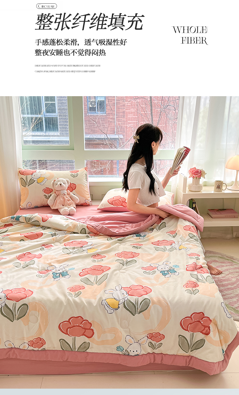 古吉梦2024新款水洗棉小清新印花夏被被子被芯 夏被-花花兔