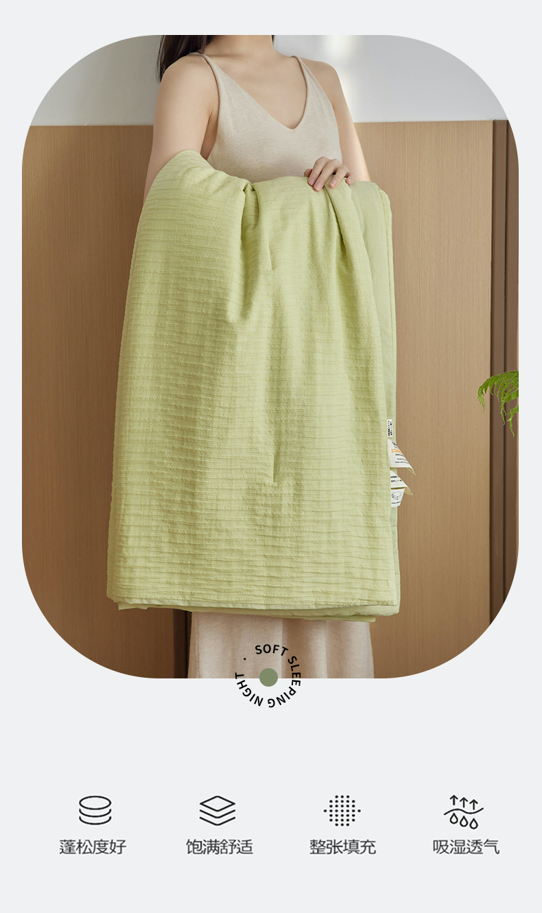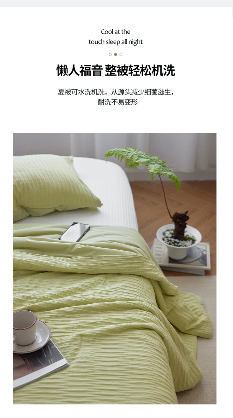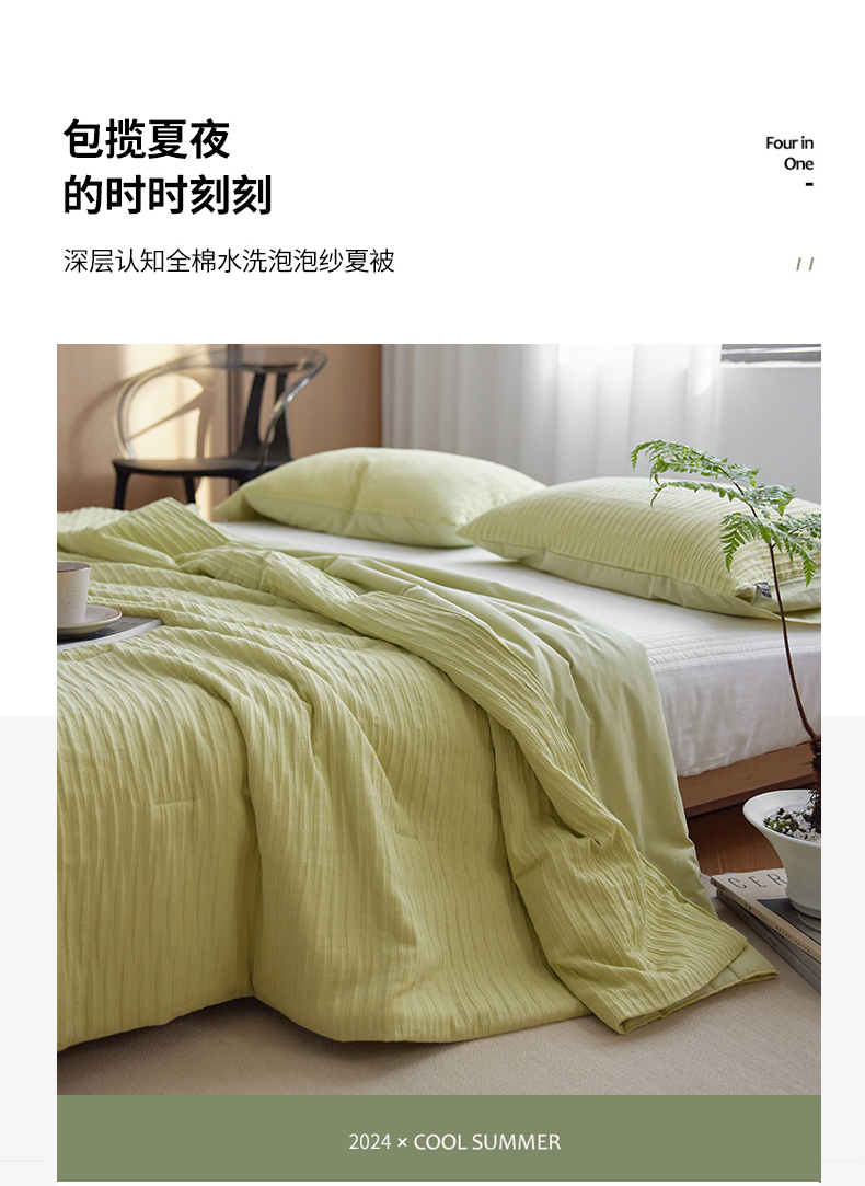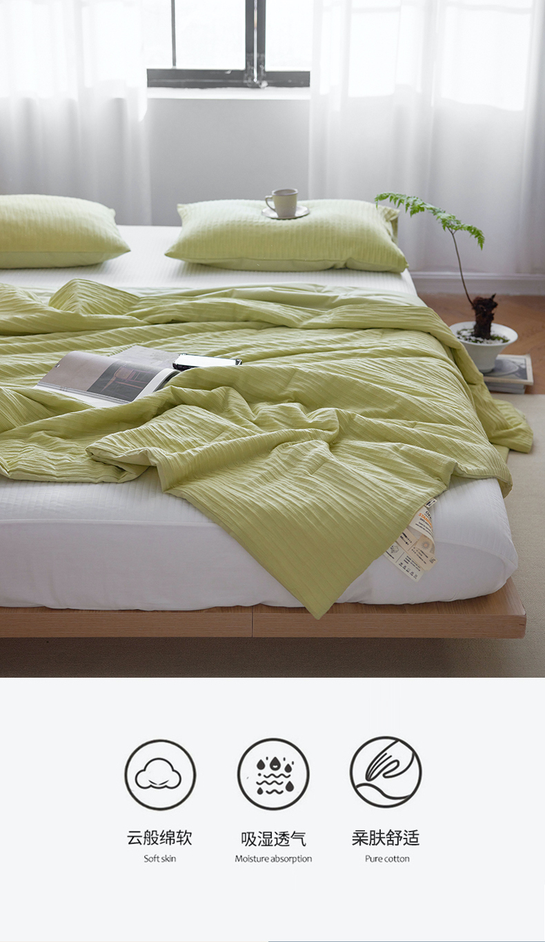 商品名称:风向标家纺 2024新款全棉立体提花泡泡纱夏被夏被三件套 泡泡纱-嫩芽绿
