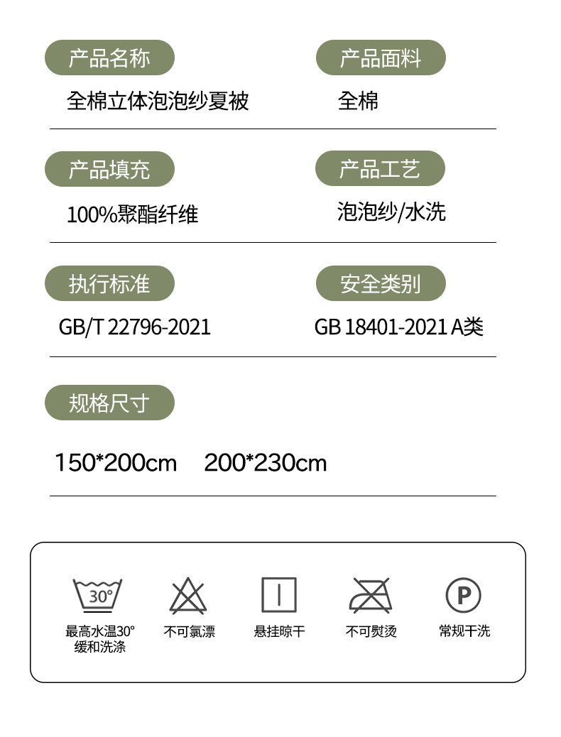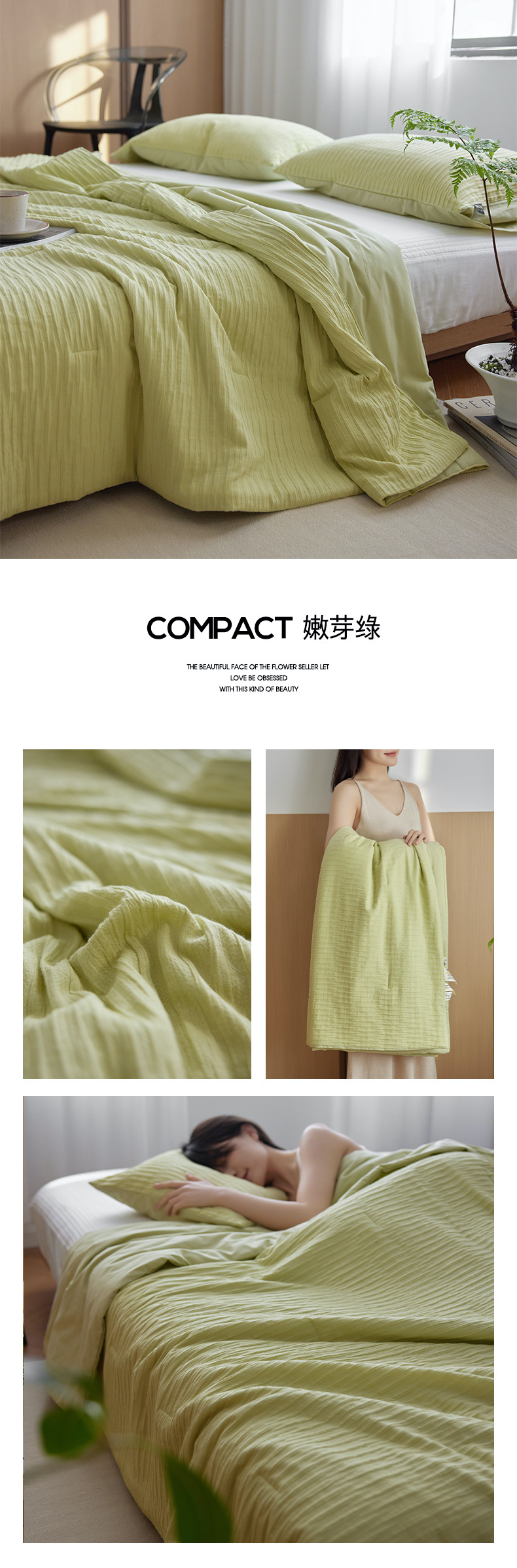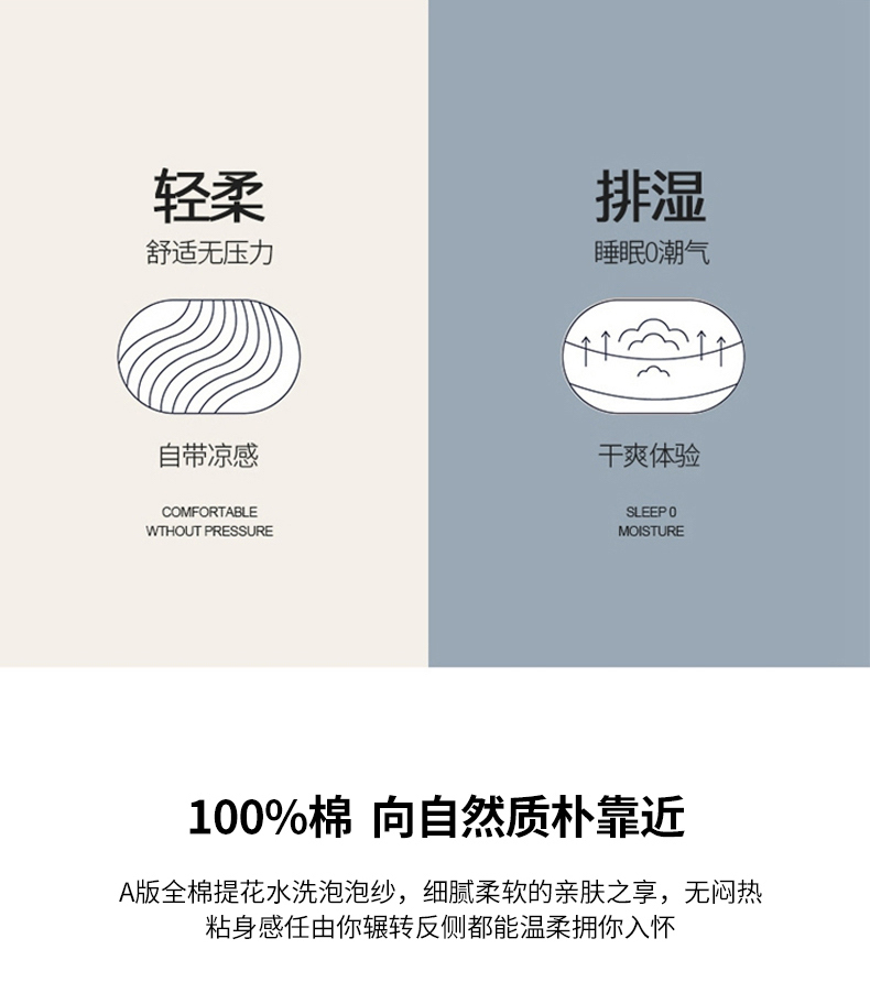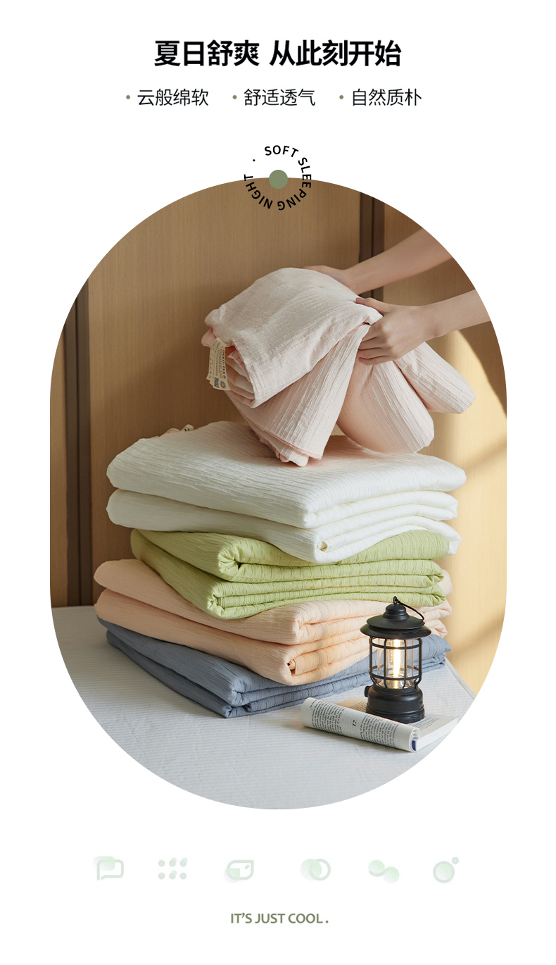 商品名称:风向标家纺 2024新款全棉立体提花泡泡纱夏被夏被三件套 泡泡纱-嫩芽绿