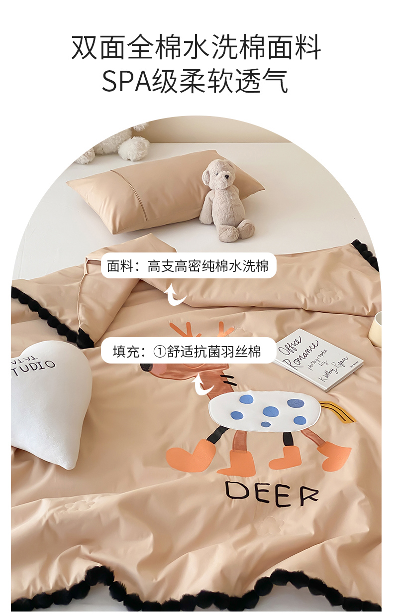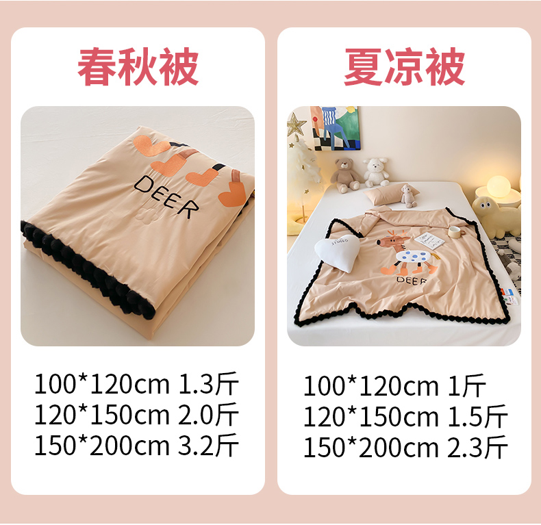商品名称:喜多兔儿童家纺 2024新品全棉水洗棉夏被空调被小安馨被子 卡其色小鹿崽