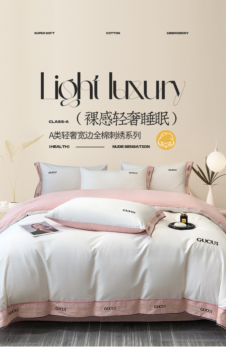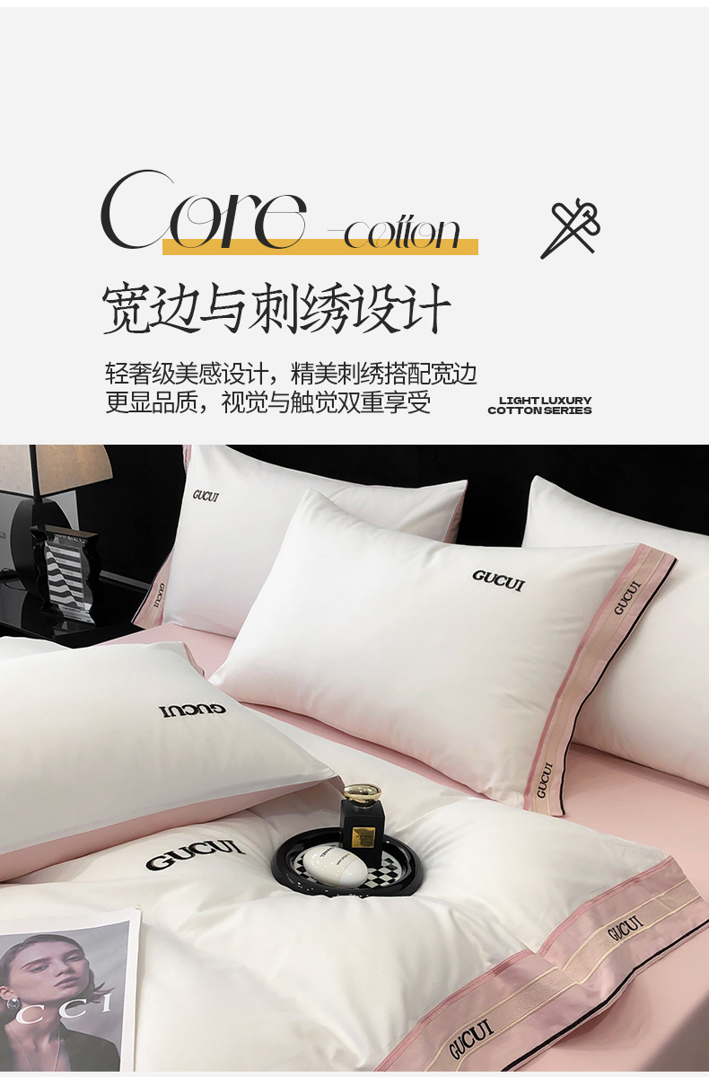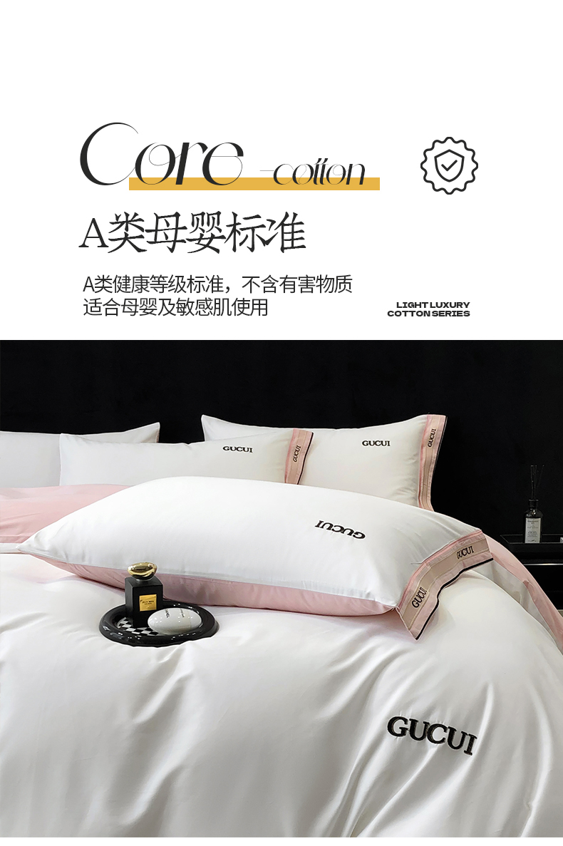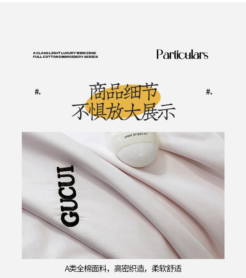 商品名称:懒猫家纺 G轻奢系列高精密40支13374全棉喷气绣花四件套 G轻奢-白屿