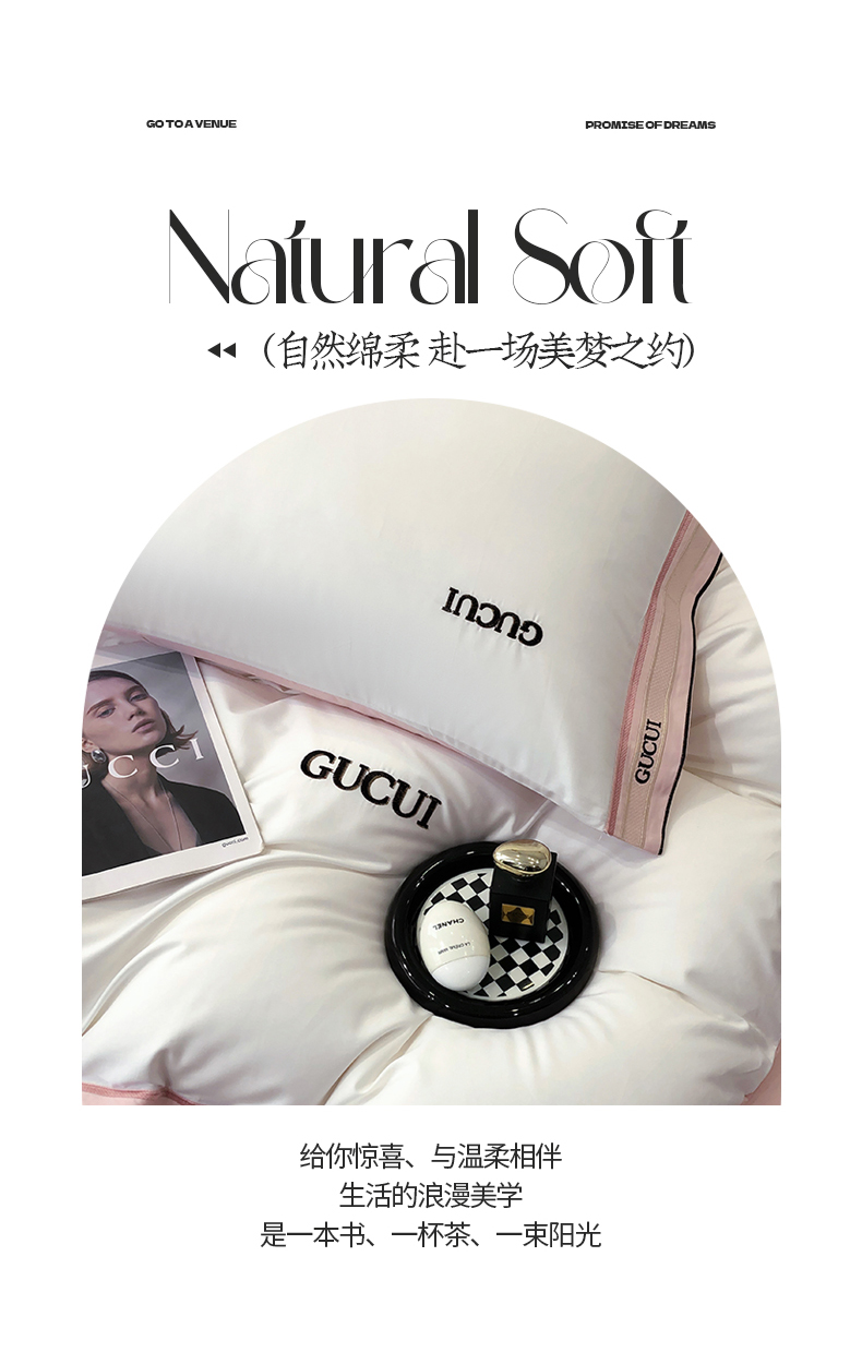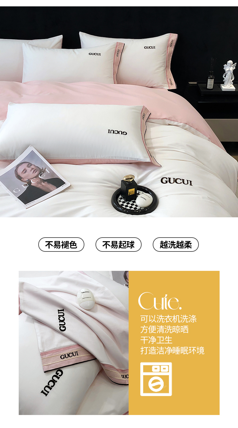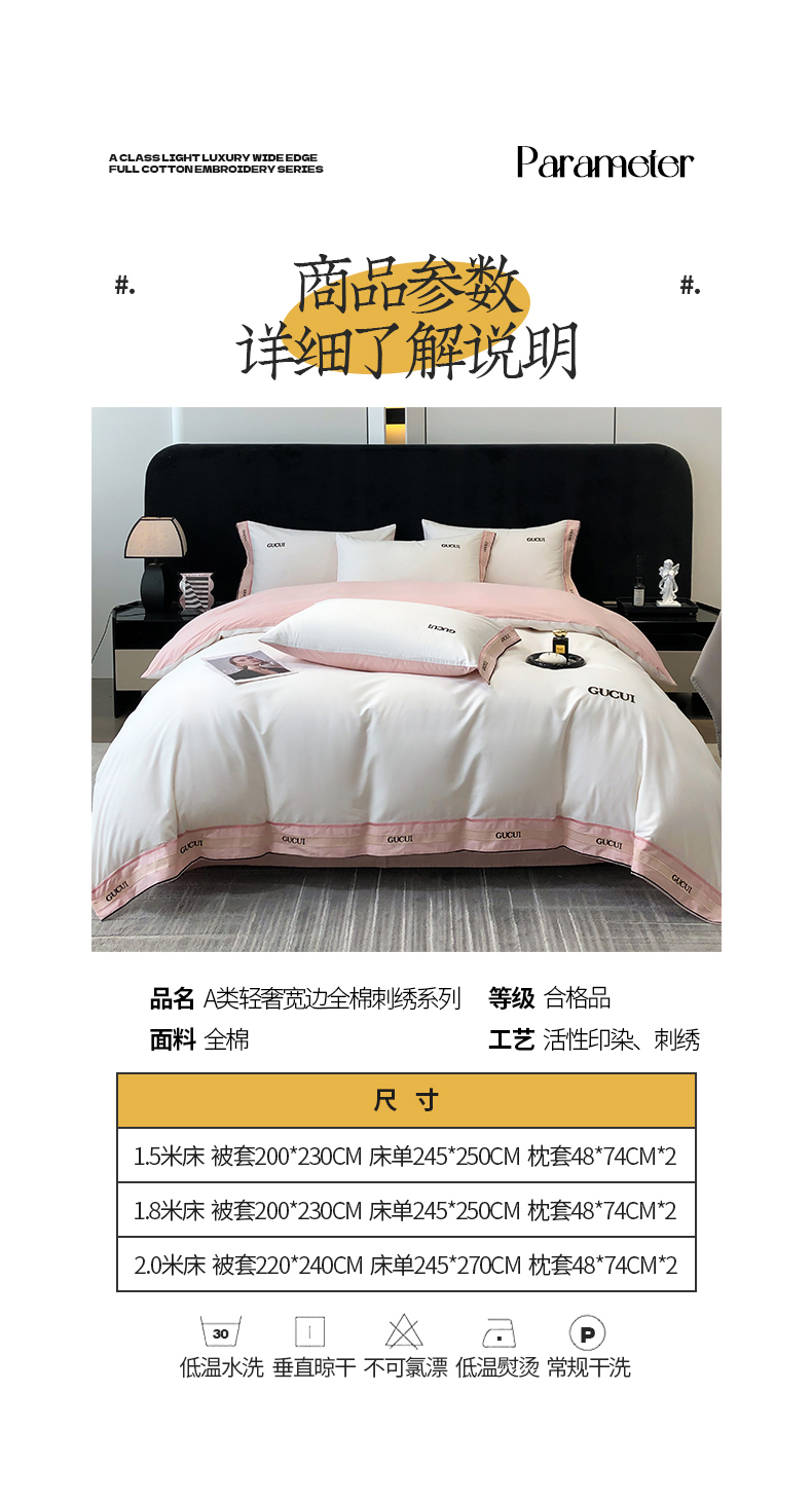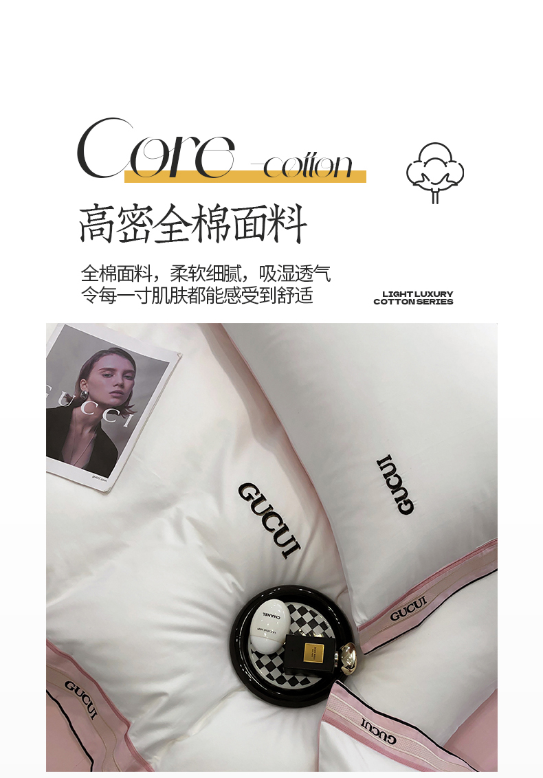 商品名称:懒猫家纺 G轻奢系列高精密40支13374全棉喷气绣花四件套 G轻奢-白屿