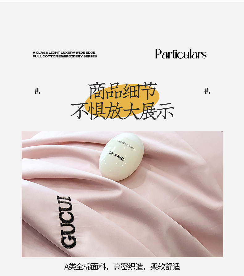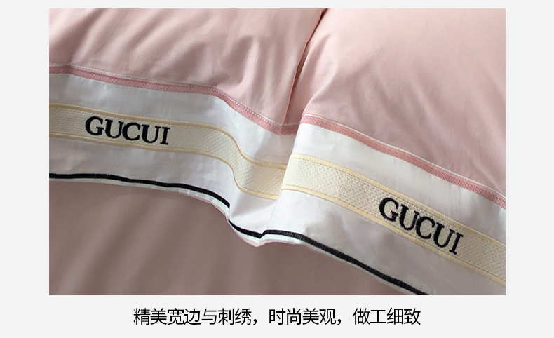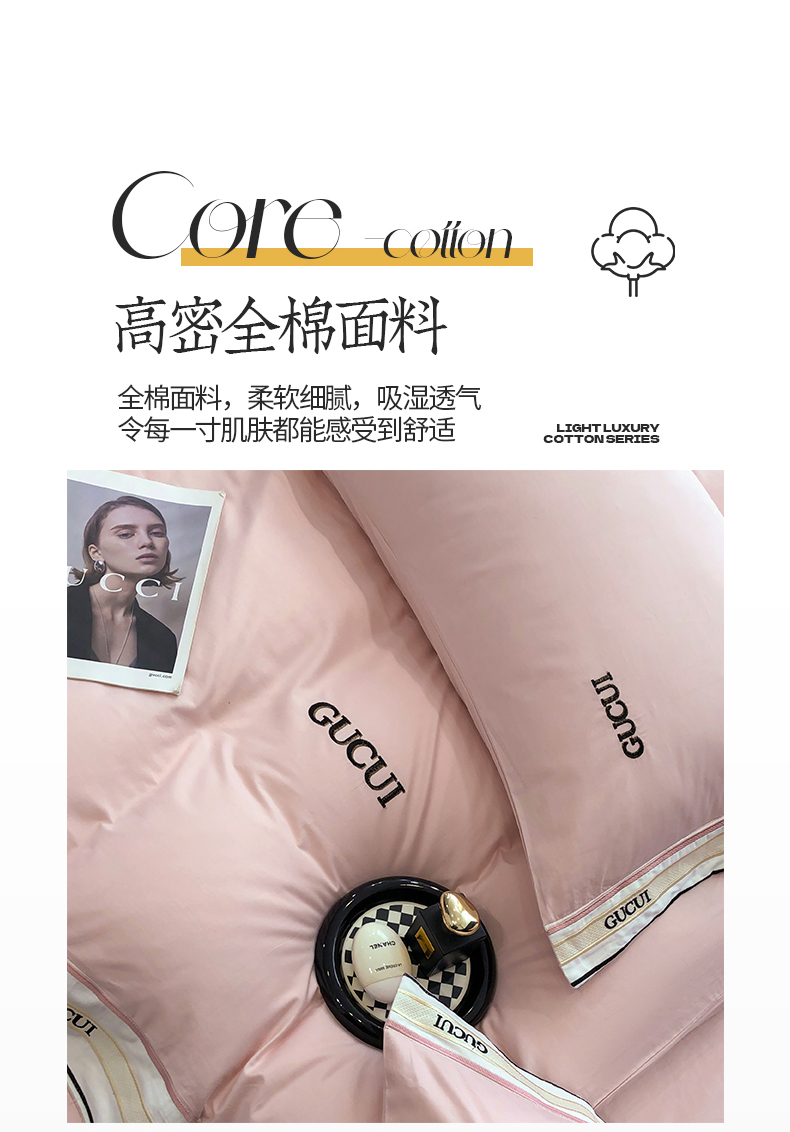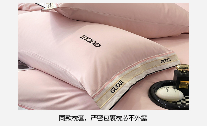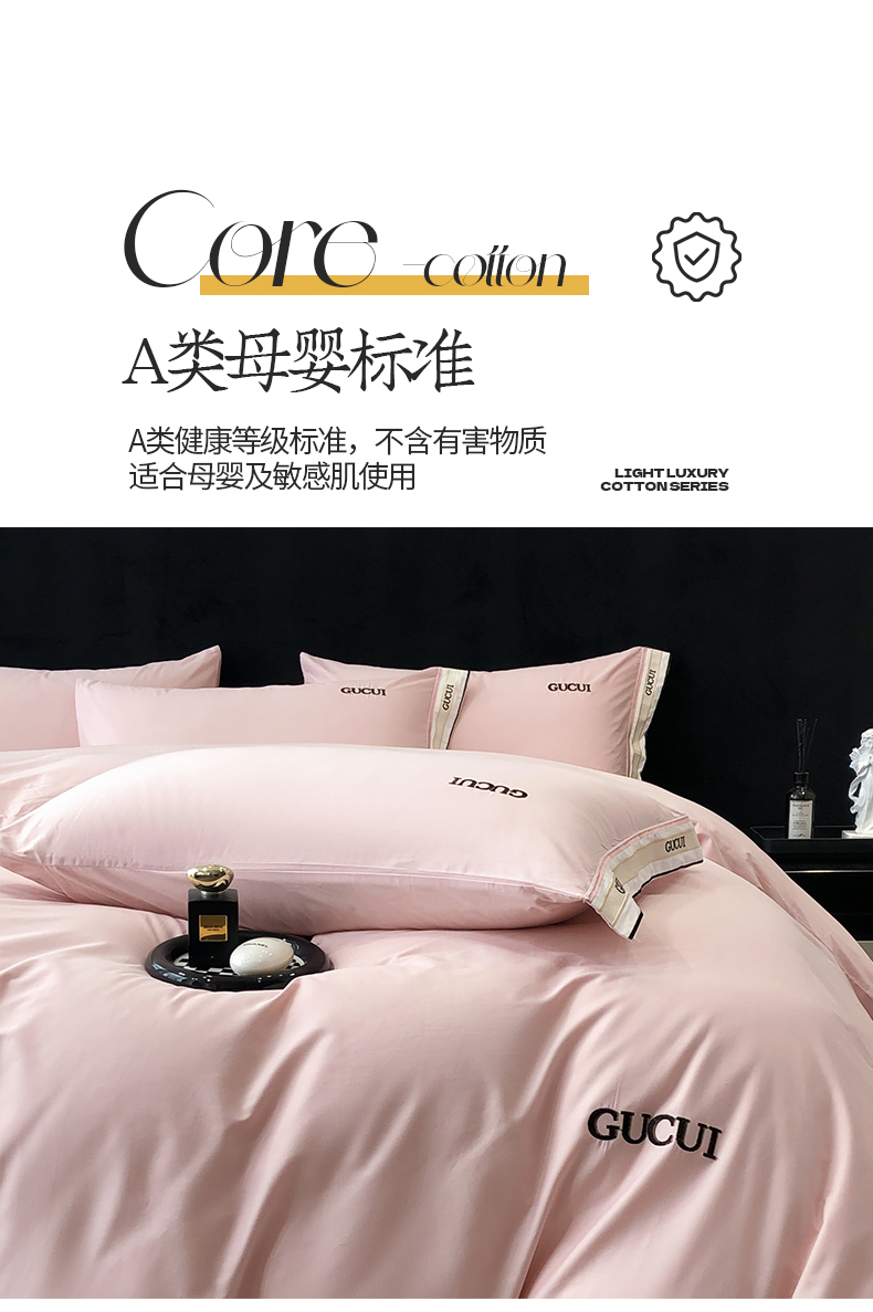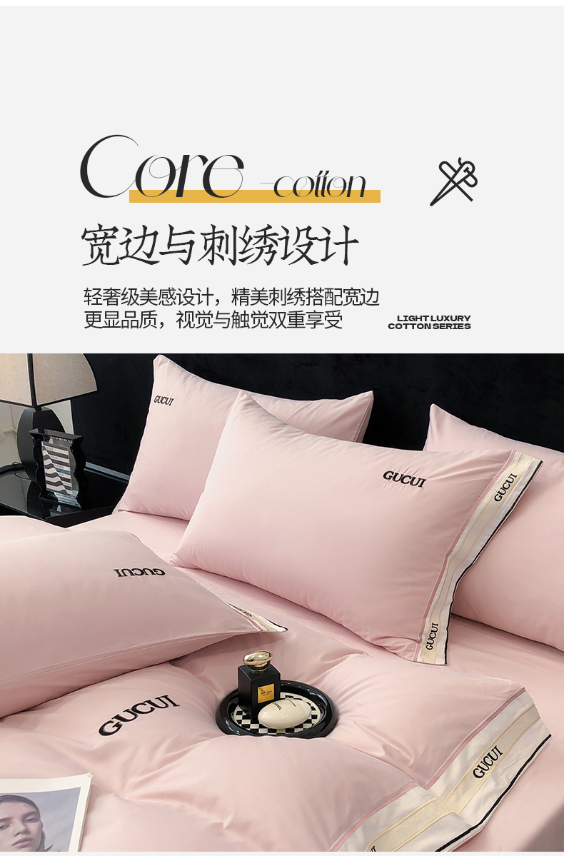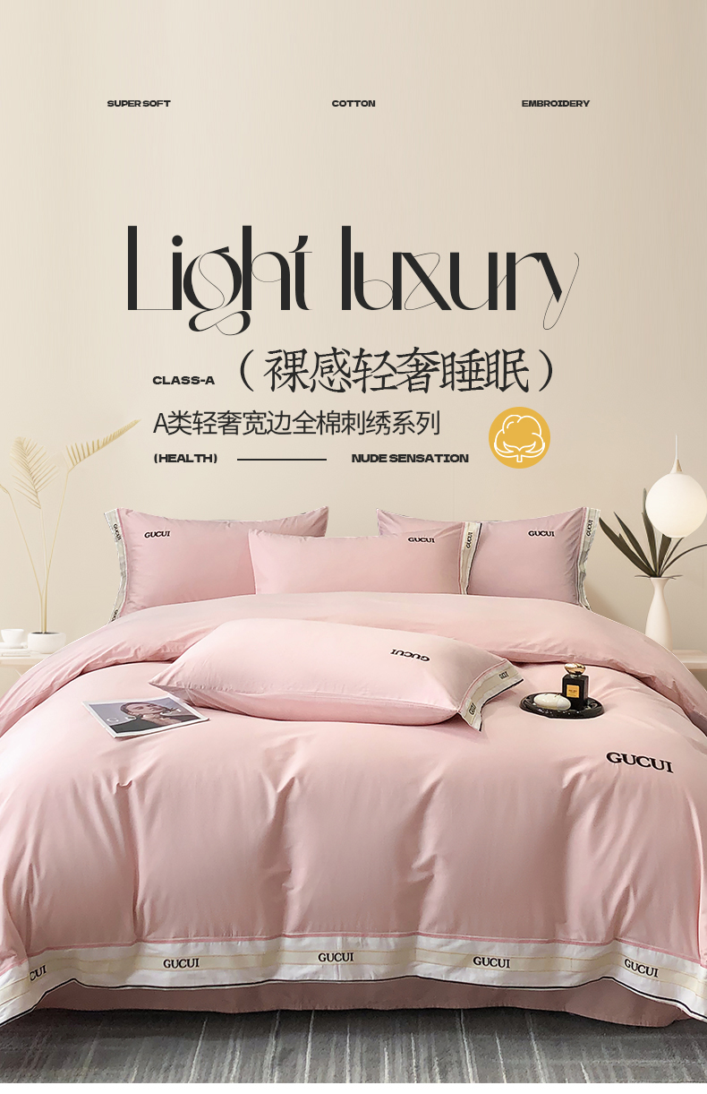 商品名称:懒猫家纺 G轻奢系列高精密40支13374全棉喷气绣花四件套 G轻奢-粉黛