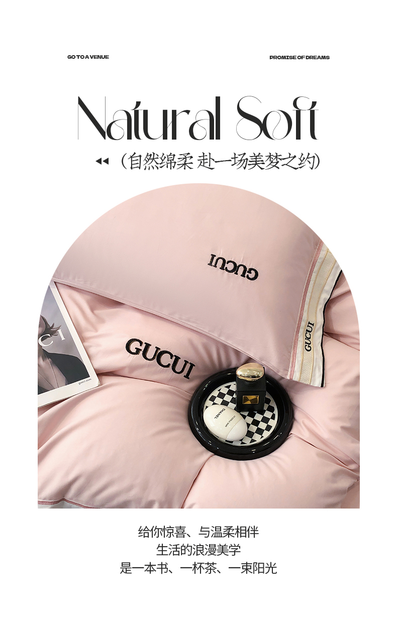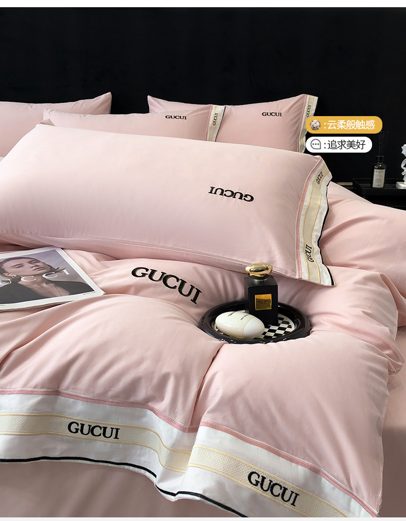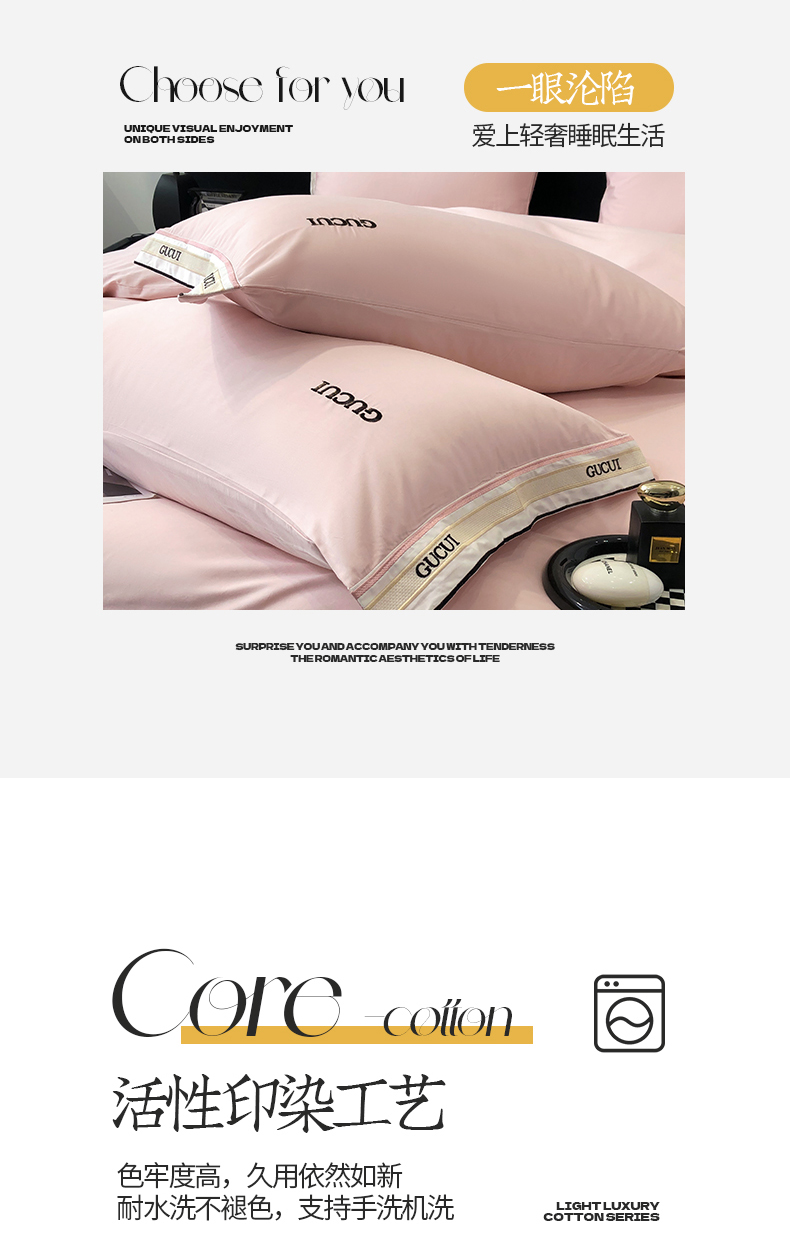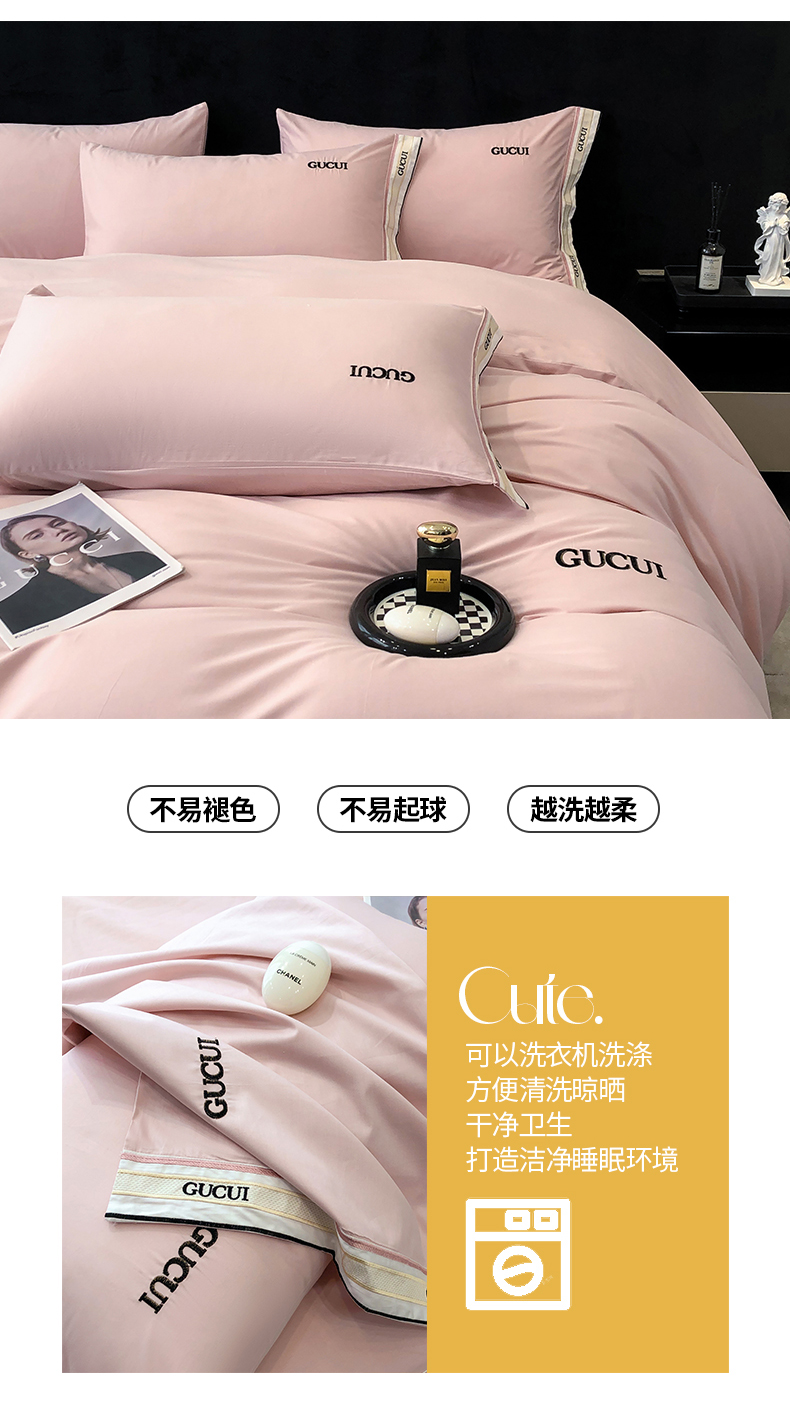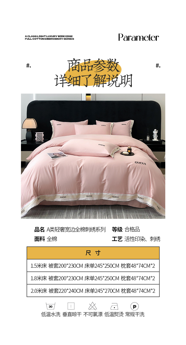 商品名称:懒猫家纺 G轻奢系列高精密40支13374全棉喷气绣花四件套 G轻奢-粉黛