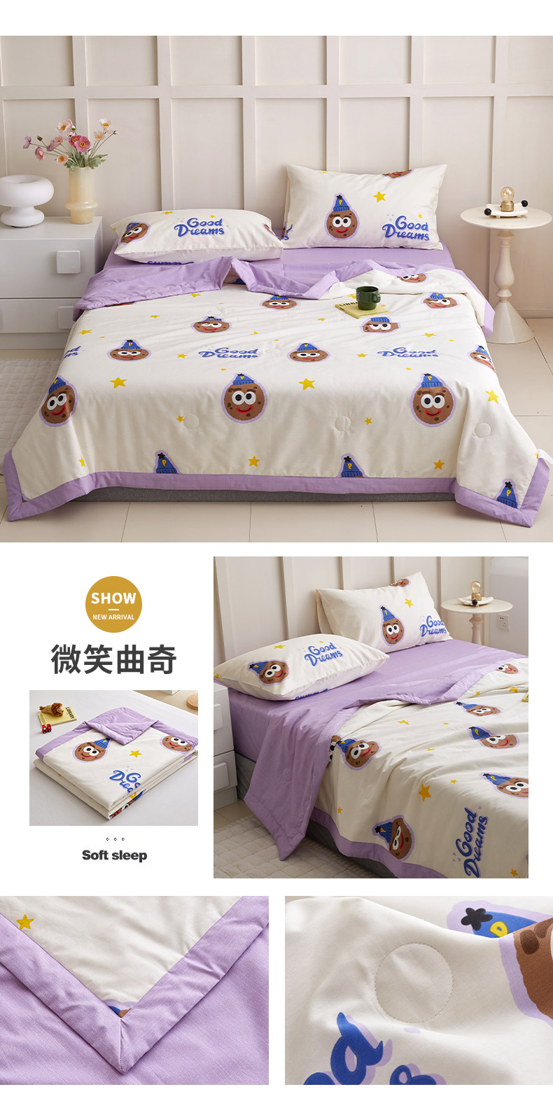 商品名称:怡家居 2024新款全棉印花手包边夏被四件套 微笑曲奇