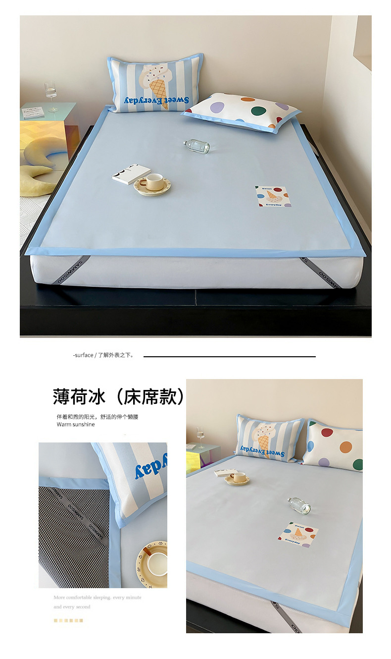 商品名称:三味舒屋2025新款900D高端数码印花养生冰丝凉席(新升级7A抗菌)床席款 薄荷冰
