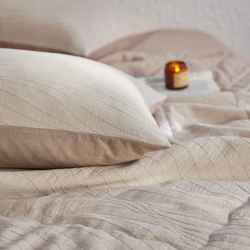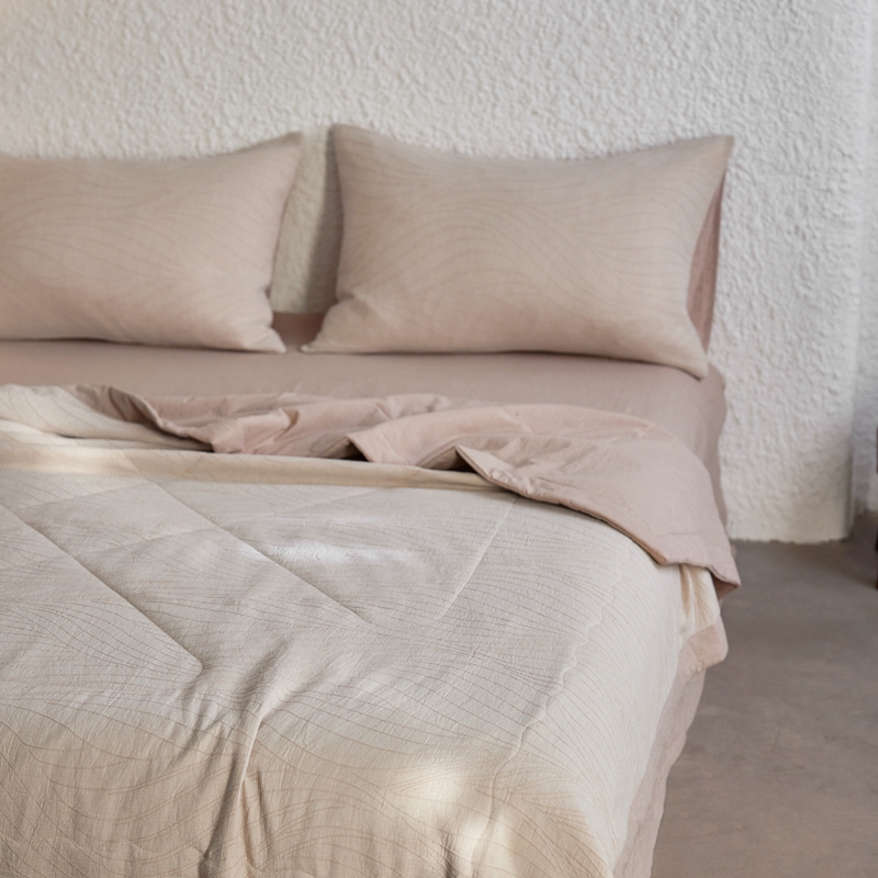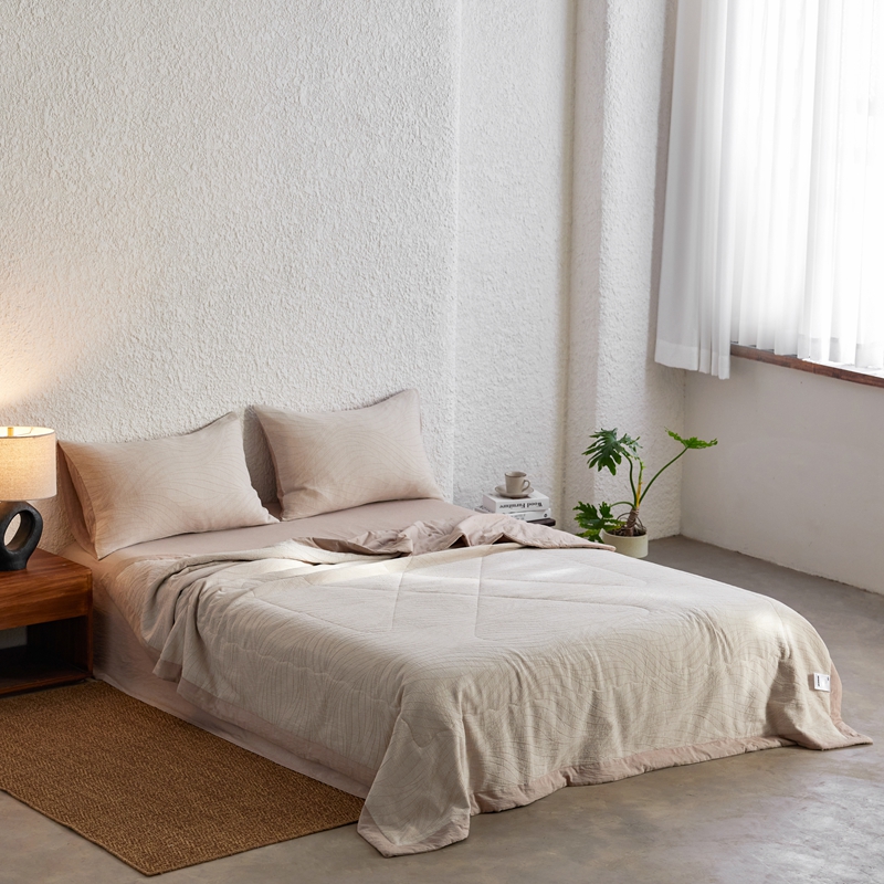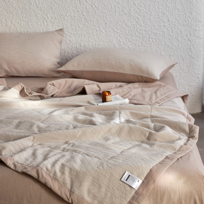 2024新款色织双层纱提花波浪三系列夏被及夏被四件套--乱纹波浪 乱纹-卡其