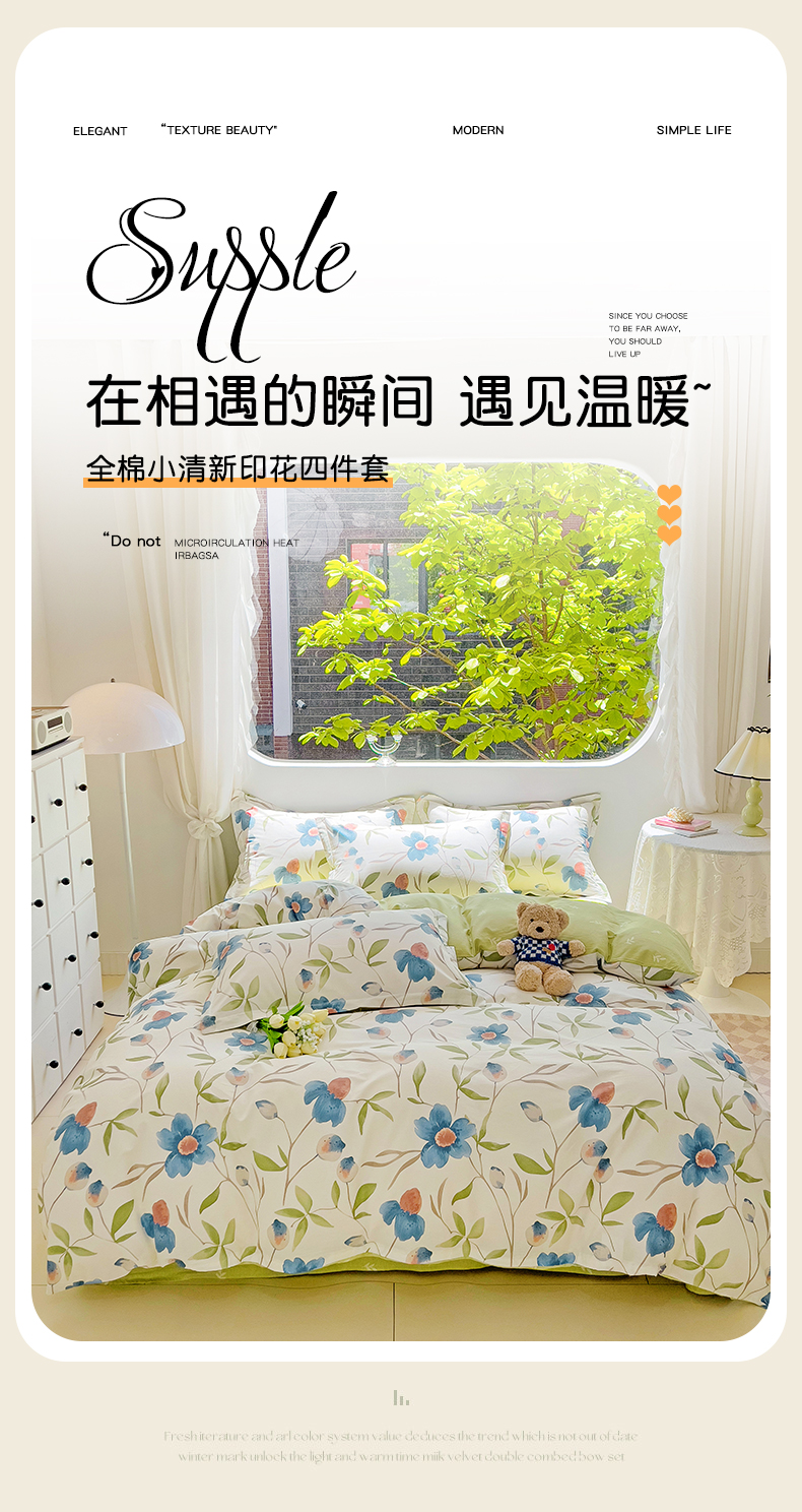暖芯优选 204新款直播爆款全棉-ins印花系列四件套纯棉三件套床单床笠 依梦