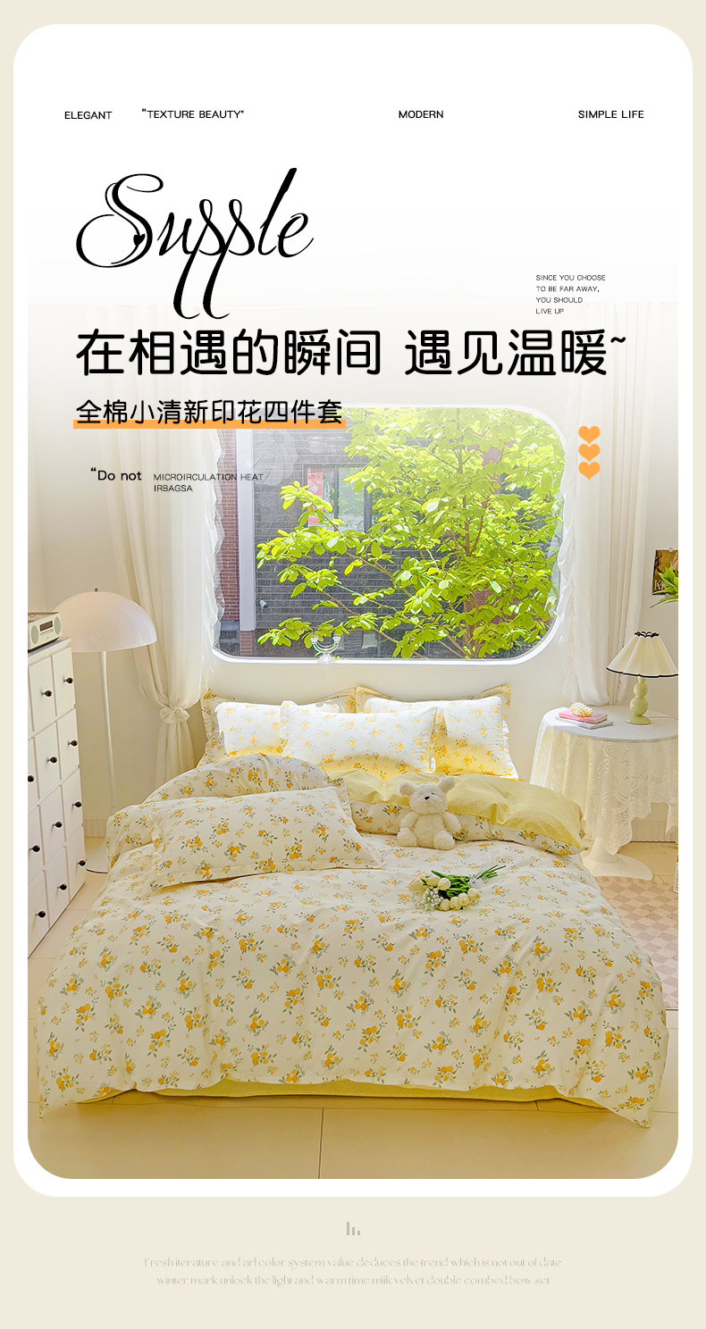 暖芯优选 204新款直播爆款全棉-ins印花系列四件套纯棉三件套床单床笠 花间沐